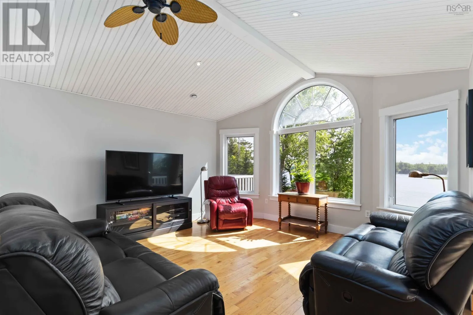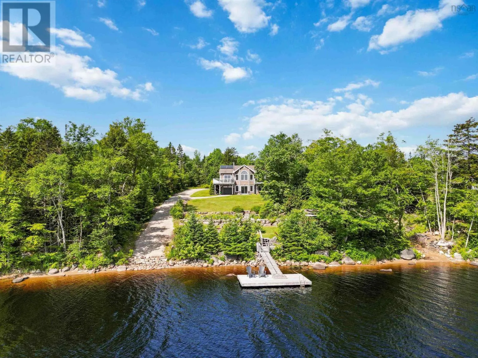 Mill Road turn right on Huckleberry Lane which turns into Oakridge Road. Your Dream Lakeside Escape on Wallaback Lake Awaits! Welcome to your very own slice of paradise, where every day feels like a vacation! This incredible year-round home offers 170 feet of private frontage on the stunning Wallaback Lake. Its the perfect sanctuary for both quiet relaxation and thrilling adventures, and even comes with a charming, wired lakeside bunkhouse for visiting friends and family! The adventure starts right at your doorstep. Wallaback Lake is a treasure, with fantastic fishing and countless coves and islands just waiting to be explored by boat or kayak. Ride your snowmobile, bike, or 4x4 straight from the garage onto hundreds of kilometers of groomed trails for year round fun. Inside the gorgeous 2-bedroom, 2-bath open-concept home, youll wake up to the sun rising over the sparkling water from nearly every room. The vaulted ceilings create a bright, airy atmosphere that pulls the beautiful scenery indoors. After a day of exploring, soothe your muscles in your very own indoor sauna or curl up by the cozy wood stove. Working from home is an absolute dream with high-speed Bell Fibre Op internet, and your year-round comfort is guaranteed with an amazingly efficient heating system that uses solar, heat pump, propane and electric. Your expansive, glass-paneled wrap-around deck is the perfect spot to soak it all in, from morning coffee with the ducks to those stunning evening skies. Wander down to your private shoreline (yes, those are red and green grape vines) to your large dock, where peace and quiet are a way of life. While it feels like a world away, in reality, youre only a 10-minute drive from the conveniences of New Ross, including groceries, Canada Post, banks, schools, and churches. The charming town of Chester and the South Shore is just 30 minutes away, and you can drive to Halifax in about an hour. Plus, several excellent golf courses are nearby. This isn't just a property; it's a lifestyle. Come find your oasis. (id:27476)