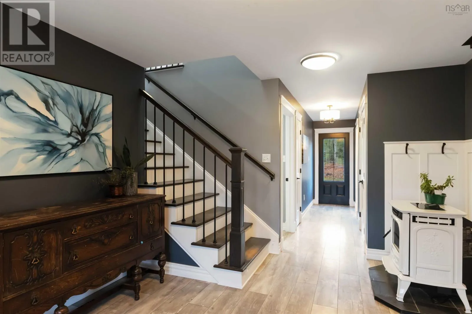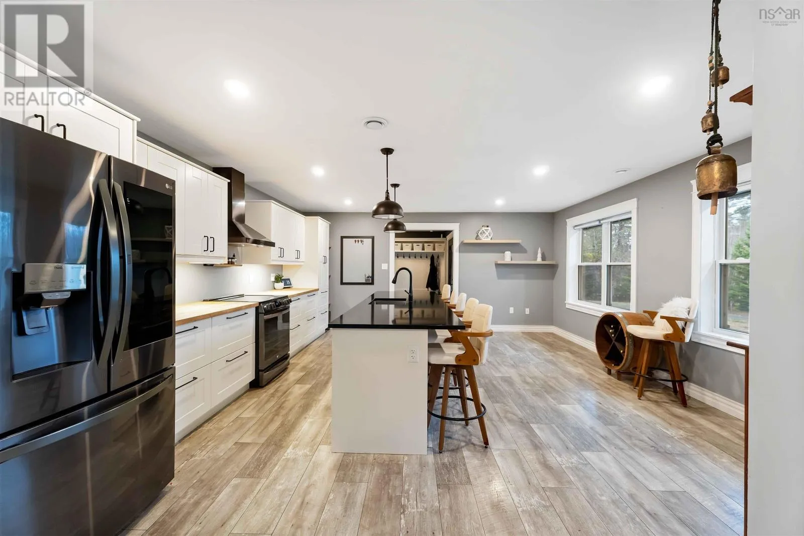 From Victoria Road in Aylesford, West on Hall Road to civic on RHS. See Sign. Welcome to 561 Hall Road, a property that truly stands apart. Set on 6.6 acres of privacy, trees, and trails, this beautifully designed 7-year-old family home offers the perfect balance of modern comfort and peaceful country living. Just a short drive to the amenities of Greenwood, Kingston, Berwick and easy highway access, this property offers a lifestyle that feels both elevated and down-to-earth in the best way. Step inside and discover a main floor that is fully accessible and thoughtfully laid out, featuring bright, open living spaces and effortless flow. The heart of the home is the gorgeous kitchen - with premium appliances, generous storage, lots of counter space and a large island with granite countertop. Its open flow into the dining and living rooms makes it the perfect hub for everyday living and memorable gatherings. The primary bedroom is privately positioned on this level as well and includes a spacious ensuite and ample closet space, creating a comfortable retreat with everything you need on one floor. Upstairs, this home continues to impress. With four generous bedrooms, a family/games room, a full bath and a dedicated laundry room, the second floor is perfectly designed for busy family life. Additionally, there is an attached double car garage with an unfinished loft above, offering exciting potential for future expansion. Heating and cooling are efficient and versatile with heat pumps and electric baseboards, while the pellet stove adds warmth and charm on cooler days. Outdoors, this property shines just as brightly as the home itself. Explore your own private trails, relax beneath the covered patio, or cultivate the garden spaces already in place. 561 Hall Road is a rare offeringmodern, efficient, spacious, beautifully maintained and set on a stunning piece of land. A warm, inviting family home that truly has it all. Book your private showing today! (id:27476)