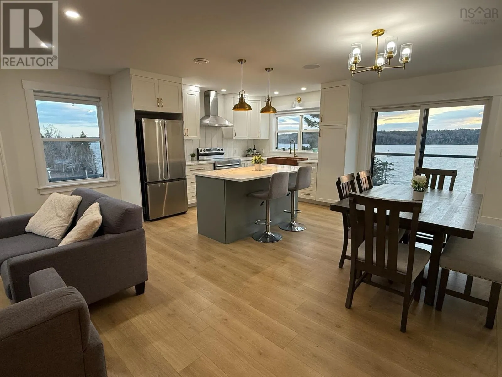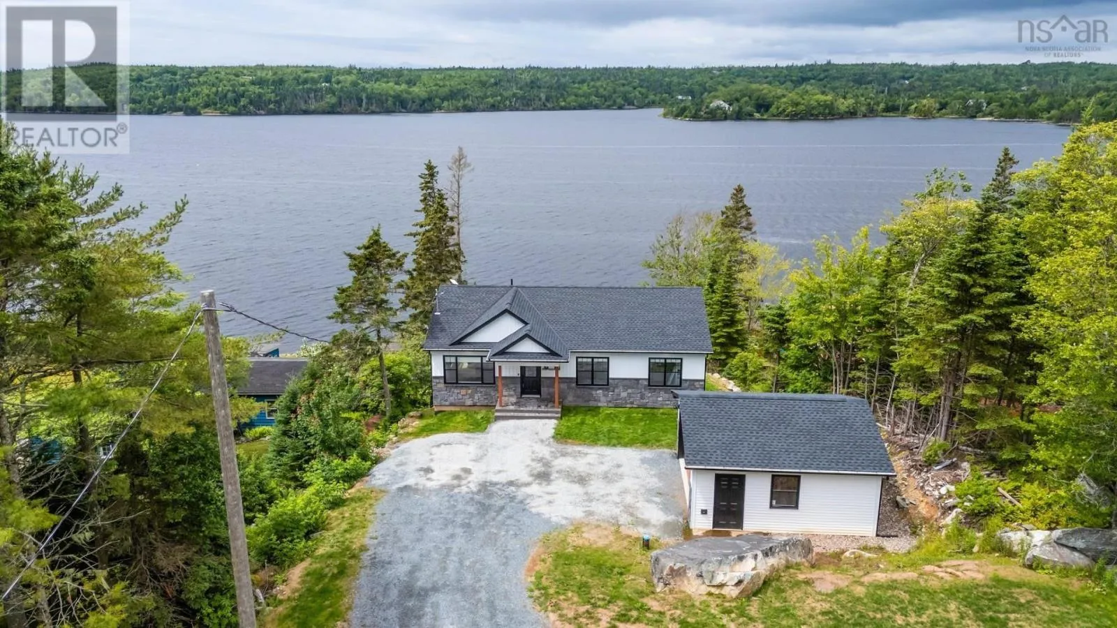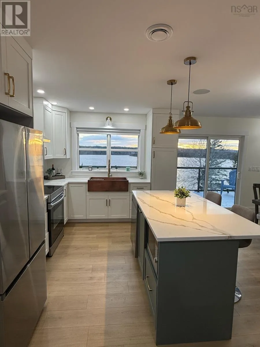 Hwy 107, right on Mineville Rd, left on Candy Mountain Rd Welcome to your waterfront dream home! This turn key one and half year-old bungalow offers the perfect blend of modern design, comfort, and lakefront tranquility on beautiful Lawrencetown lake (power boat friendly). Located in the quiet community of Mineville, this 4-bedroom, 3-bathroom beauty boasts over 2400 square feet of thoughtfully designed living space, ideal for both entertaining and everyday living. As you enter the home you are met with an open concept layout featuring a large living room that blends perfectly into the chefs kitchen. Huge centre island provides ample work space to prepare food and entertain. A generously sized primary bedroom with walk in closet and ensuite and two more secondary bedrooms complete this level. Enjoy panoramic views of the lake from almost every room on the upper level including the rear patio with surround sound speakers (surround sound throughout home as well). The lower level features 9' ceilings with full wet bar, 4th bedroom or office/gym, custom entertainment stand and a walkout access to the backyard. A tiered backyard with staircase allows easy access down to the waterfront to fully enjoy your lake front living. To top it all off there is fully wired garage for added storage space, along with room for a workshop or hobby area. For added comfort during stormy season you can have piece of mind with a backup generator panel. Don't let this lakefront beauty slip through your fingers. (id:27476)