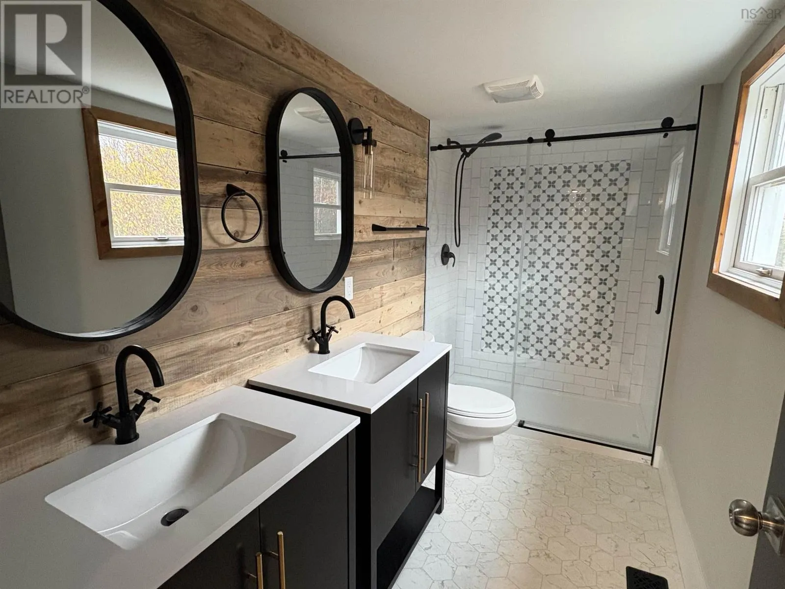 Take Morden Road to McNally for left short distance on right. See sign When old becomes new...1.5 storey professionally renovated home with 3 bedrooms including main floor primary bedroom with ensuite, open concept kitchen/dining Living room, 2 new full baths, all new flooring and fixtures, walkout basement available for future development, new roof shingles and more. You will love the rustic beams and attention to detail. This property would also make an excellent home with plenty of opportunity to add value with a lower level family room, additional bedroom or in-law suite. The home is located just off Morden Road and is nicely set back from the road on 2.2 acres. You can walk to the World Famous Bay of Fundy and just a 20 minutes drive to Kingston/Greenwood, Town of Berwick & Hwy.101 access. Act now for quick possession and Christmas in your new home! (id:27476)