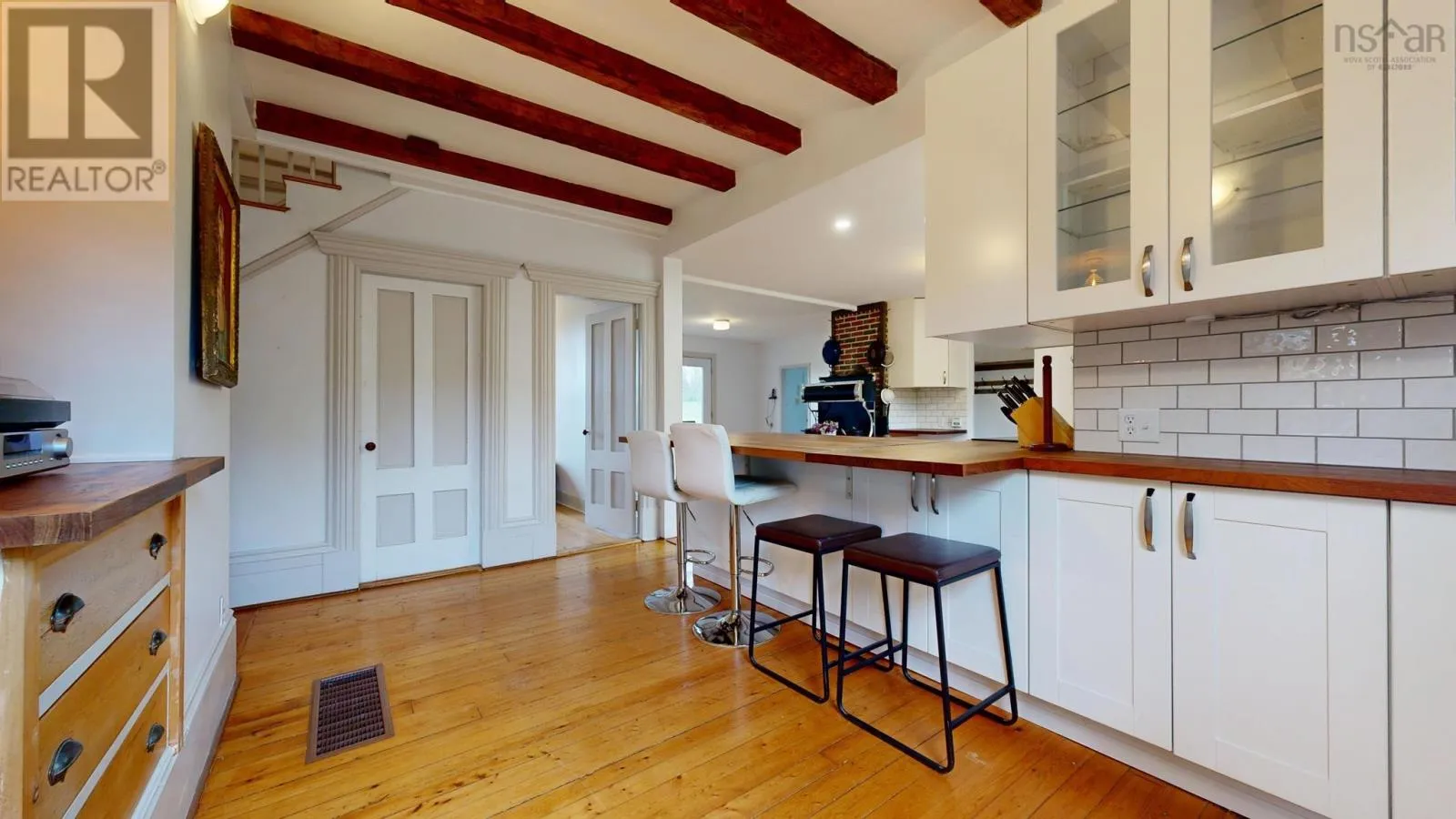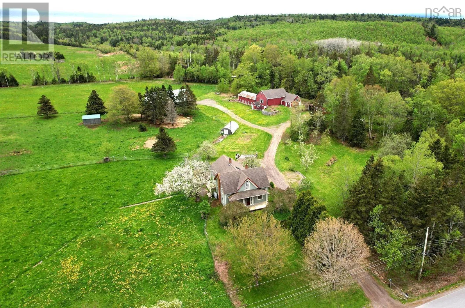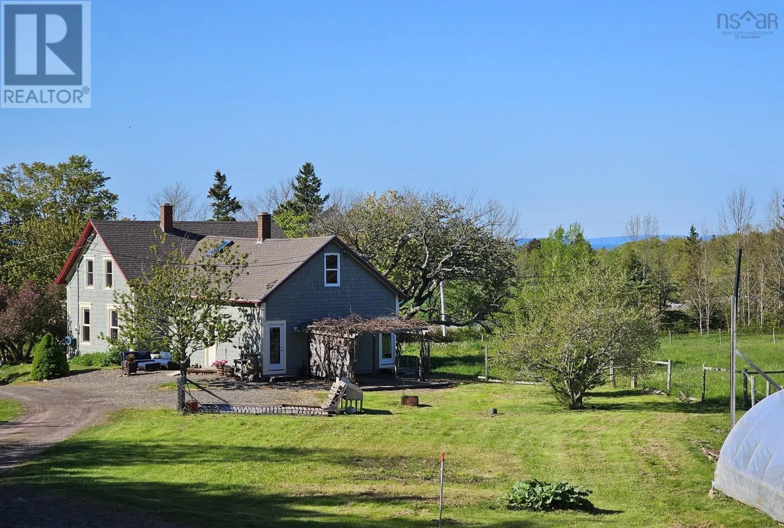 At Middleton take Highway 362 to Gates Mountain Road, continued to Shore Road. Turn left and property is just over 1 km on left. Stunning, Nova Scotia hobby farm on a sheltered acreage minutes from the heart of the Annapolis Valley. 31 pastoral acres offering fenced pasture/paddock, hay, fantastic out buildings, fruit trees, roughly 10 acres of forest with trails, plus a brook at the Western boundary. Private setting, set back from a country road. Set up for horses, small livestock, subsistence farming and much more! Extensive upgrades in recent years have made the property well suited for home based businesses or simply enjoying animals and farming life. The quality and character of this 1869 home shines amid the recent updates. 3 bedrooms, 2 full baths, with the den on the main floor currently used as a 4th bedroom. Open-plan contemporary kitchen/dining room features a generous peninsula, coffee bar, pantry, and charming Elmira wood cook stove. Mudroom and wood shed at the side entry and back utility room with door (& dog door) going directly to the fenced paddock. Two other principal rooms plus full bathroom with laundry on main floor. Upstairs is a large primary bedroom with big closets and views of the Bay, and a luxurious full bath with spa steam shower. Two other bedrooms and an office with Gothic window complete this level. The magnificent barn features a huge workshop, animal stalls, storage attic, upper floor loft designed for entertaining, events or retail (antiques shop or gallery?) Projection TV negotiable. A 2-level roughed in guest quarters is on the North end. The Bay Of Fundy can be seen from the high points of the property. Second smaller barn converted to a 2 story music or art studio (or guest quarters) with bathroom, wood stove, sound proofing and in floor heat. Brite-Span 60'X40' run-in barn with electricity and water is perfect for horses, tack, equipment & vehicle storage. High enough for second level. Poly tunnel greenhouse and water catchment system also on the property. Please request extensive list of features and improvements. (id:27476)