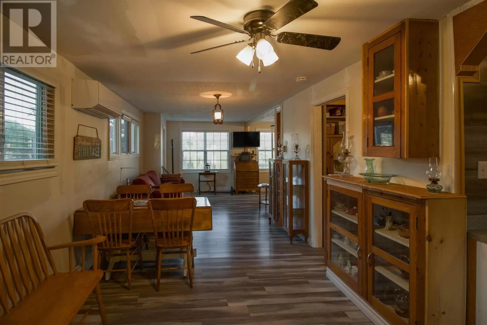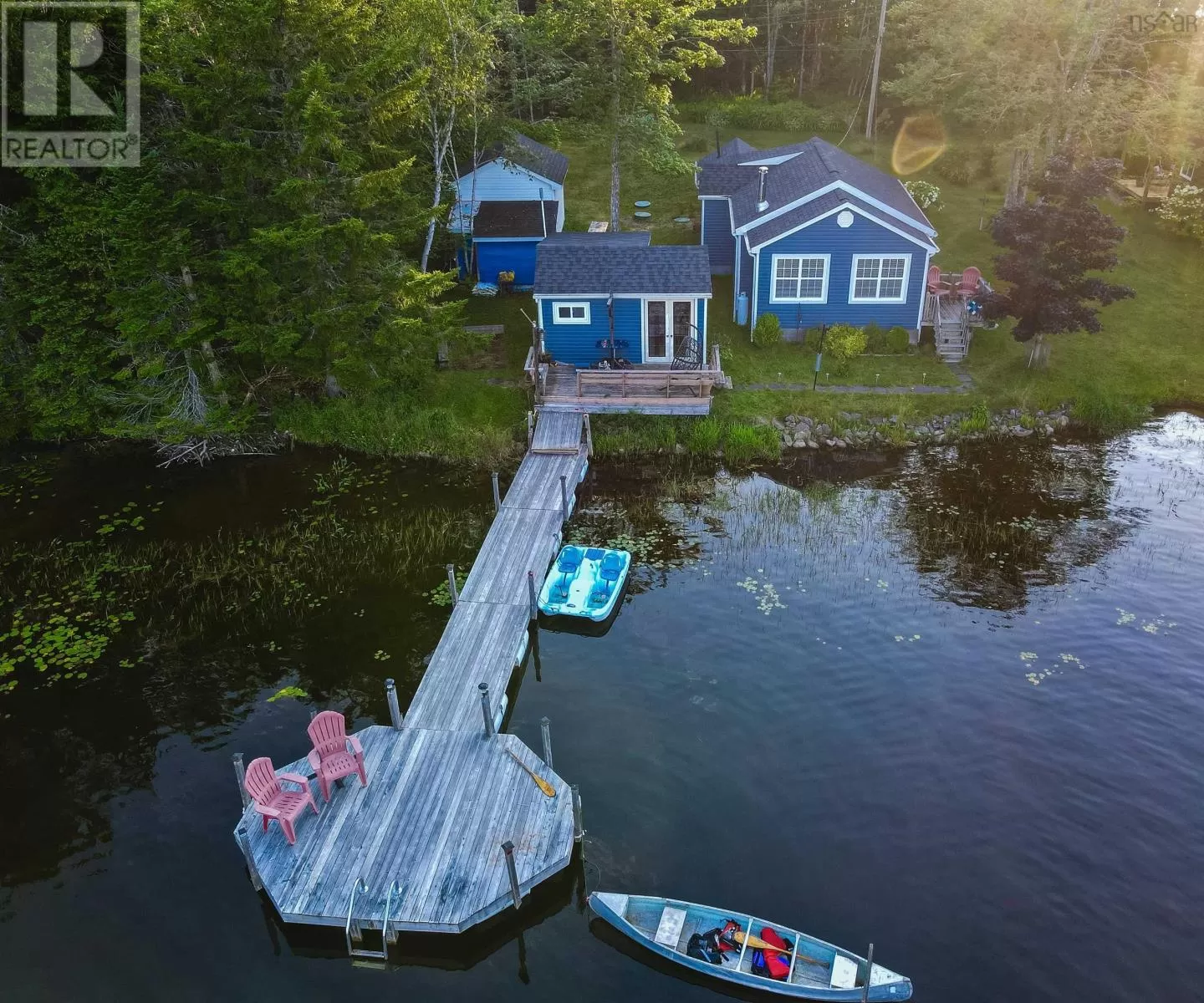 Highway 1 to Etter Road to East Uniacke Road to Cove road park on Cove road and boat to property Nestled on the enchanting Lewis Lake, this charming cottage offers an idyllic retreat accessible only by boat, ensuring privacy and tranquility. Designed with an open-concept layout, the cottage features one cozy bedroom, a full bath with laundry facilities, and a seamless flow between the kitchen, dining, and living areas. The living room is enhanced by a convenient Murphy bed, adding versatility to the space, while the rustic appeal of beautiful barn doors adds a touch of charm. Outside, the property boasts a stunning dock perfect for enjoying the serene waters of Lewis Lake, and a quaint 250-square-foot bunkhouse equipped with a compost toilet, ideal for guests or additional storage. The cottage is comfortably heated with electric heat and a heat pump, ensuring a cozy atmosphere year-round. Unique among its neighbors, this retreat is one of the few on the peninsula to feature a septic system, while it also draws water directly from the lake, offering both convenience and sustainability. Additional amenities include a spacious 12x16 shed for all your storage needs, complemented by an 8x9 wood shed. The cottage is sold with included appliances, and other remaining items are negotiable, making it easy for you to move in and start enjoying your lakeside haven immediately. This rare find on sought-after Lewis Lake provides the perfect blend of comfort, charm, and exclusivity for those seeking a peaceful escape. (id:27476)