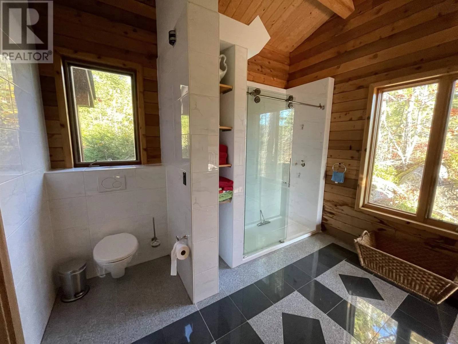 Boat required. This secluded Island getaway, with its private 1400 sq ft red ceder log home, combines green energy with all the comforts of home. The home is powered by a 10 KW Solar unit and totally self sufficient. Replace the bustling sounds of the city with the calls of the loons, the blinding streetlights with the flickering glow of a campfire. Reconnect with nature. Firebrand Island is a 28 acre island situated on Paces Lake, a glacial Lake located near Musquodoboit Harbour. The cedar log home is located on the south side of the island and nestled in amongst mature hemlock groves, incredible granite boulders, and thick carpets of moss. The home features two separate bedrooms for 4 adults and a bonus loft space for kids. Both bedrooms are connected by a large shared modern bathroom, and there is a separate powder room located at the entrance. The open concept living space, with its central wood stove and large windows , overlooks the pristine lake and stunning cliff face across the water. Decks located on the South and South-West side of the log Home are ideal for sunbathing, lounging or entertaining. The south facing deck is partly sheltered allowing you to BBQ or sit outside and relax with a glass of wine even in the case of inclement weather. An outdoor campfire pit is located close to the house and is a great place for a memorable evening of campfire sing-along, ghost stories, roasted marshmallows, or star gazing. Opportunities like this don't come around often. Contact a REALTOR® for more information to schedule a viewing. (id:27476)