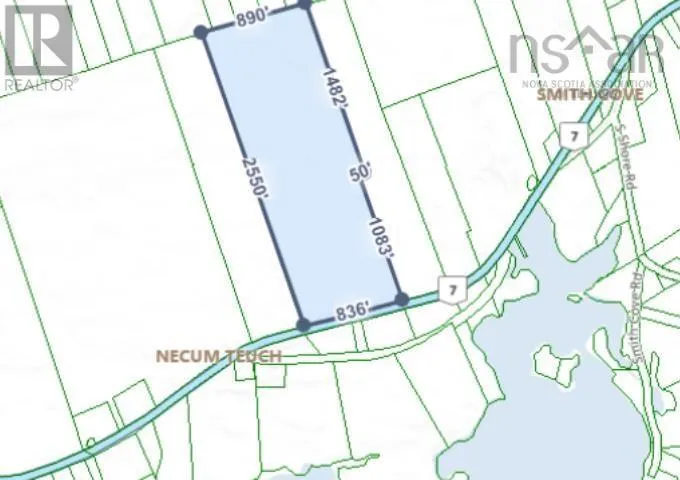 HWY 7 Discover 50 acres of natural beauty in the quiet coastal community of Necum Teuch on Nova Scotias Eastern Shore. This large parcel offers peace, privacy, and potential whether youre looking for a recreational retreat, a woodlot, or a future rural homestead.Zoned RE (Rural Resource), the property allows a variety of uses such as residential, agricultural, forestry, or recreation-based development. The landscape features a mix of softwood and hardwood forest, gently rolling terrain, and plenty of space to explore or build off-grid.Adding even more appeal, this offering includes half of an island with 637 feet of waterfrontage down the road, providing the perfect spot for seaside adventures, kayaking, or simply enjoying the serenity of the shore. Located approximately 45 minutes from Sheet Harbour and just over two hours from Halifax, this area is known for its rugged coastline, beaches, and outdoor lifestyle. Enjoy nearby fishing, boating, and abundant wildlife all while owning a substantial piece of Nova Scotia land at an affordable price point.If youve been searching for acreage to call your own whether for today or the future this property delivers both opportunity and escape. (id:27476)
