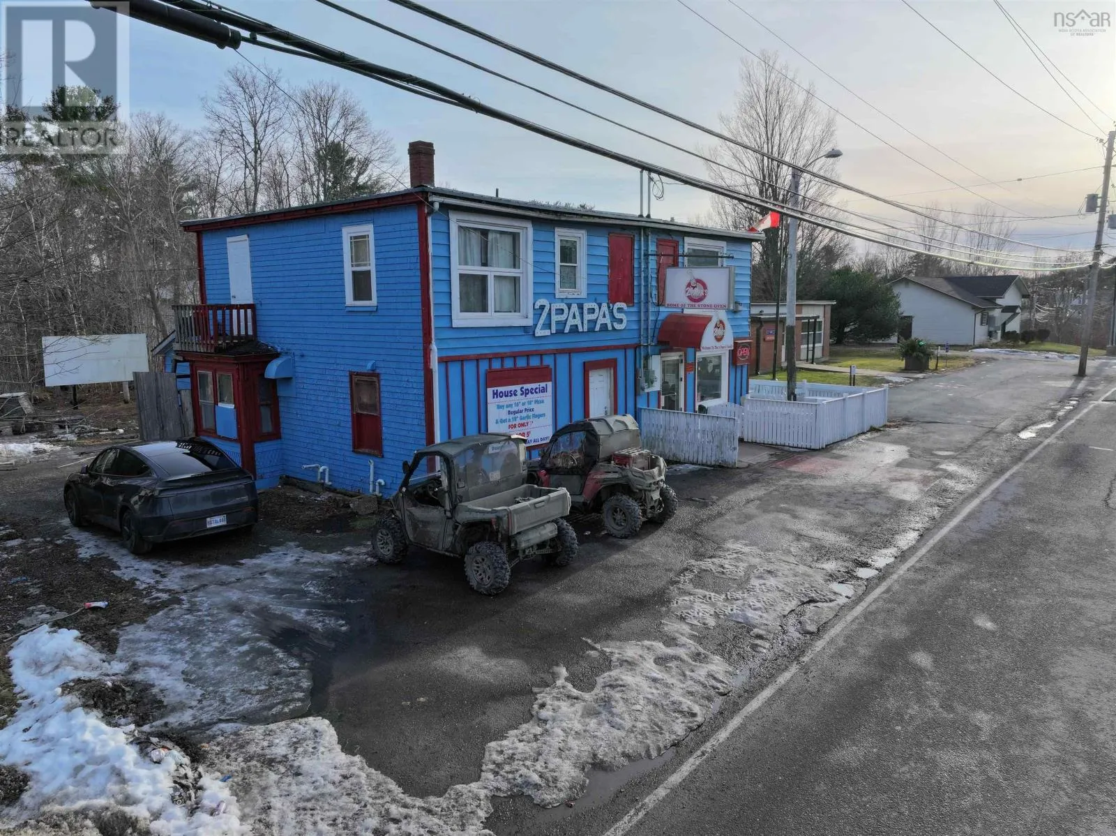 Highway 10 to New Germany around square to civic. Sign is posted. Fully leased two unit commercial investment property in the heart of New Germany with strong cash flow and long term stability. The main floor is occupied by 2 Papas Pizza, leasing the space for $1,700 per month plus utilities with a secure lease in place until July 2029. The upper level consists of a renovated three bedroom, one bath apartment generating $1,800 per month plus utilities on a fixed term lease expiring August, 2026. The unit features an open concept kitchen and living area, large vinyl windows providing excellent natural light, and a main floor mudroom with laundry. Recent upgrades include new drywall, flooring, and a newer heat pump, with an additional energy efficient ducted heat pump available and ready to be connected. Major building improvements include new electrical panels and wiring, a metal roof, electric on demand water heater, hot water tank, and water softener systems. Located just 20 minutes from Bridgewater, this highly profitable property offers reliable income with minimal deferred maintenance. (id:27476)