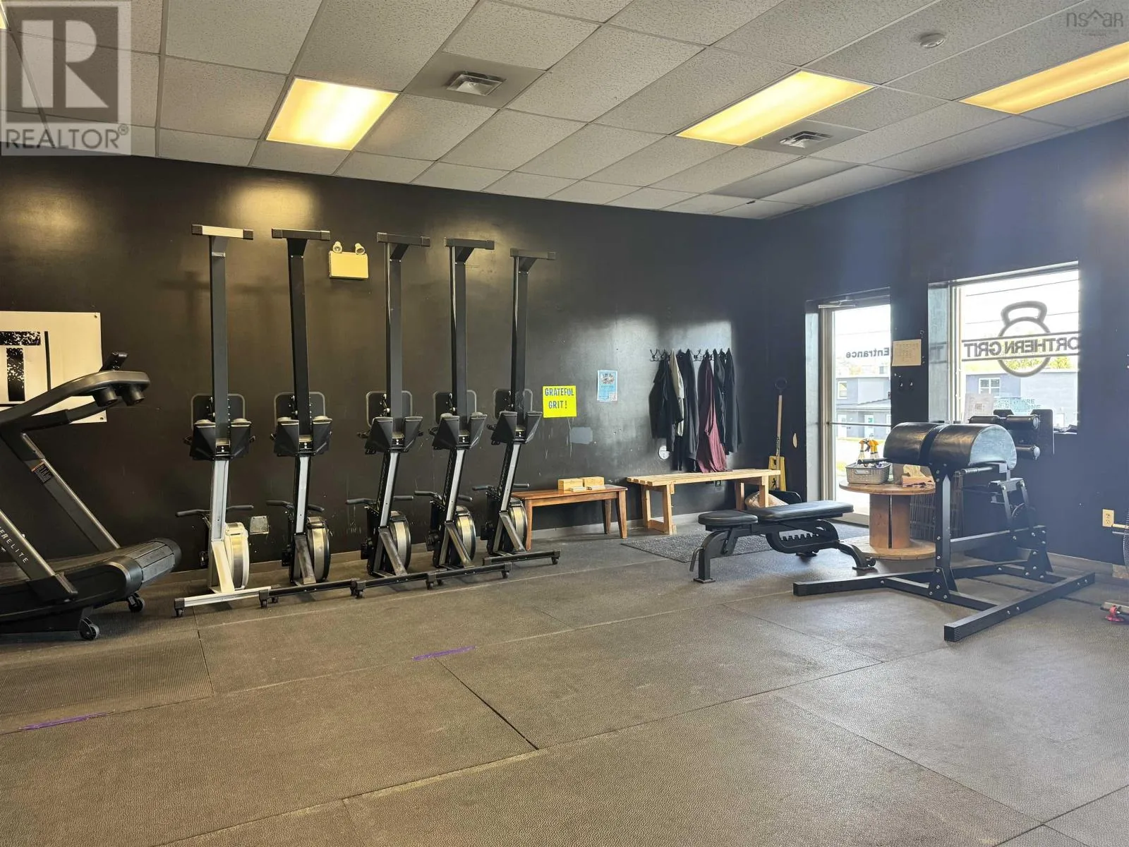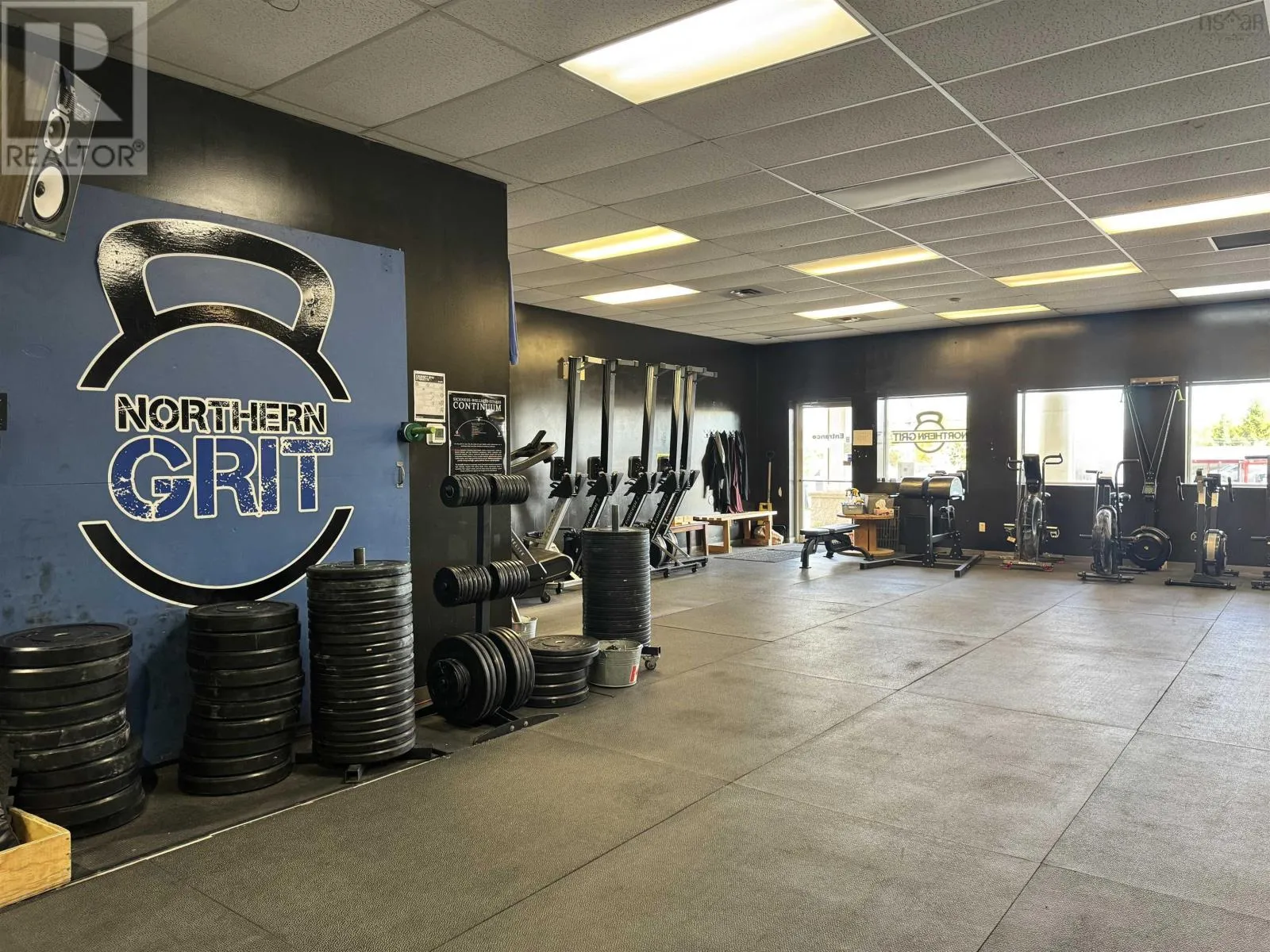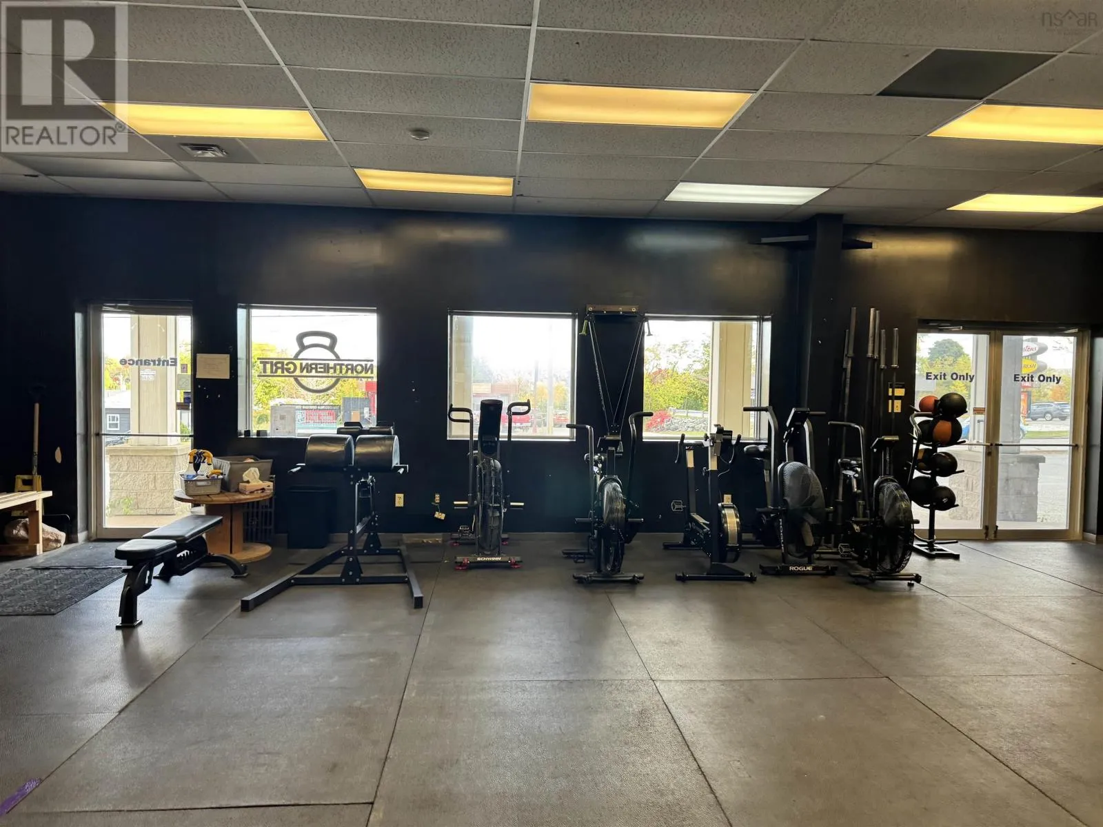 From Trans Canada Hwy take exit 23 onto Westville Road towards New Glasgow Positioned along one of New Glasgows highest-traffic commercial corridors, this approximately 6,860 sq. ft. building (70' x 98') sits on just over 1.5 acres and offers exceptional flexibility for investors or owner-operators. Constructed primarily of concrete block with some wood framing and steel roof trusses under a metal roof, the property is zoned C3 Commercial Highway, allowing for a wide variety of uses. There are three separate power meters and a paved parking lot at the front, with the pavement continuing around the side to provide easy drive-through access to the back, where there is additional paved and gravel space for equipment, storage, or fleet parking. The largest unit, currently occupied by Northern Grit CrossFit, features an open layout with high ceilings, two 12 x 10 overhead doors on the side and back, a rear man door, and two main entrances on the front which could allow for division into two spaces if desired. The second unit offers 1,986 square feet with an entry and reception area, two full bathrooms, a utility room with laundry hookups, a half-wall division, and a large open rear space with approximately 14-foot ceilings and double steel doors leading to the back lot. The third unit, currently home to a physiotherapy clinic, includes a reception area, bathroom, about five offices or treatment rooms, an open therapy or workout space at the back, and a rear exit to the parking area. With excellent street visibility, high ceilings, and drive-in access, this property also offers exceptional flexibility with four front entrances and multiple entry points along the back & sides. The layout makes it easy to reconfigure or divide both the front and back portions into additional units if desired. Combined with a large lot offering ample parking and outdoor storage, this building is well-suited for an owner looking to establish or expand a business, or for investors seeking a highly adaptable, income-producing asset in a proven commercial (id:27476)