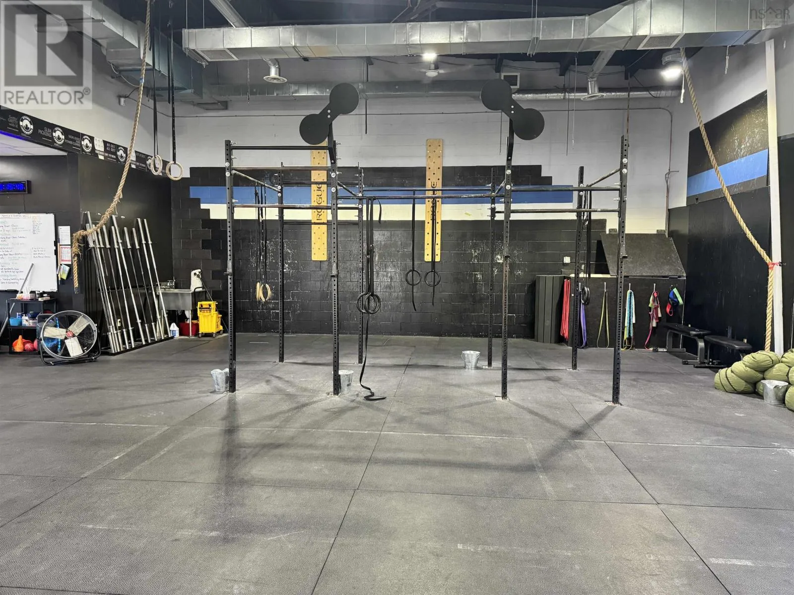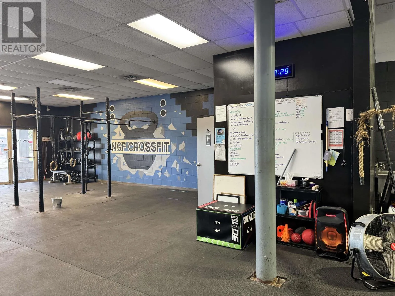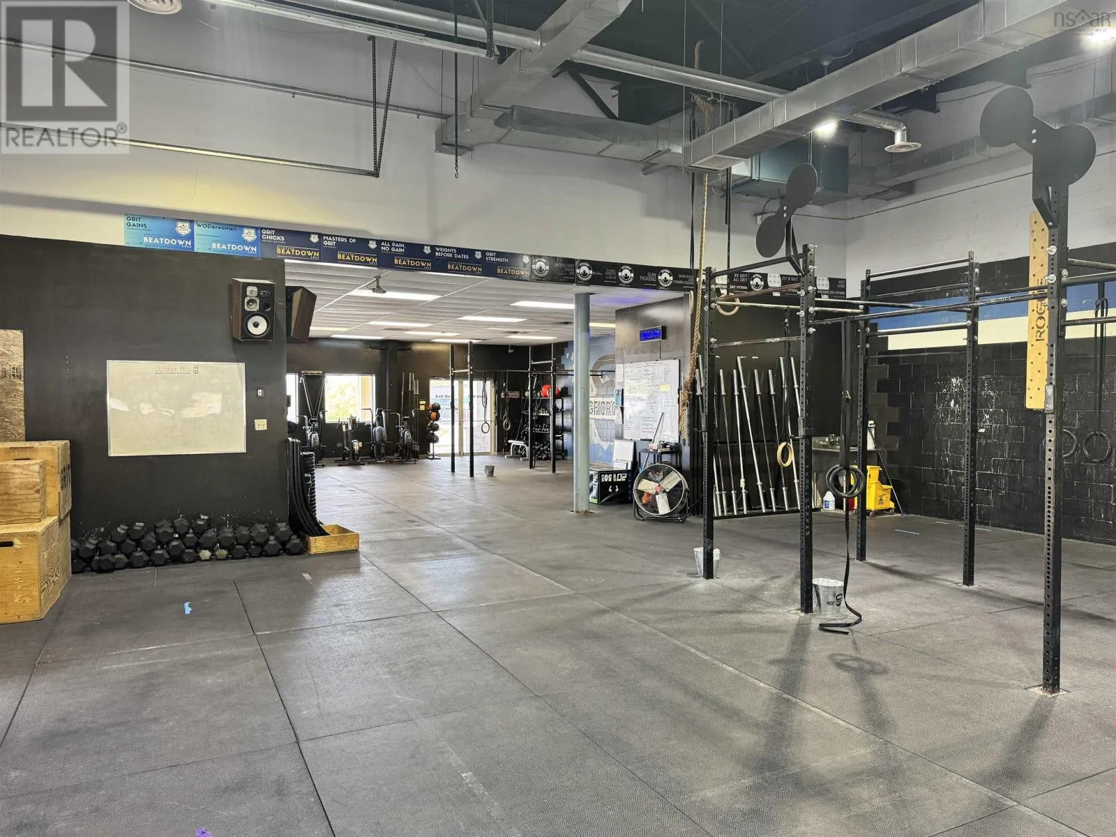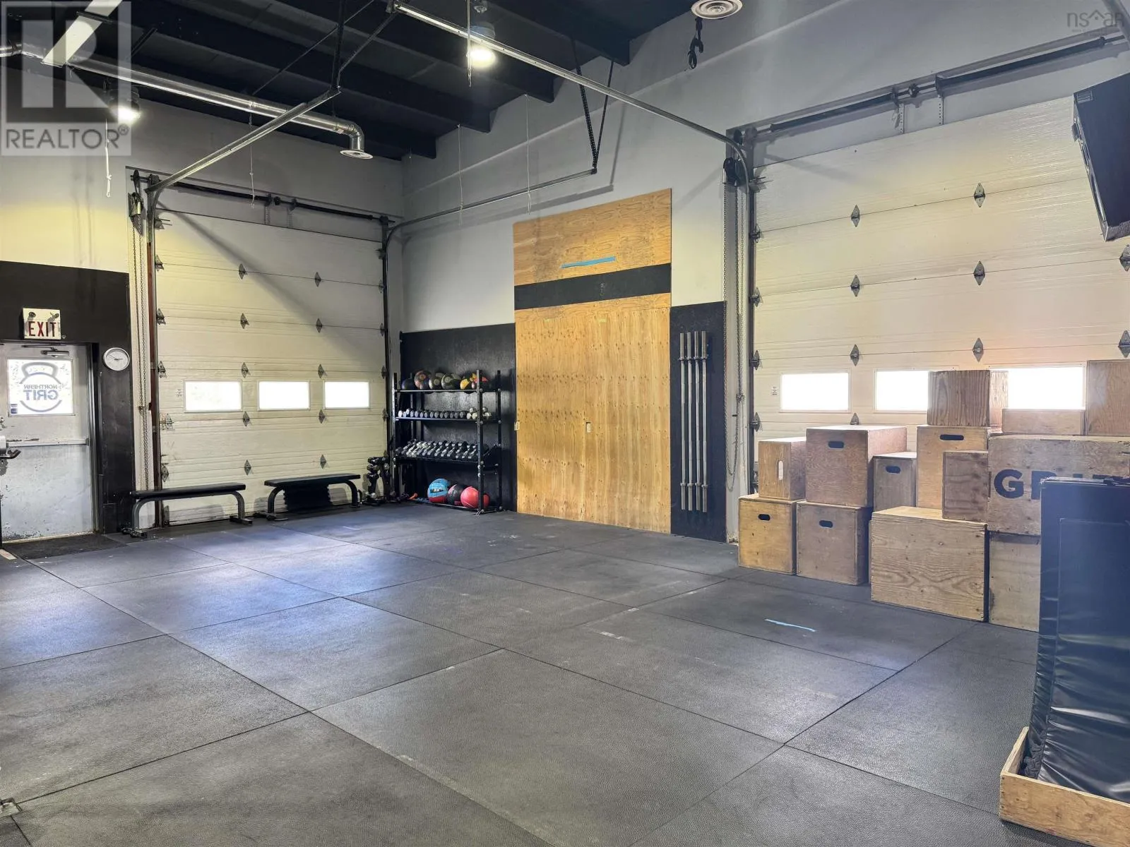 From Trans Canada Hwy take exit 23 onto Westville Road towards New Glasgow Positioned along one of New Glasgows highest-traffic commercial corridors, this approximately 6,860 sq. ft. building (70' x 98') sits on just over 1.5 acres and offers exceptional flexibility for investors or owner-operators. Constructed primarily of concrete block with some wood framing and steel roof trusses under a metal roof, the property is zoned C3 Commercial Highway, allowing for a wide variety of uses. There are three separate power meters and a paved parking lot at the front, with the pavement continuing around the side to provide easy drive-through access to the back, where there is additional paved and gravel space for equipment, storage, or fleet parking. The largest unit, currently occupied by Northern Grit CrossFit, features an open layout with high ceilings, two 12 x 10 overhead doors on the side and back, a rear man door, and two main entrances on the front which could allow for division into two spaces if desired. The second unit offers 1,986 square feet with an entry and reception area, two full bathrooms, a utility room with laundry hookups, a half-wall division, and a large open rear space with approximately 14-foot ceilings and double steel doors leading to the back lot. The third unit, currently home to a physiotherapy clinic, includes a reception area, bathroom, about five offices or treatment rooms, an open therapy or workout space at the back, and a rear exit to the parking area. With excellent street visibility, high ceilings, and drive-in access, this property also offers exceptional flexibility with four front entrances and multiple entry points along the back & sides. The layout makes it easy to reconfigure or divide both the front and back portions into additional units if desired. Combined with a large lot offering ample parking and outdoor storage, this building is well-suited for an owner looking to establish or expand a business, or for investors seeking a highly adaptable, income-producing asset in a proven commercial (id:27476)