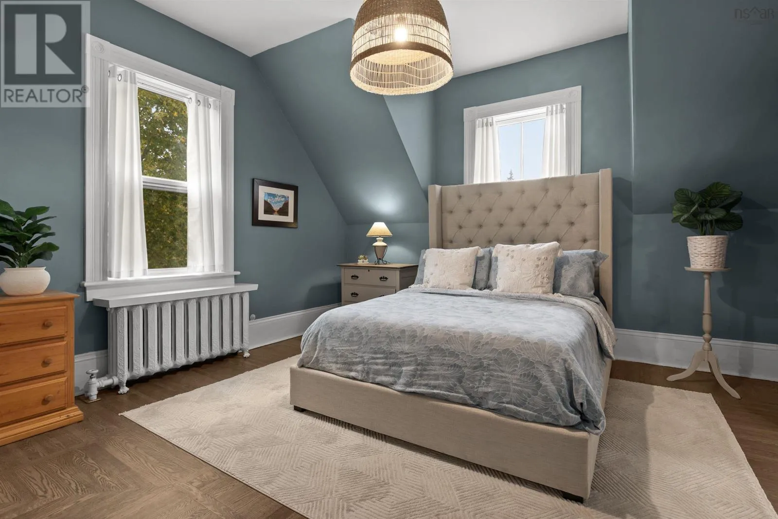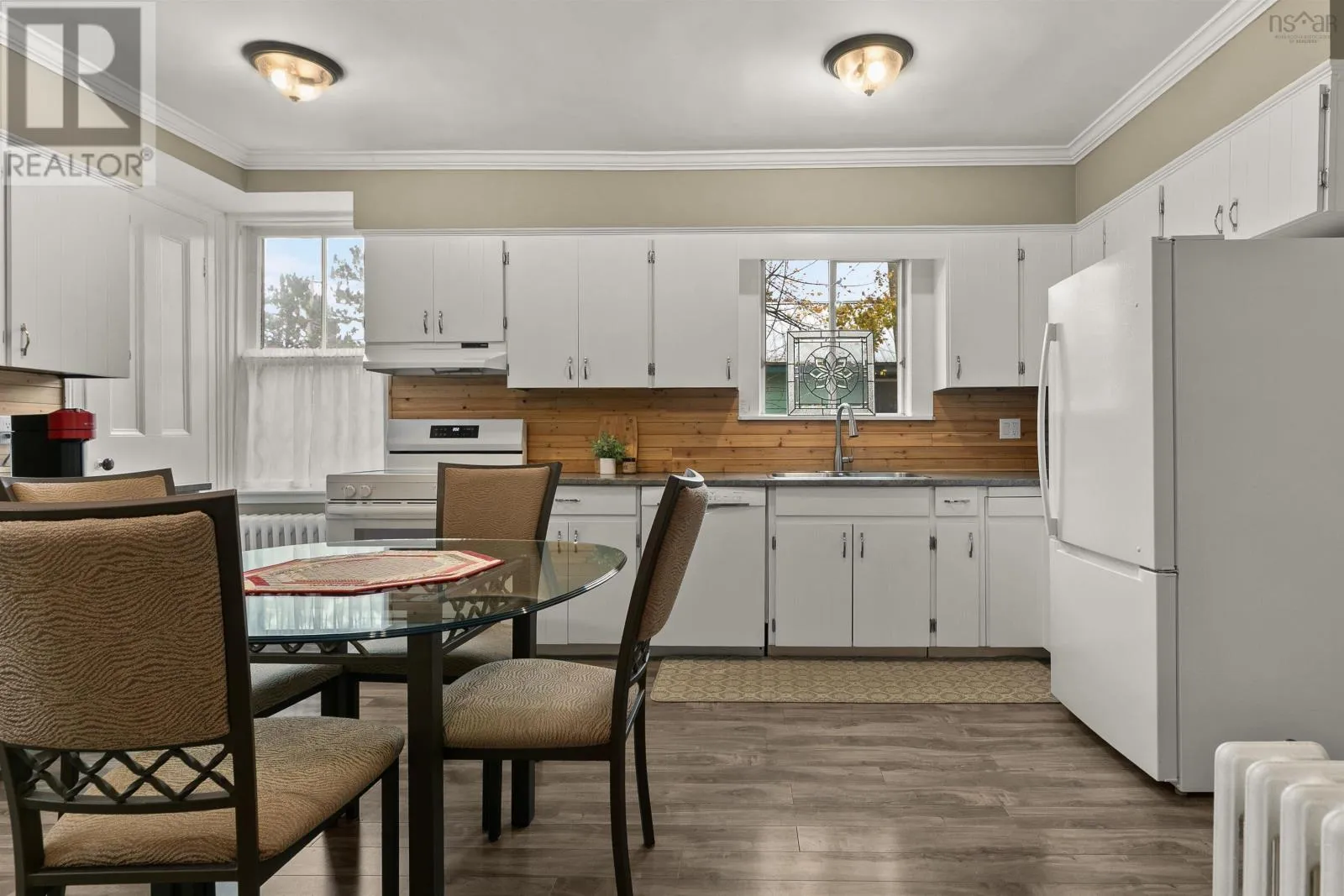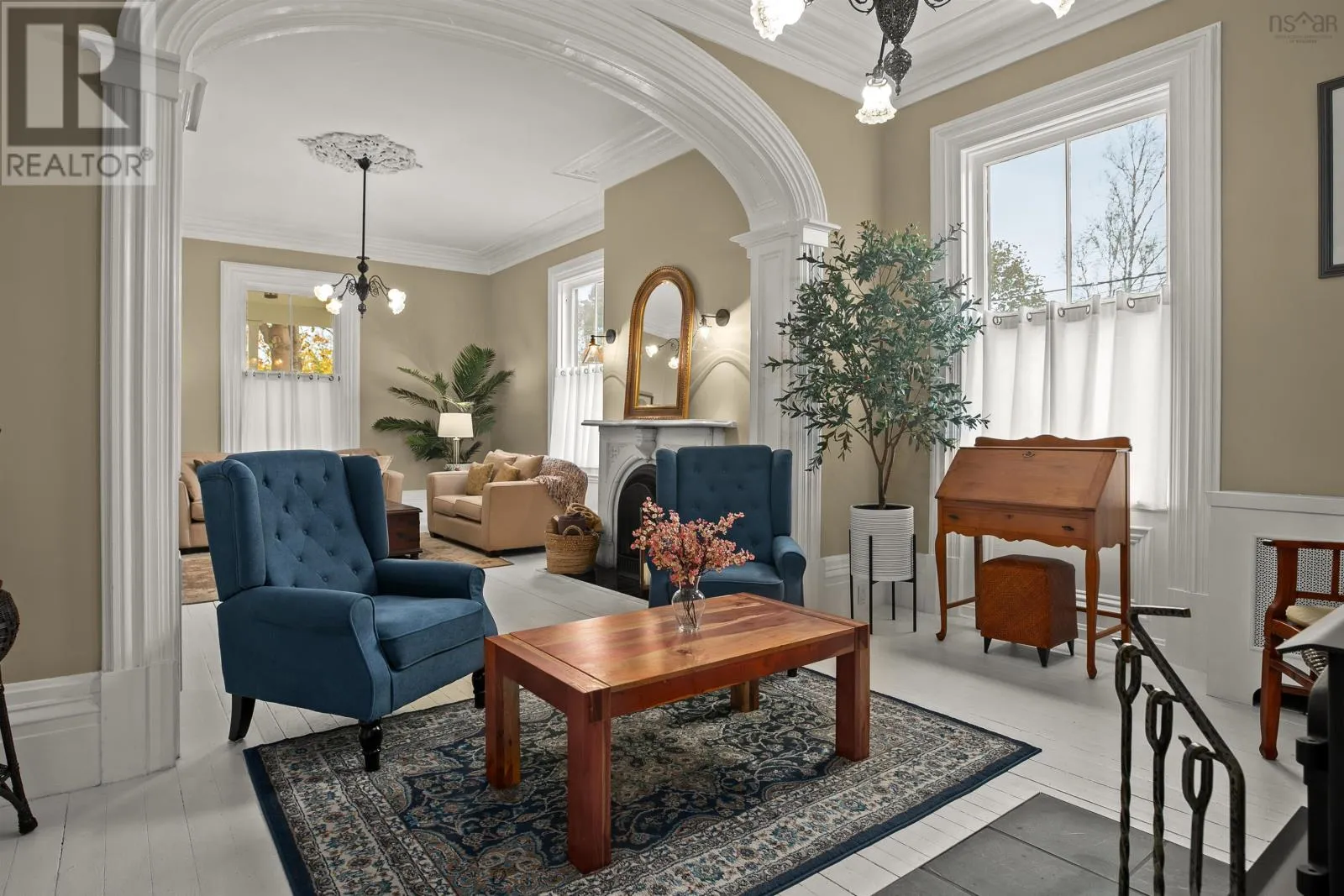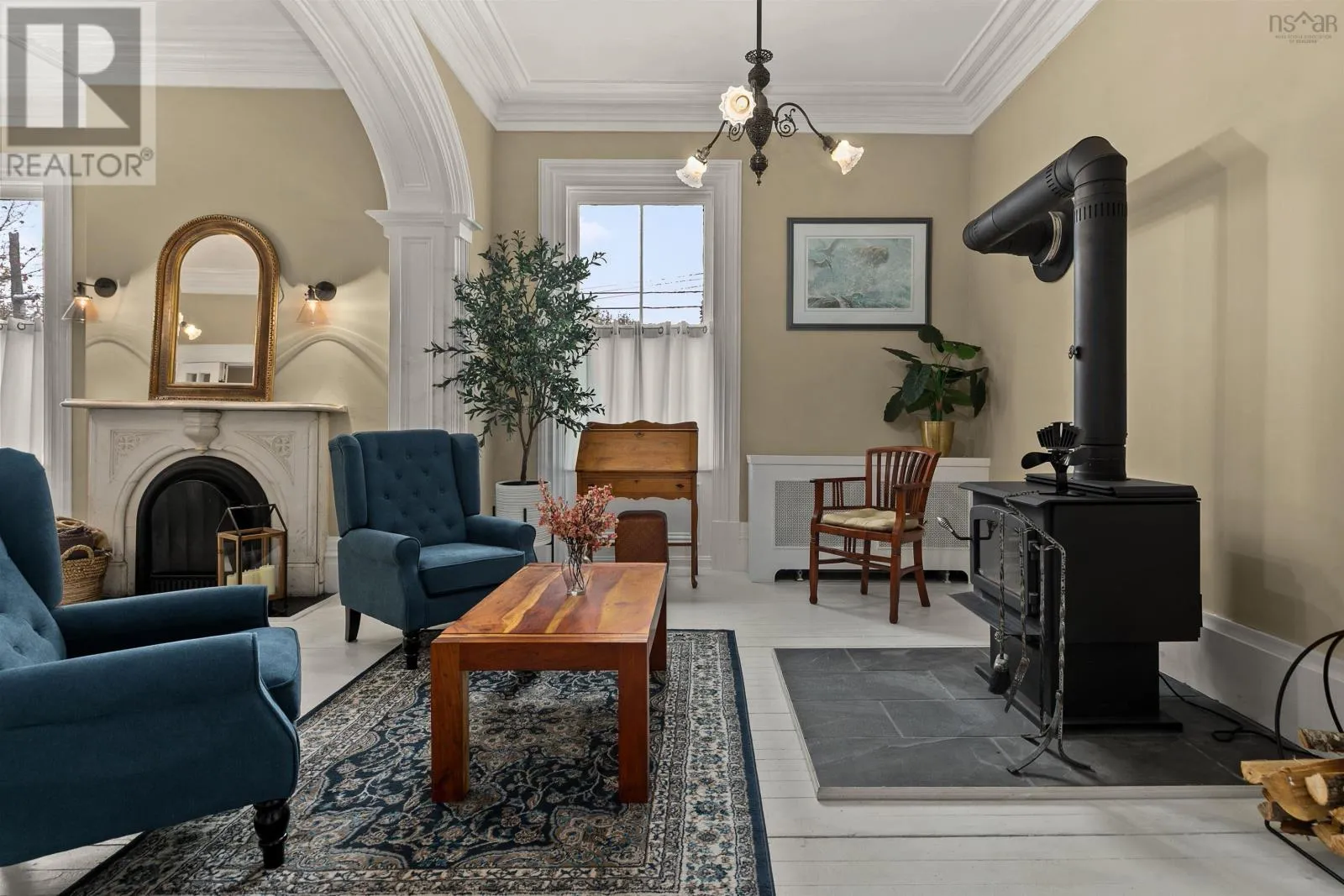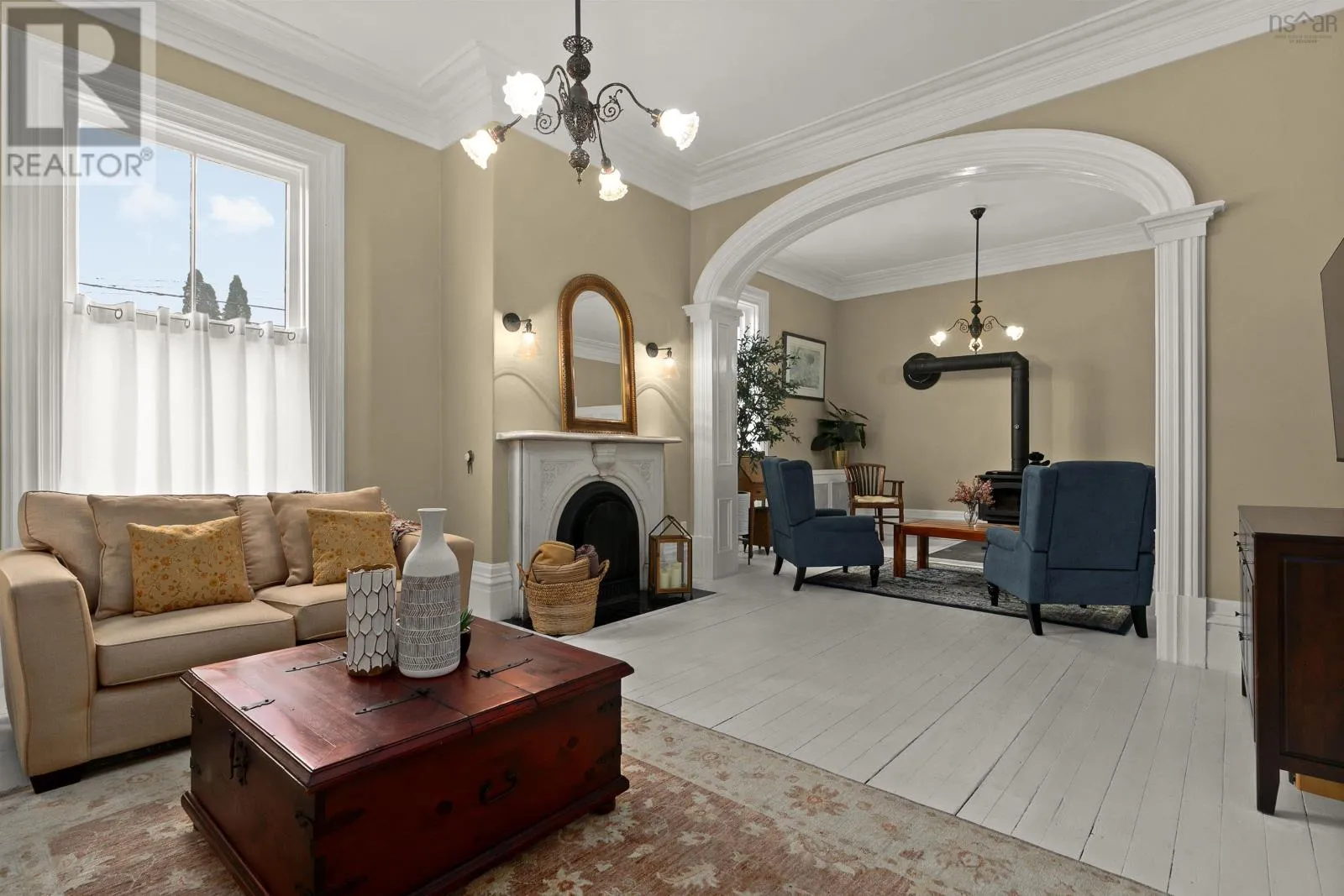 Google Maps: https://maps.app.goo.gl/Y9rYbCUi61dQ8u4w6 This isnt just a home - its a New Glasgow landmark. Crafted in 1876 and filled with rich history, timeless character, and bold Victorian design, this residence has been meticulously preserved and thoughtfully enhanced with modern comfort throughout. The grandeur of this 4-bedroom home is undeniable from the moment you arrive. Set on a 0.54-acre lot - the largest residential lot in the neighbourhood - the striking gables, pea-stone path, and covered veranda hint at the beauty inside. Step through the front door and craftsmanship takes centre stage: refinished hardwood floors with bespoke inlays, 11' ceilings, 22" crown mouldings, detailed millwork, and oversized windows that fill each room with natural light. Generous living spaces include a formal living room with original French doors and a grand arched opening into a cozy sitting room anchored by a wood-burning stove. The dining room enjoys garden views and connects through a butler door to a functional kitchen with new appliances. A convenient mudroom leads to the driveway and new single-car garage. Take the formal or back staircase to the second floor featuring a tastefully updated bathroom with clawfoot tub, four spacious bedrooms (one with a half-bath), and a charming three-season sunroom overlooking the neighbourhood. Comfort upgrades include ductless heating & cooling, a new propane hot-water boiler running through the original radiators, updated roofing and electrical, new appliances, fresh paint throughout, and upgraded attic insulation. Minutes from downtown New Glasgow, this is a rare opportunity to own a property that has shaped the communitys story for nearly 150 years - and is ready for its next chapter. Welcome to 202 Washington Street - history you can live in. (id:27476)