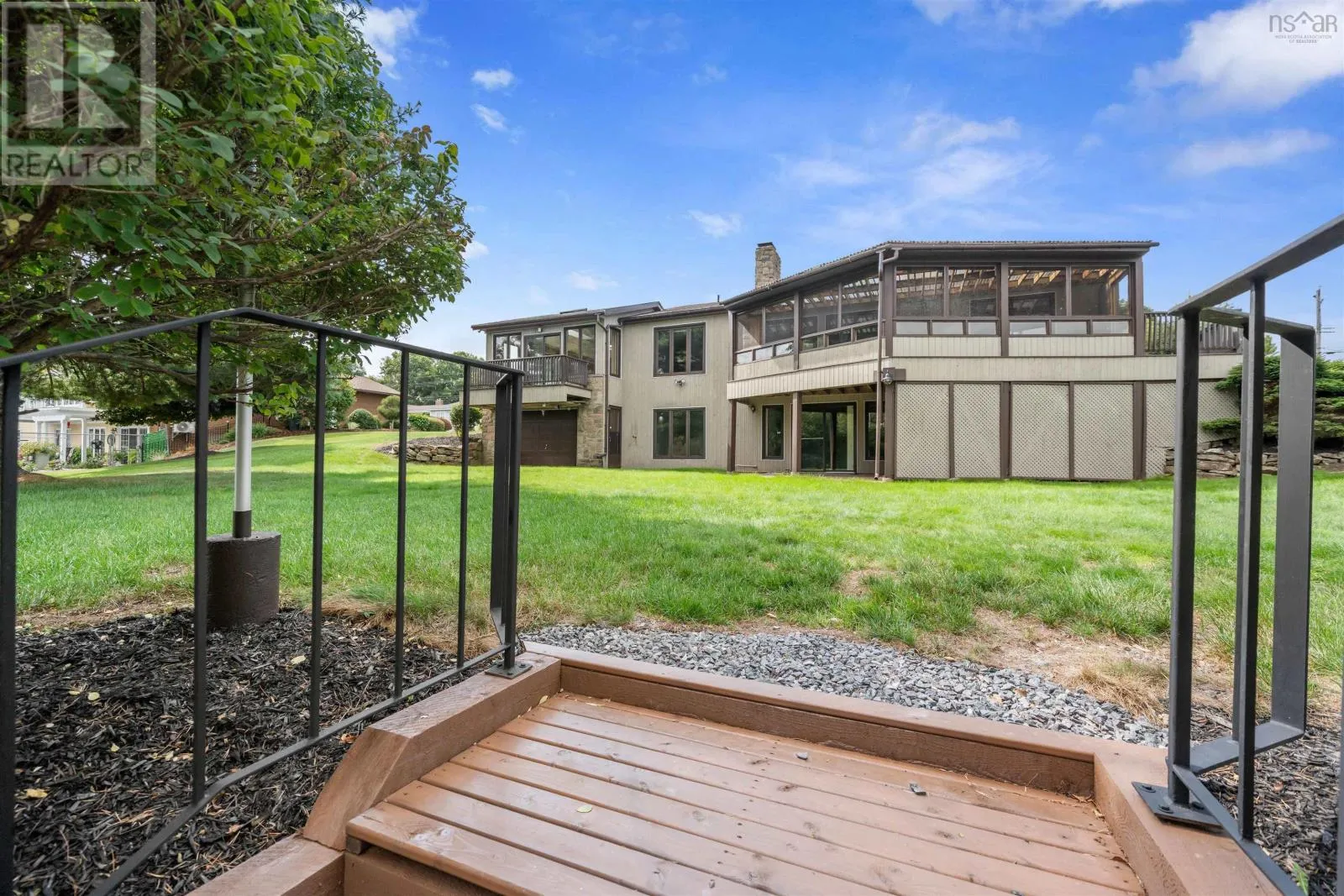 Off George Street to Terrace Street on the River Side Welcome to your dream home on Terrace Street, New Glasgow! In a highly sought after area on the West Side, this stunning three to four bedroom, three bath home boasts 112 feet of RIVER FRONTAGE, offering breathtaking views from the huge covered angled balcony. Step down to the water from the terraced steps and he horse shoe pits is all ready... or relax on the deck overlooking the peaceful surroundings. The aggregate driveway leads to the attached garage, with an additional garage underneath the massive sunroom. Inside, you'll find a thoughtfully designed floor plan with brand new flooring throughout the main level, a double sided fireplace and more! The solid wood doors and moldings show the quality build of this unique home. The retro charm of the home can easily be updated to suit modern tastes, making it a truly versatile and one of a kind property. The walk out basement features a huge bedroom with a fantastic view, a massive rec room with a wood stove, the bathroom features a water jet tub plus loads of extra space, simply endless possibilities of your favourite activities be it yoga, art space and more. Tremendous potential to transform the lower level into a separate suite with its own entrance and patio area. Experience the beauty and tranquility of RIVER FRONT LIVING in this exceptional home just a stones away throw to the Sampson Trail, downtown New Glasgow or the West Side Plaza! (id:27476)