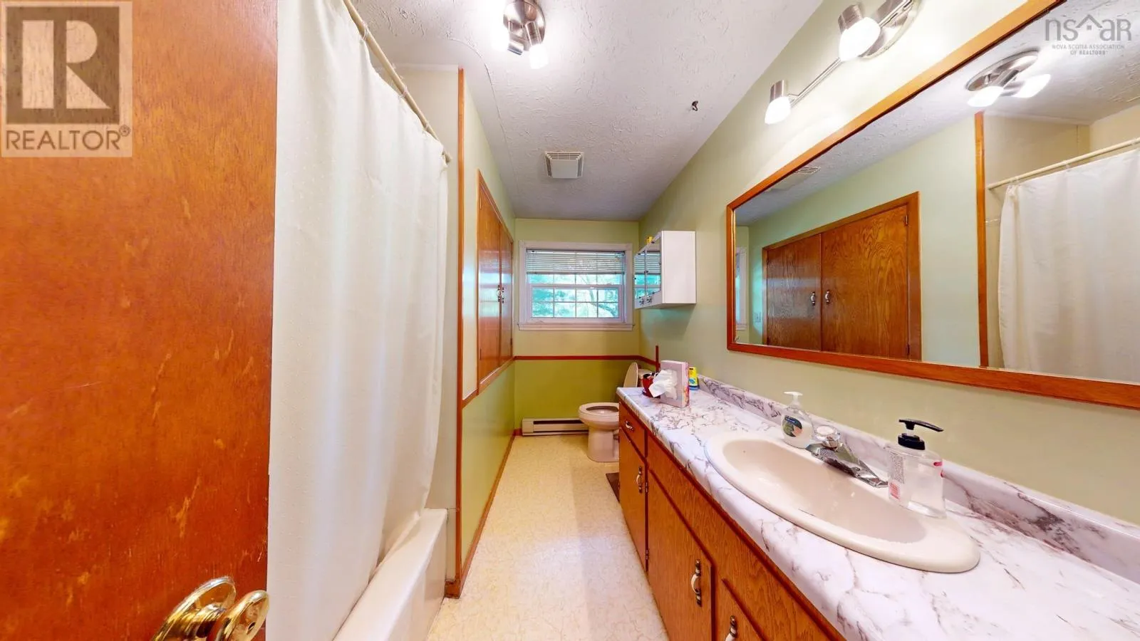 Take Evangeline Trl/Main St/Nova Scotia Trunk 1 E, Turn RT on Highbury Road, Home on the RHS. Charming, 3-bedroom, split entry in the heart of New Minas full of character and potential. This well-maintained 3-bedroom, 2-bath split entry is perfectly located in the heart of New Minas. The main level offers a bright living room, kitchen with adjoining dining area, full bath, and three bedrooms. Downstairs features a rec room with a woodstove, a second full bath with stand-alone tub, laundry area, large storage/wood room, and two additional rooms, ideal for an office, craft room, or a large mudroom with walkout access to the front yard. Zoned R3, the property offers great flexibility. Notables include a new roof (2016), chimney cleaned (2023), and all windows and doors replaced over the past 19 years (only 1 exterior door not replaced). A large back deck and 10'x8' shed add to the overall functionality. A solid, well-cared-for home ready for your personal touch. (id:27476)