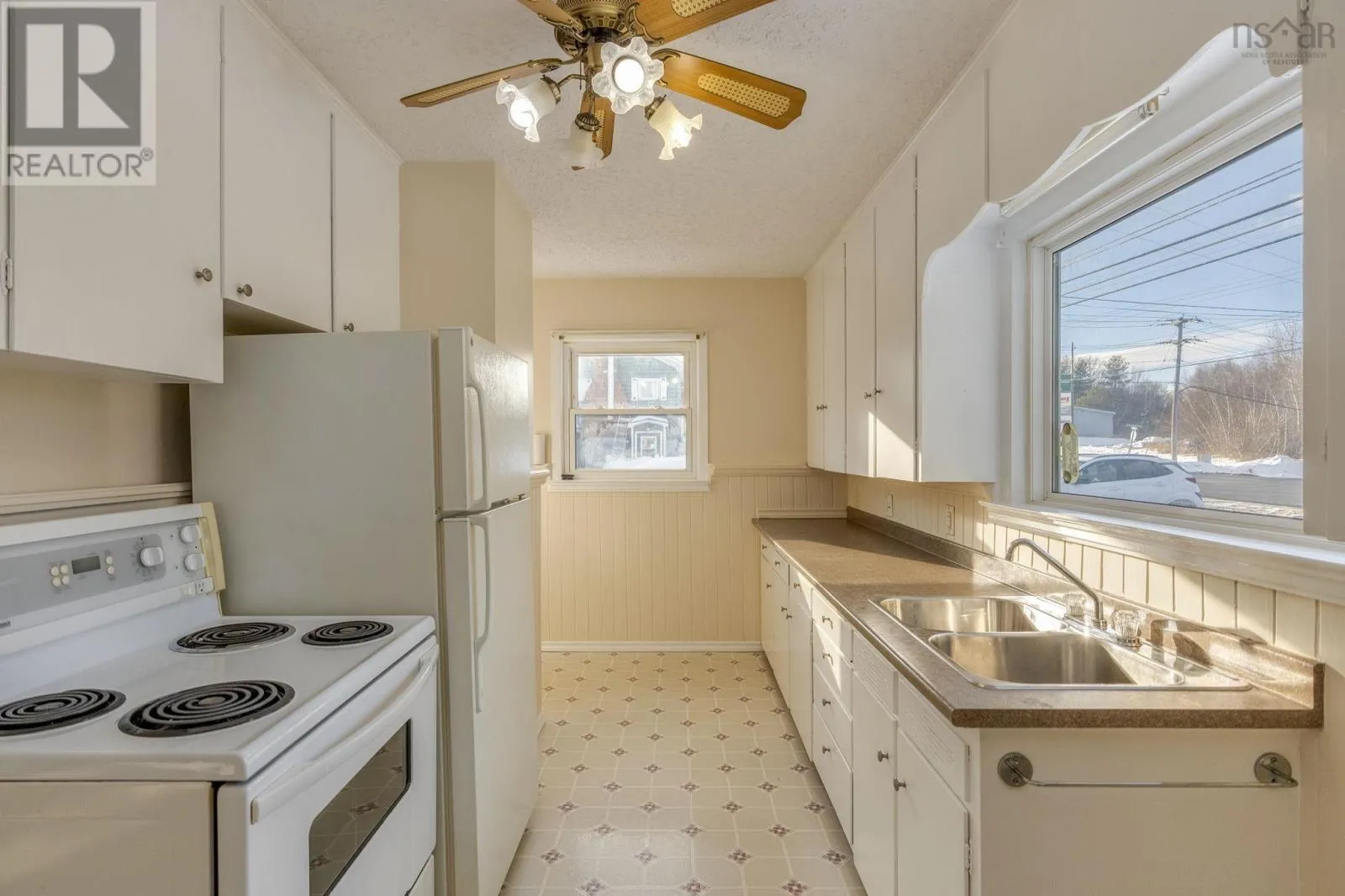 Highway 1 - New Minas - Commercial Street Rare find in New Minas! This charming property offers the perfect package of a well-maintained 2-bedroom home paired with a professional-grade workspace. The centerpiece of the property is the double detached garage; fully insulated, wired, and ready for your projects regardless of the season. Inside, the home features a functional layout with a spacious kitchen (appliances included), two sunlit bedrooms, and a full 4-piece bath. The unfinished basement provides excellent storage or room for future expansion. Outside, enjoy a paved driveway and a low-maintenance lot. Located on Commercial Street, this home provides ultimate convenience for shopping, schools, and commuting. Don't settle for a basic starter home when you can have the ultimate garage and workshop too! (id:27476)