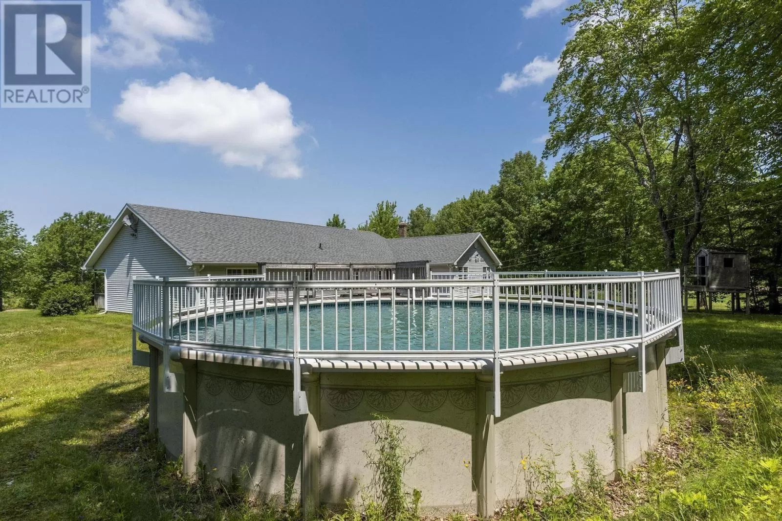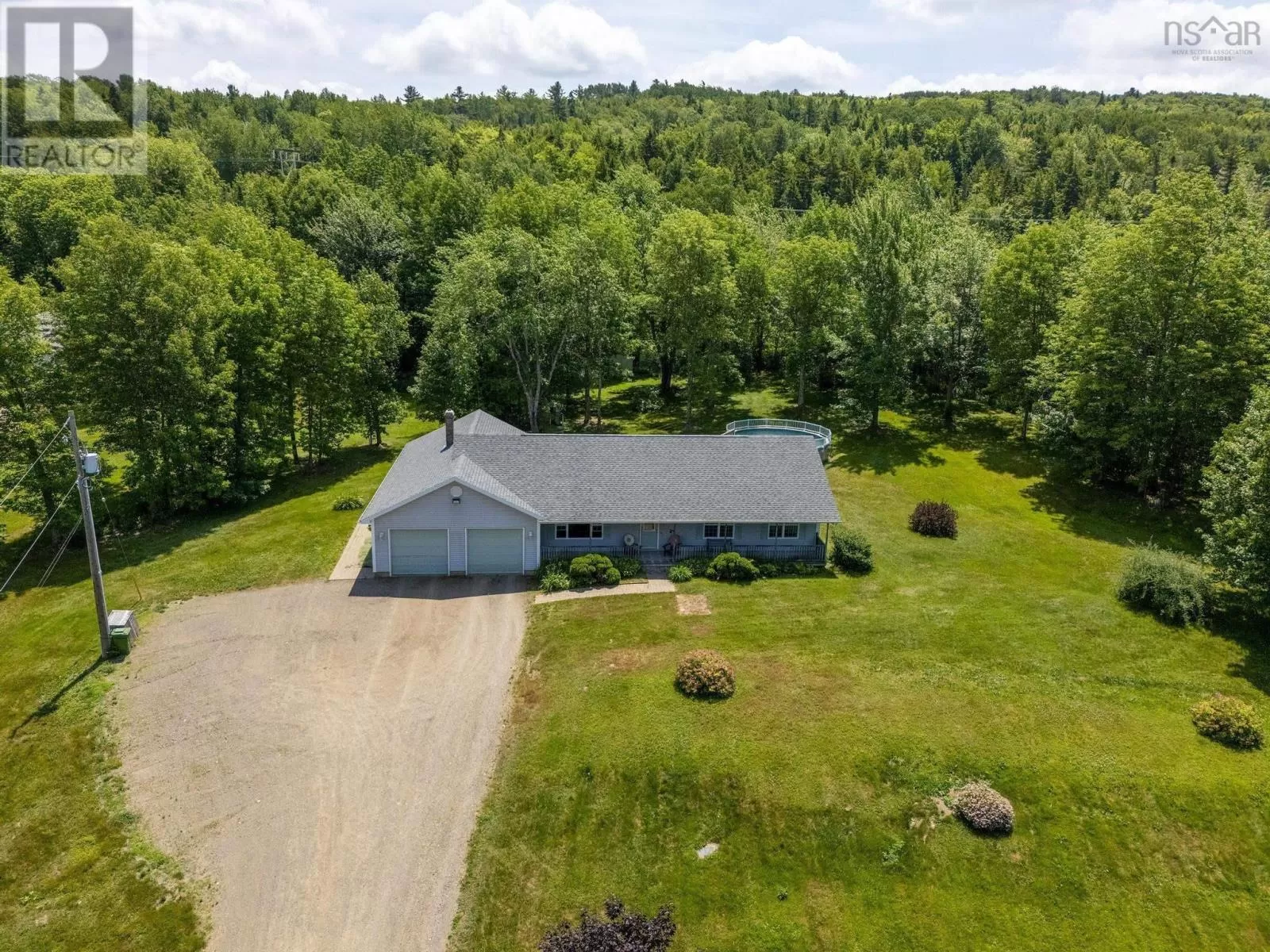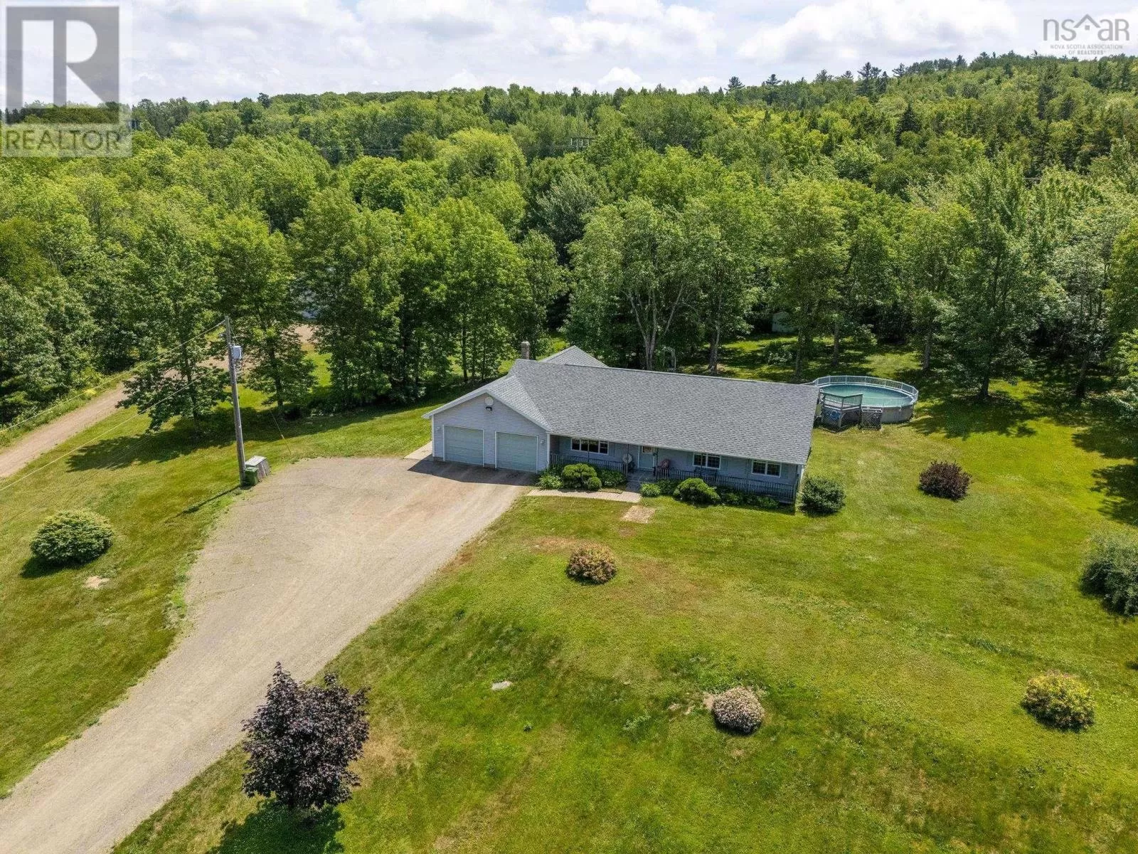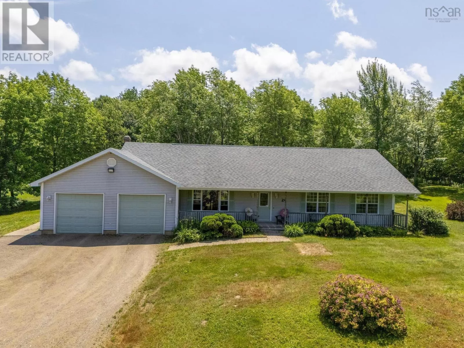 From Gaspereau, West on Black River Road to Civic on left. See Sign. Welcome to this spacious rancher on slab with in floor heat and located on a 5 acre lot in Gaspereau Valley. Ideally set up for business/ hobby farm or just enjoy the idyllic, private country living and only minutes drive from Wolfville. The home features 2,038 sq. ft of finished living space with open concept KIT/DIN/LIVINRM/FAMRM including Oak kitchen cabinets; patio doors off dining room and an above ground pool new in 2009; large office space; primary bedroom with walk-in closet, spacious 4Pc main bath with separate shower and two other good sized bedrooms; 2pc powder room/laundry. Ceramic flooring in kitchen/dining room, back hallway and both bathrooms; engineered hardwood in living room, famrm, front foyer and hallway; carpet in all three bedrooms and commercial office tile in office. Attached double garage has in floor heat and generator (included) will service whole house in case of power outage. A 30 x 40 detached garage/workshop has 13 ft ceilings and is wired for 200 Amp and roughed in for in floor heating. Security system on both house and shop. Appliances include fridge, stove, w&d, dishwasher, central vacuum and attachments. Come view this lovely home in the middle of wine country!! (id:27476)