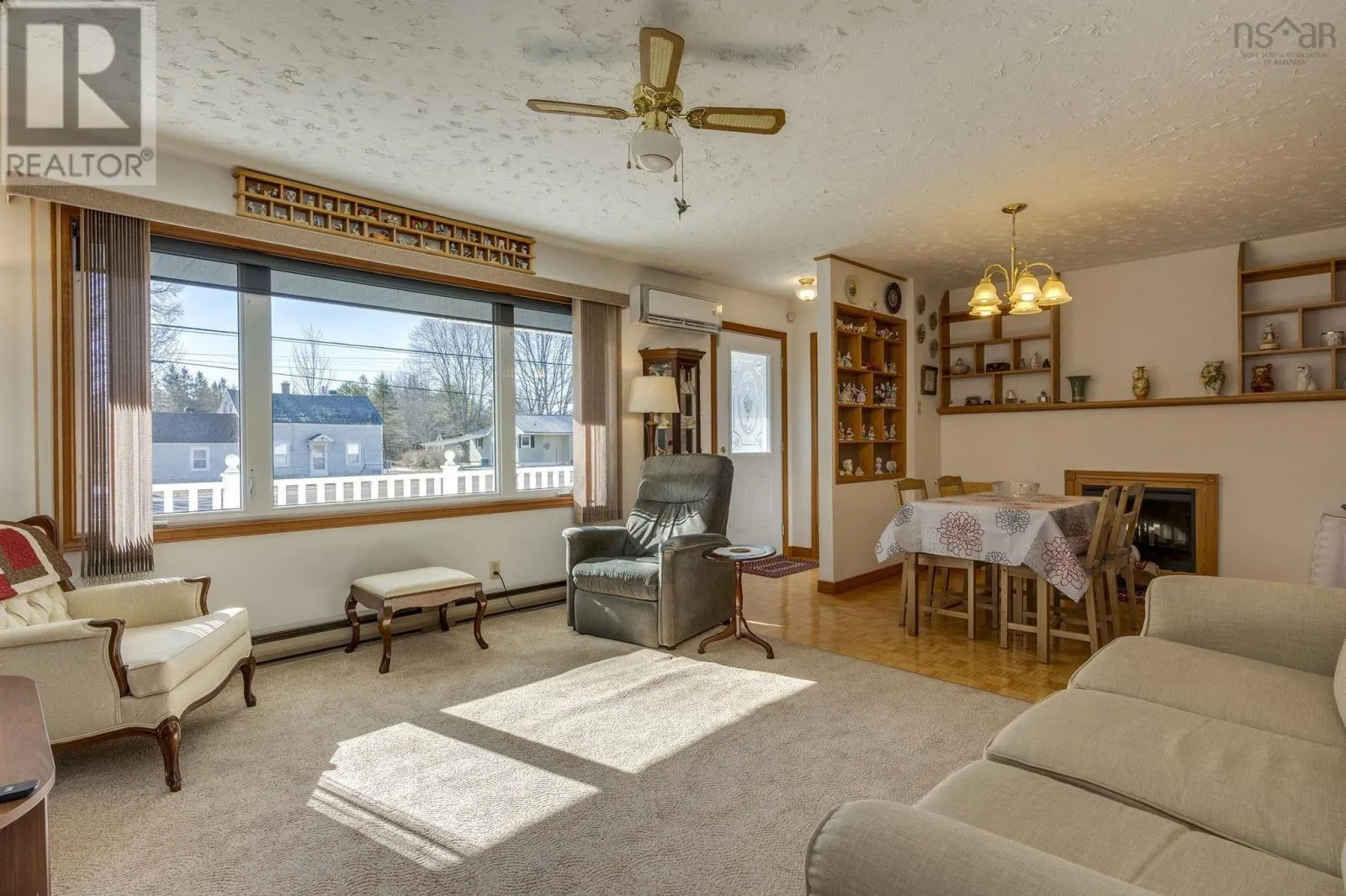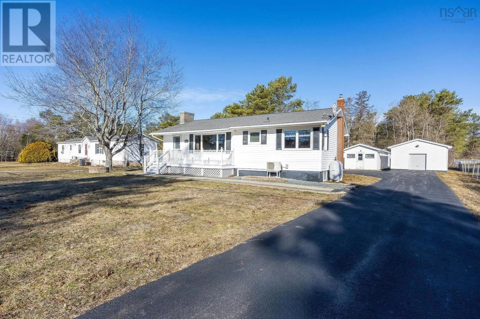 From Hwy 10 in Middleton, right on Hwy 201. Property is on your right. Look for sign and civic. Welcome to 8711 Highway 201 in Nictaux; a beautifully maintained bungalow that offers comfort, versatility, and exceptional value. The main floor features three well-sized bedrooms and a full bath, along with a bright open-concept kitchen, dining, and living area. Large windows throughout the main floor fill the space with natural light, creating a warm and inviting atmosphere. Pride of ownership is evident in every corner, with the home presented in immaculate condition. A spacious and practical rear foyer provides convenient access from the parking area; perfect for everyday living. The fully finished basement expands your living space with a generous family room, office, and games room, offering plenty of flexibility for your needs. An oil stove adds cozy supplemental heat, while two heat pumps, one on each level, provide efficient year-round comfort. The large laundry area and abundant storage make day-to-day living easy. Outside, the property continues to impress with a paved driveway offering multiple parking spaces and several versatile outbuildings. One structure, formerly a single-car garage, could easily be converted back, while another wired and heated building, previously used for a home-based business, opens the door to a variety of uses, with approximately 730 sq.ft. of additional space. Situated on half an acre and connected to municipal sewer, this commercially zoned property offers both residential comfort and business potential in a convenient location. (id:27476)