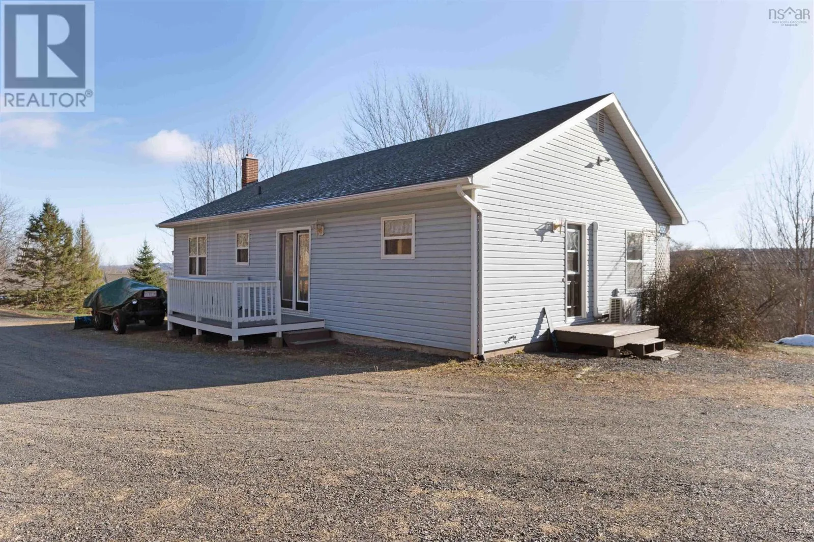 Hwy 12 onto Prospect Road to civic. Meticulously Maintained Bungalow on 1.5 Private Acres Experience the perfect blend of rural privacy and modern efficiency in this move-in-ready 3-bedroom, 4-piece bath bungalow. Located just one minute from highway access and less than 10 minutes from the vibrant hubs of Kentville and New Minas, this home offers an ideal commute and unparalleled convenience. Step inside a bright kitchen and dining area that flows seamlessly into a spacious living room featuring a premium Fujitsu heat pump for year-round climate control. The main floor is thoughtfully designed with three large bedrooms and a convenient laundry setup. The basement is open and unfinished containing the wood stove and oil furnace. Recent 2025 upgrades include a new submersible pump, fresh paint throughout, and some new flooring, adding to long-term value alongside the fiberglass oil tank (2017) and shingles (2015). Outside, enjoy 1.5 acres of private land, a functional wrap-around driveway with dual entrances, and two versatile outbuildings for all your storage needs. (id:27476)