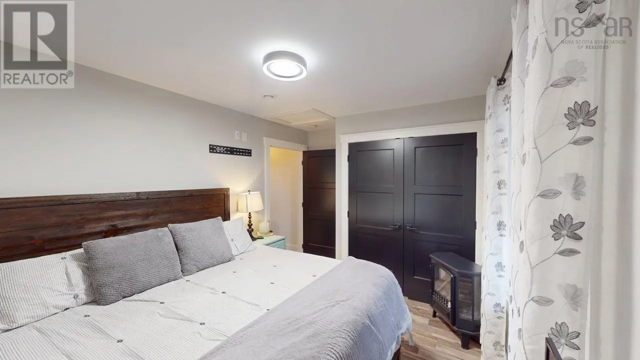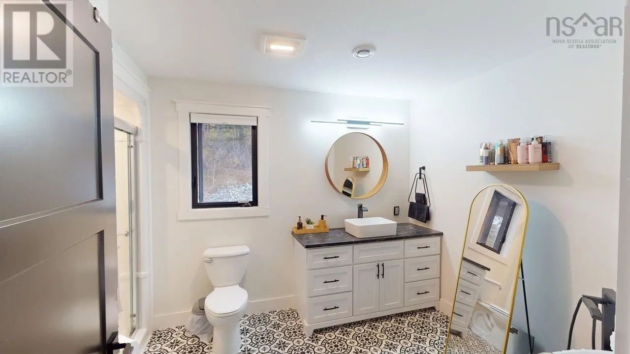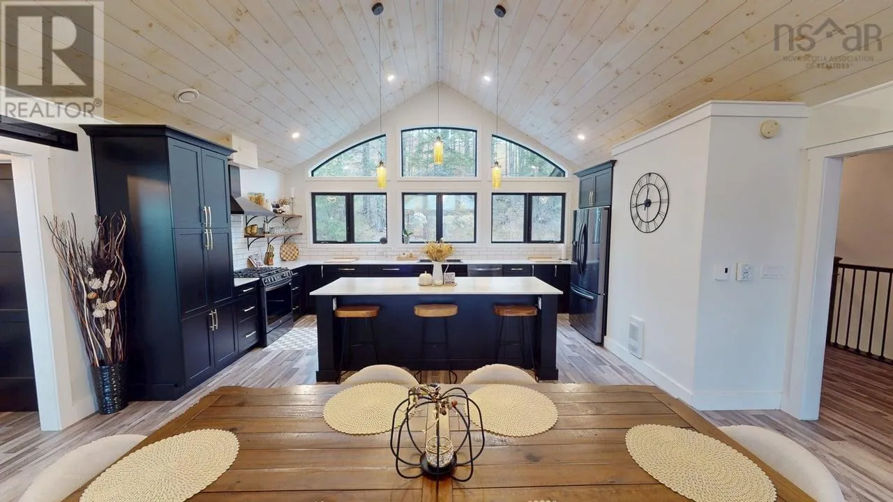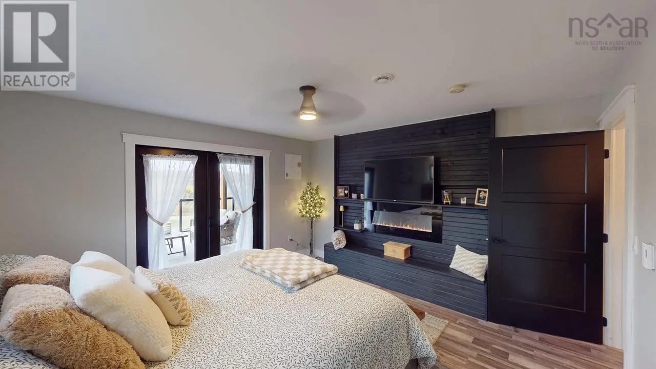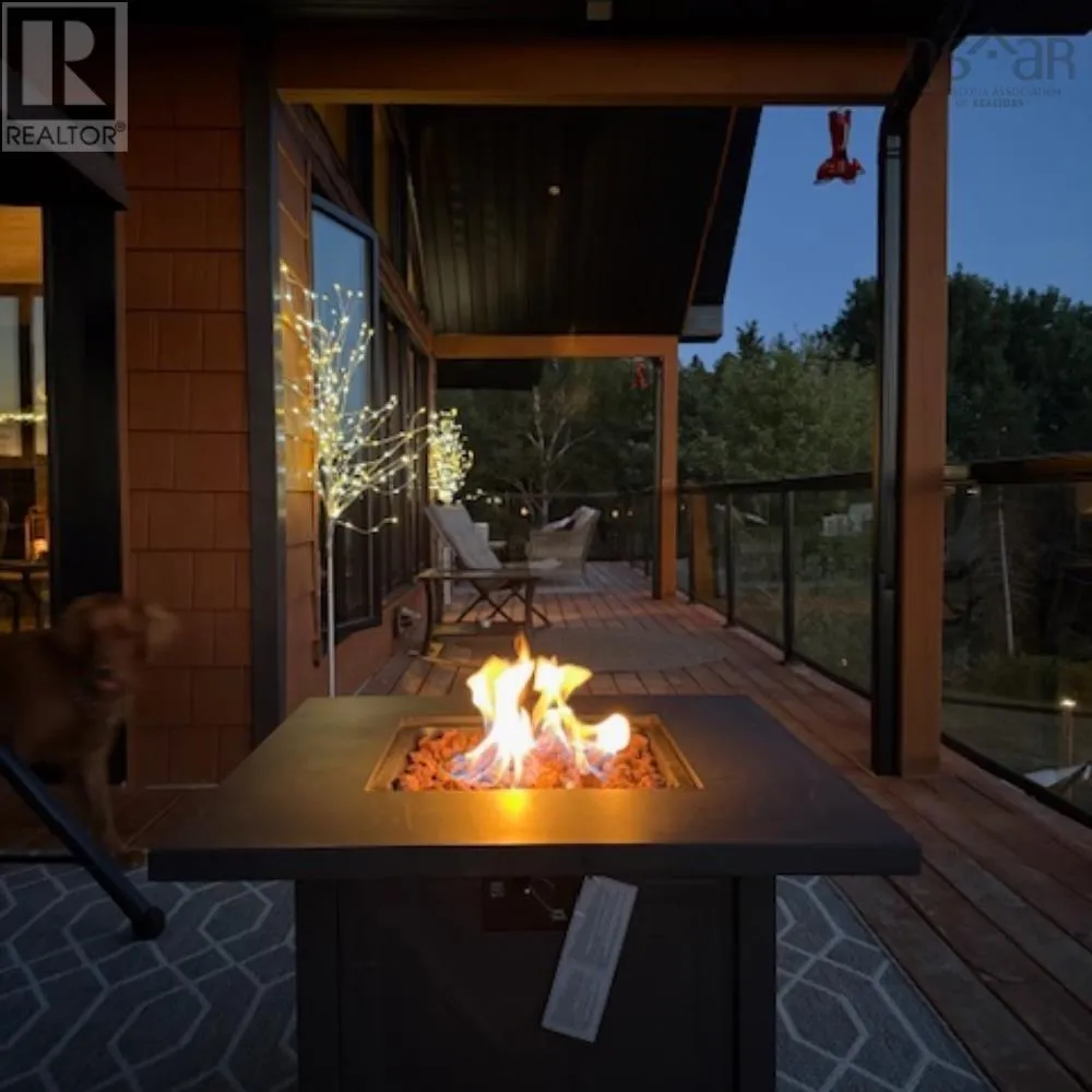 NS-245 to Lower North Grant Rd to Birds Eye View Lane Visit REALTOR® website for additional information. Built in 2022, this stunning executive chalet-style home offers over 3,400 sq. ft. of luxurious living space and is sure to impress! Featuring expansive windows, 13-ft cathedral ceilings, a stone fireplace, custom lighting, pine board ceilings, and high-end finishes throughout. Professionally appraised and priced accordingly. Located in scenic Lower North Grant, this hilltop property offers breathtaking views of sunsets, rolling hills, and valleys - just 5 minutes from Antigonish, blending country charm with convenience. Inside, the quality craftsmanship is evident in every detail. The open-concept kitchen, dining, and living area is perfect for entertaining, complete with a functional island, beverage fridge, and plenty of cabinetry. The bright living room opens to a full-length covered balcony overlooking the pool and picturesque landscape, ideal for dining or lounging outdoors. The primary suite features a fireplace, accent wall, balcony access, walk-in closet, and spa-inspired ensuite with a walk-in shower and soaker tub. Two additional bedrooms, a main bath, and a laundry area with sliding doors complete the main level. The lower level offers a spacious rec room with patio access to the pool area, a fourth bedroom, a half bath, an office/study area, large storage, and a utility room. Comfort is ensured year-round with in-floor heating (lower level), a ductless heat pump, a propane fireplace, and electric baseboards. The home is also generator-wired, and all bedrooms are acoustically insulated for peace and privacy. A 19' x 8' pop-up locker provides extra storage for lawn equipment, and select pool/outdoor furniture is negotiable. Experience the perfect balance of comfort, style, and functionality where every day feels like a retreat. (id:27476)