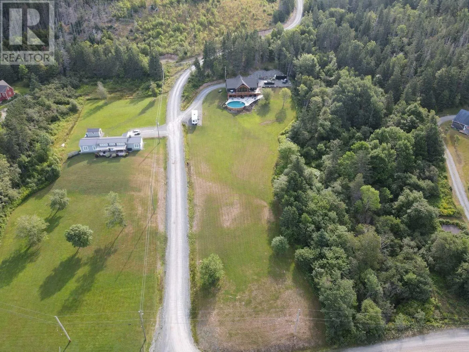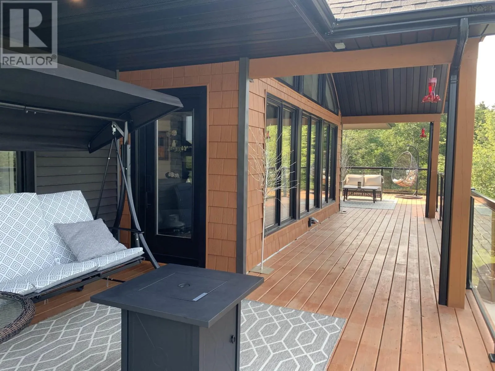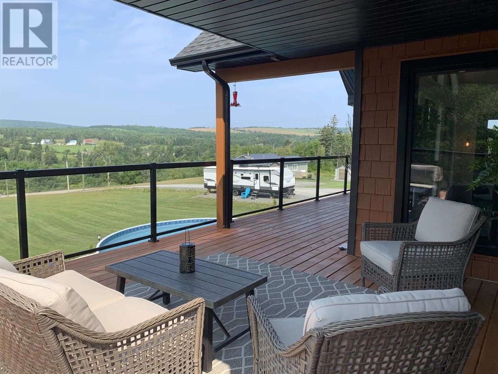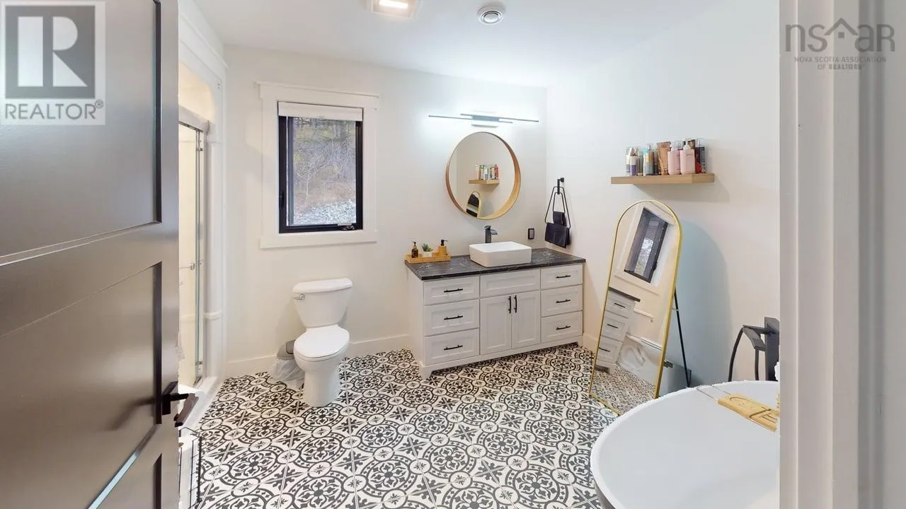NS-245 to Lower North Grant Rd to Birds Eye View Lane Visit REALTOR® website for additional information. Built in 2022, this stunning executive chalet-style home offers over 3,400 sq. ft. of luxurious living space and is sure to impress! Featuring expansive windows, 13-ft cathedral ceilings, a stone fireplace, custom lighting, pine board ceilings, and high-end finishes throughout. Professionally appraised and priced accordingly. Located in scenic Lower North Grant, this hilltop property offers breathtaking views of sunsets, rolling hills, and valleys - just 5 minutes from Antigonish, blending country charm with convenience. Inside, the quality craftsmanship is evident in every detail. The open-concept kitchen, dining, and living area is perfect for entertaining, complete with a functional island, beverage fridge, and plenty of cabinetry. The bright living room opens to a full-length covered balcony overlooking the pool and picturesque landscape, ideal for dining or lounging outdoors. The primary suite features a fireplace, accent wall, balcony access, walk-in closet, and spa-inspired ensuite with a walk-in shower and soaker tub. Two additional bedrooms, a main bath, and a laundry area with sliding doors complete the main level. The lower level offers a spacious rec room with patio access to the pool area, a fourth bedroom, a half bath, an office/study area, large storage, and a utility room. Comfort is ensured year-round with in-floor heating (lower level), a ductless heat pump, a propane fireplace, and electric baseboards. The home is also generator-wired, and all bedrooms are acoustically insulated for peace and privacy. A 19' x 8' pop-up locker provides extra storage for lawn equipment, and select pool/outdoor furniture is negotiable. Experience the perfect balance of comfort, style, and functionality where every day feels like a retreat. (id:27476)