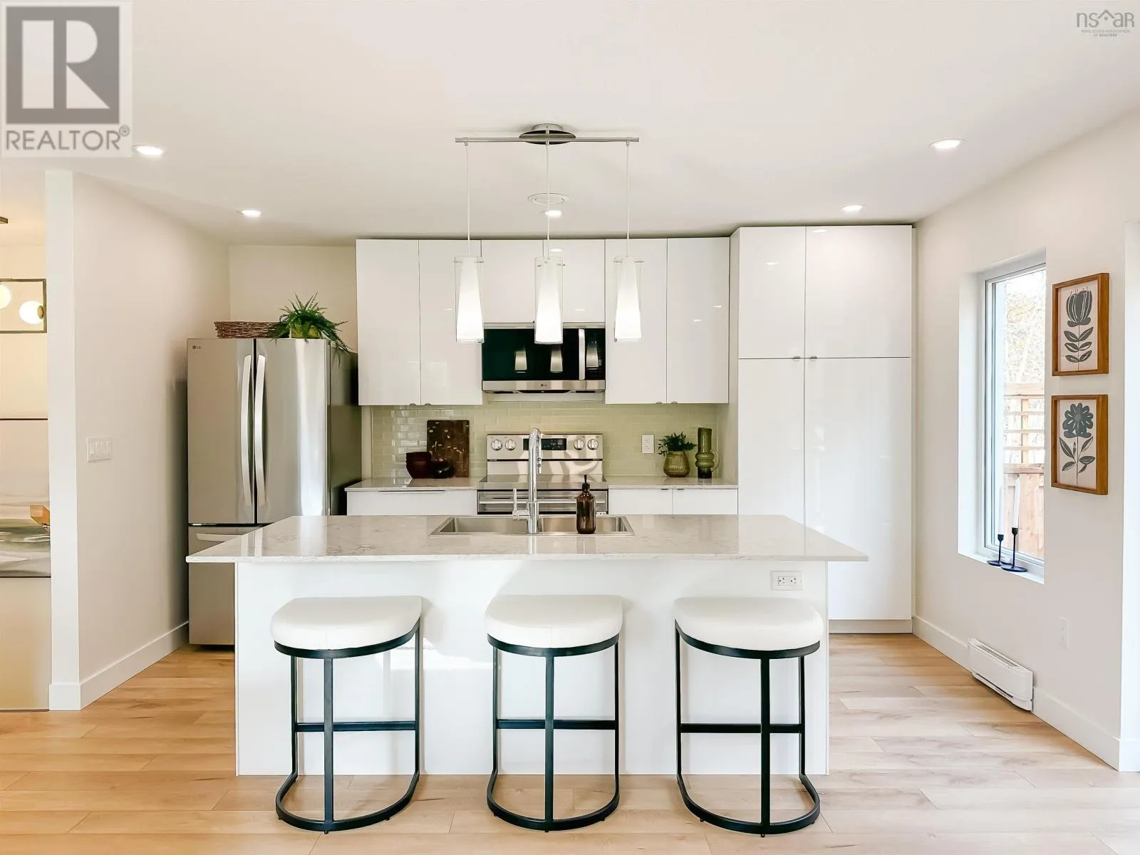From Wolfville, head West on NS-1, turn right onto NS-358 N and follow to Belcher St., turn left onto Belcher St., right onto Oakdene Ave., then Left onto Exhibition St. and then a right onto Lamont Rd., property on right. Welcome to 300 Lamont Road, where thoughtful design meets low-maintenance living in this beautifully constructed semi-detached home. Built with quality materials and energy-efficient features, this property provides year-round comfort and lasting value. The spacious entryway leads to a flexible lower level that can adapt to your lifestyle a large bedroom that could serve as a primary suite, in-law suite, or potential rental space. It includes a walk-in three-piece bathroom and is plumbed and wired for a kitchenette, offering the option for a private living area or guest accommodation. Upstairs, an open-concept design creates a bright and welcoming main living space. The modern kitchen features quartz countertops, a large central island, and excellent flow into the living and dining areas. From here, step out to the deck and patio area with a privacy fence backing onto peaceful green space perfect for relaxing or entertaining. Two bedrooms, a full bathroom, an office hardwired for internet and a half bath complete this level, offering plenty of space for work and family needs. Practical touches throughout make life easy: a laundry room, utility room, and ample storage are located on the main level, along with access to the heated and wired single-car garage. With durable steel siding, a metal roof, and excellent insulation, this home is built for efficiency. Electric baseboard heating and heat pumps in every bedroom ensure comfortable heating and cooling year-round. Ideally located within walking distance to Valley Regional Hospital, close to amenities, and just 1 hour and 10 minutes to the Halifax Airport, this property combines smart design, versatility, and modern comfort in a quiet Kentville setting. (id:27476)