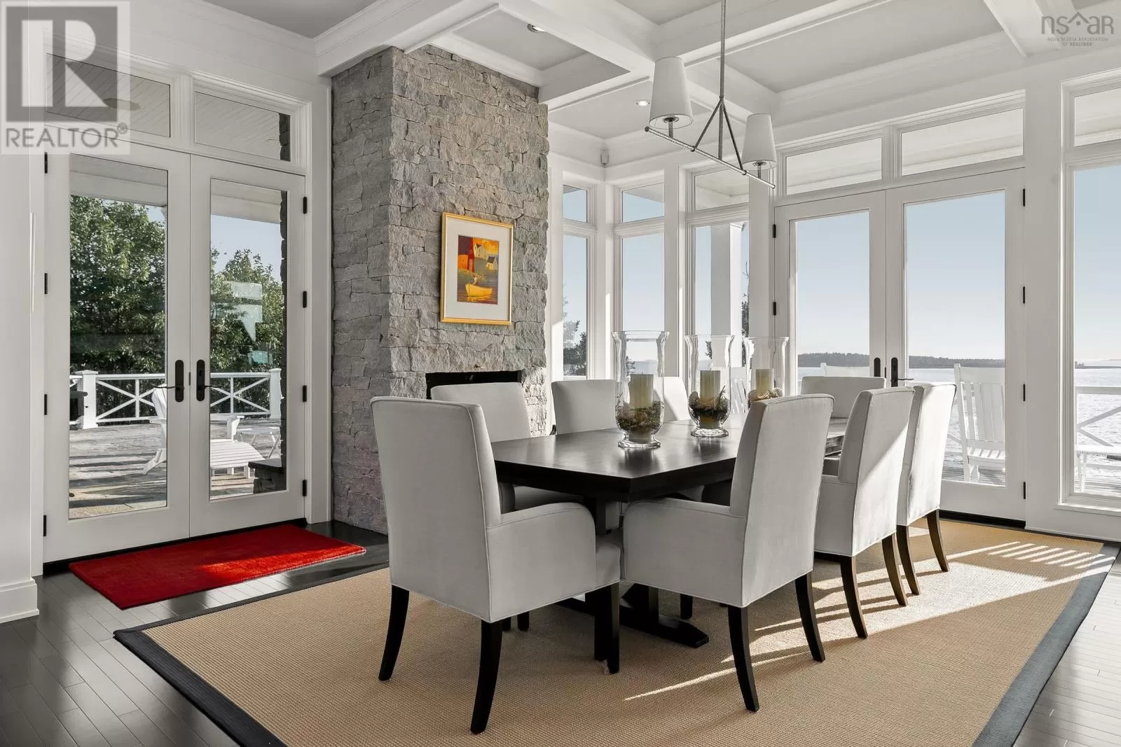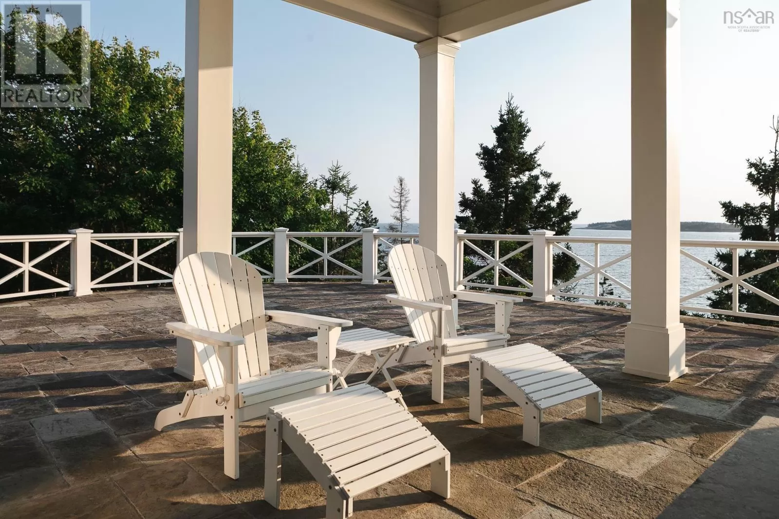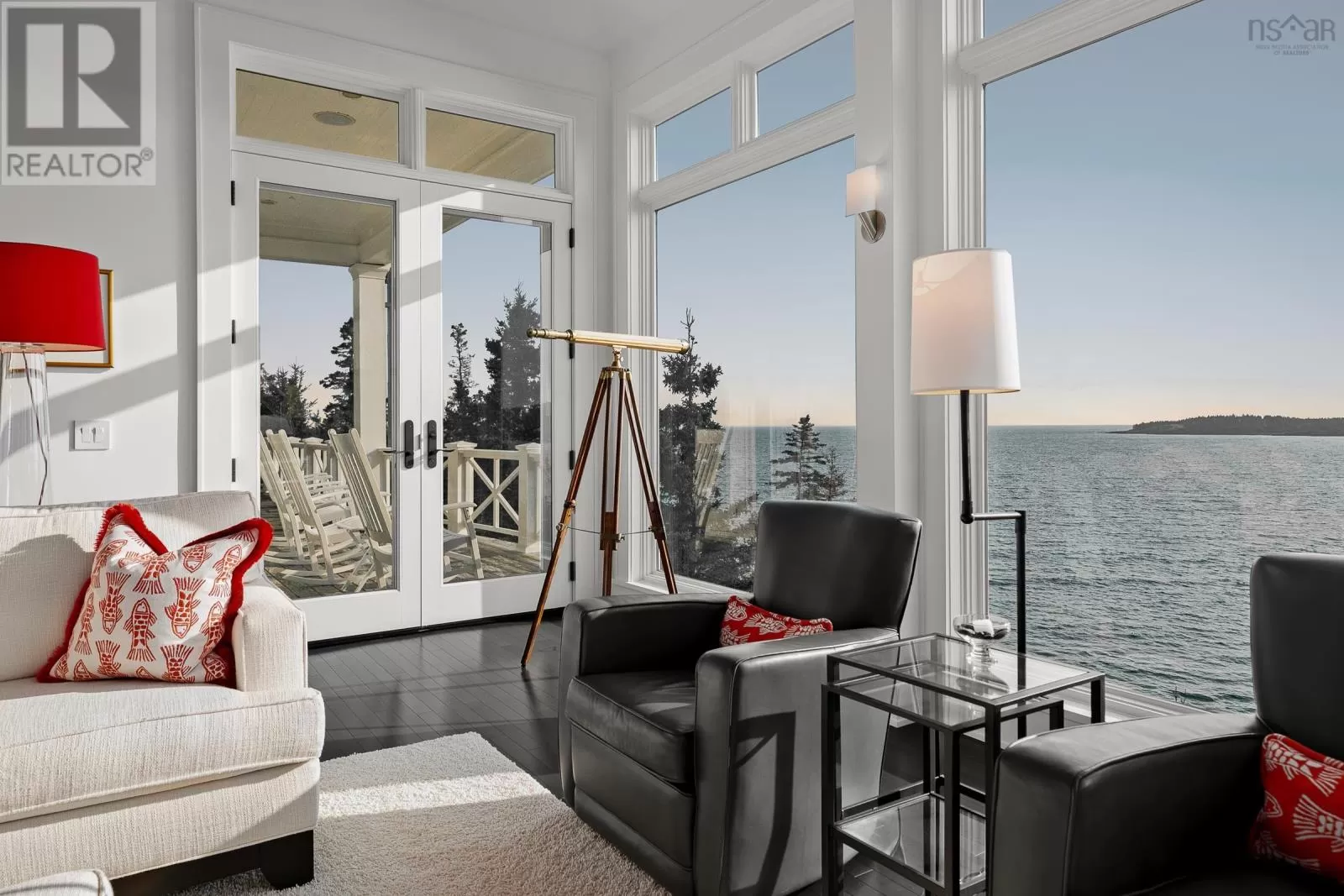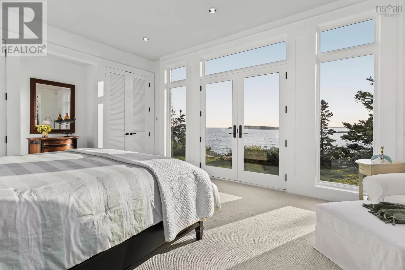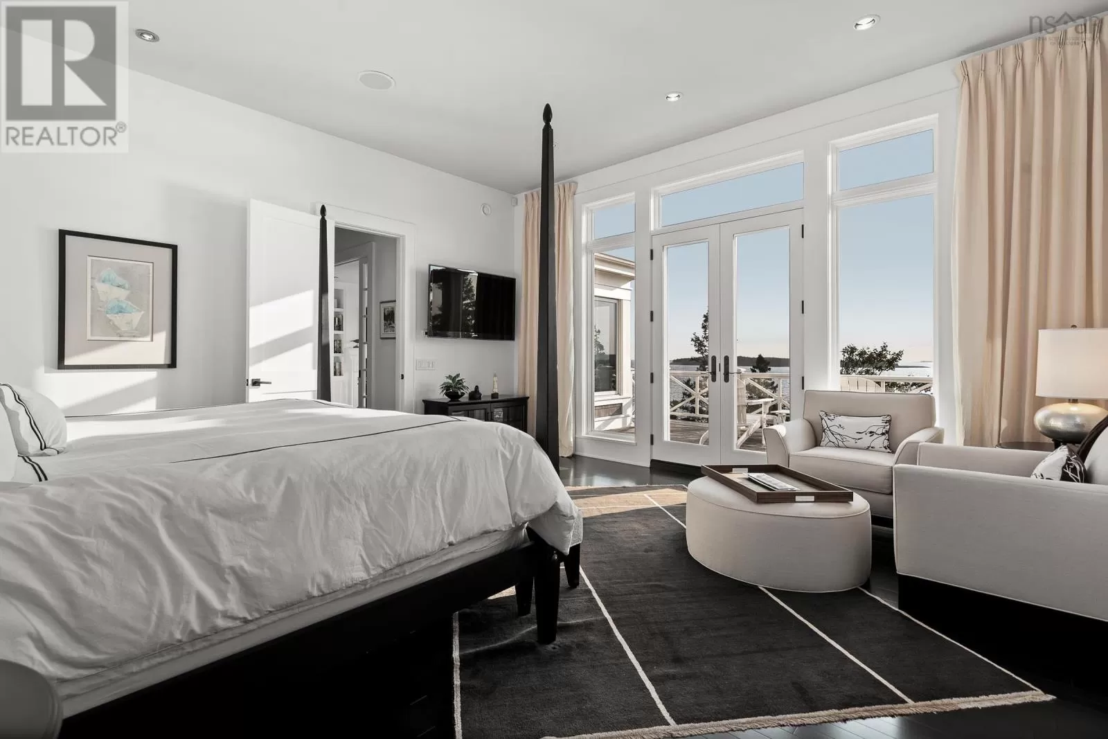 Highway 329 to Northwest Cove, to The Pointe on the Aspotogan Peninsula. Discover this jaw-dropping and meticulously designed South Shore oceanfront oasis! Renowned architect Michael Grunsky created this magnificent one-of-a-kind residence for those seeking an extraordinary lifestyle. Nestled on 12+ acres and 656' of shoreline, this property boasts striking 180 degree southwestern views of bold ocean vistas, rocky coastline, uninhabited islands, inlets and stunning sunsets over the Atlantic. The main floor was carefully curated to blend perfectly with the outdoors. The great room impresses with floor to ceiling windows that seamlessly flow to the light filled dining room and spacious chef's kitchen. Next to a charming sitting room with wood burning fireplace, the spectacular primary suite, with a luxurious ensuite and large walk-in closet, opens to a private waterfront deck, enabling spacious one level living. The great room and the dining room both open to an awe-inspiring ocean view deck and large stone patio featuring an exterior fireplace, ideal for entertaining. The garden level includes a media room (possible bunk room) potential wine or hobby room, full bath, three oceanfront guest bedrooms, (one currently used as a Study), one with an elegant ensuite, and a tremendous amount of storage space. Filled with custom features, no detail was overlooked including 4 wood burning fireplaces, high ceilings, extensive built-ins, exquisite stone and millwork and walls of windows in all the waterfront rooms. This home is located at The Pointe, a private enclave of fine custom-built homes featuring 25 acres of common land and coastal trails for hiking. Perfectly nestled on the South Shore between Chester and Hubbards and 5 minutes from Bayswater Beach, the area offers seasonal farmers' markets, Yacht Club, Golf Club, full-service marinas, Art Centre, Playhouse, quaint shops, cafes and more. Only 40 minutes from Halifax and an hour from Stanfield International Airport. This property is exempt from the Federal Ban on Foreign Buyers. (id:27476)