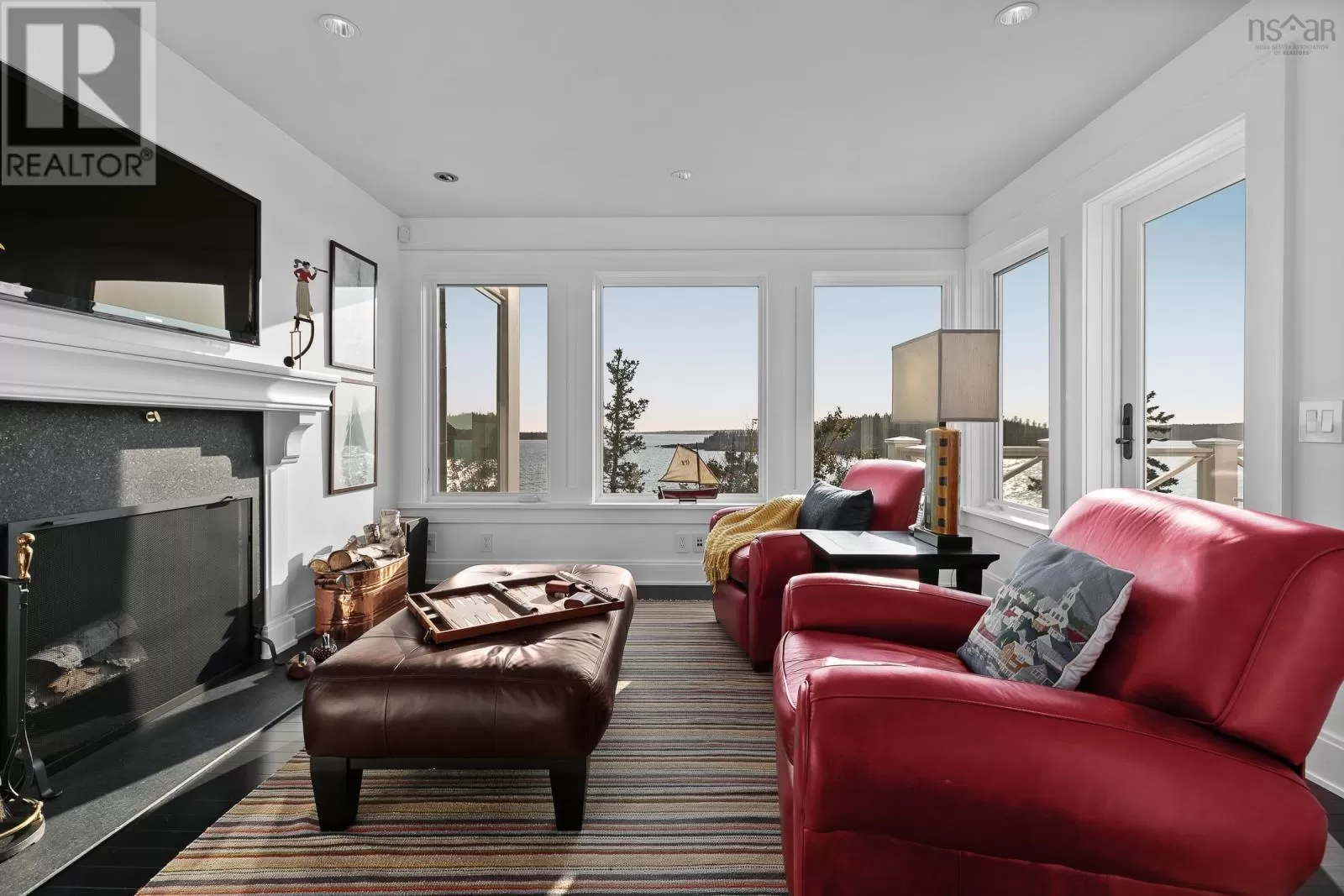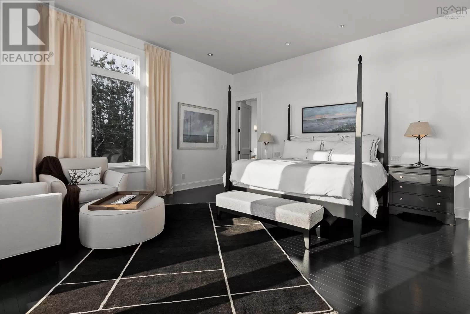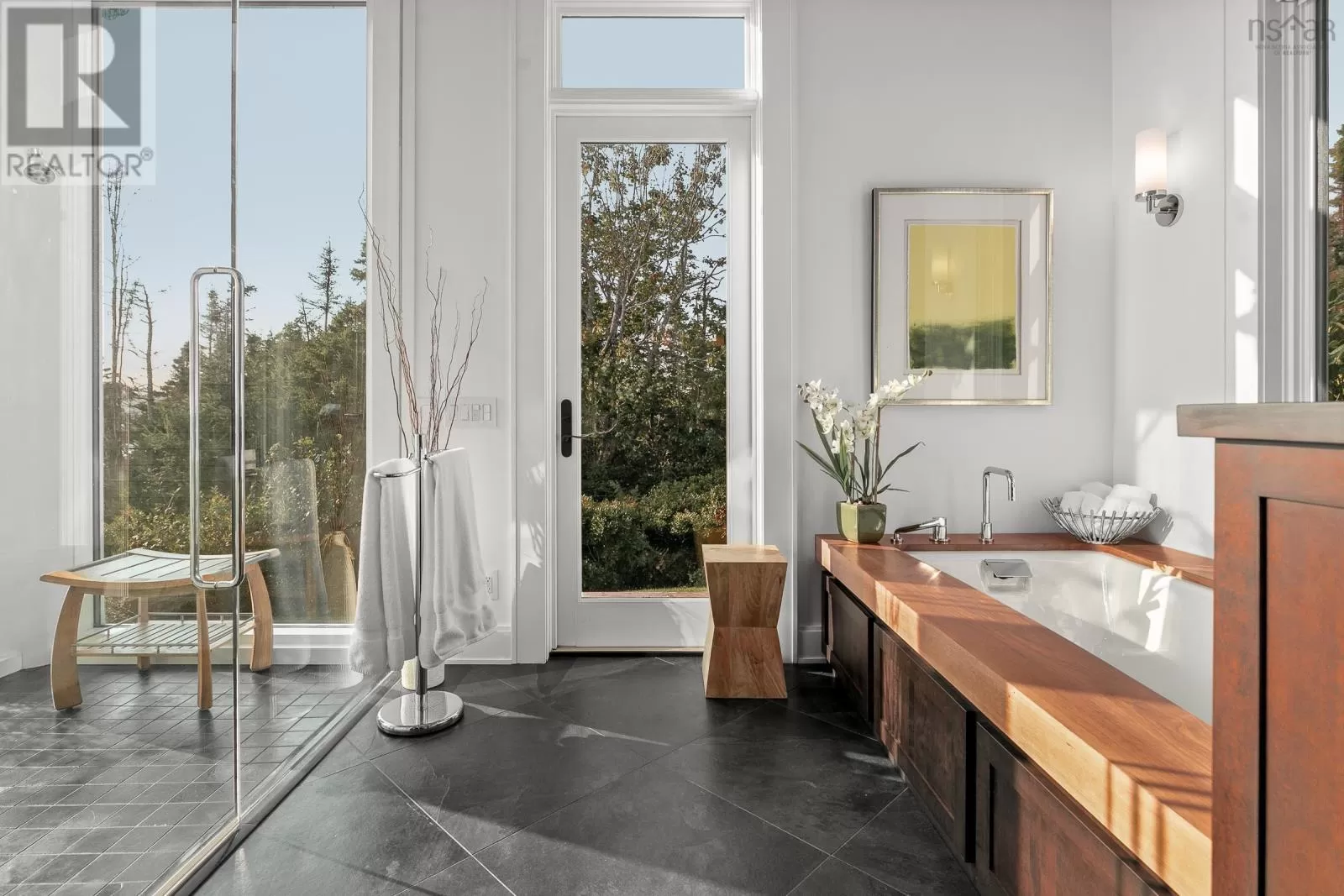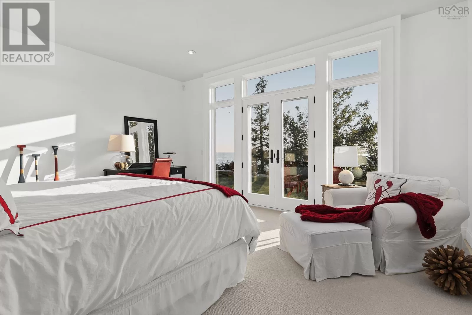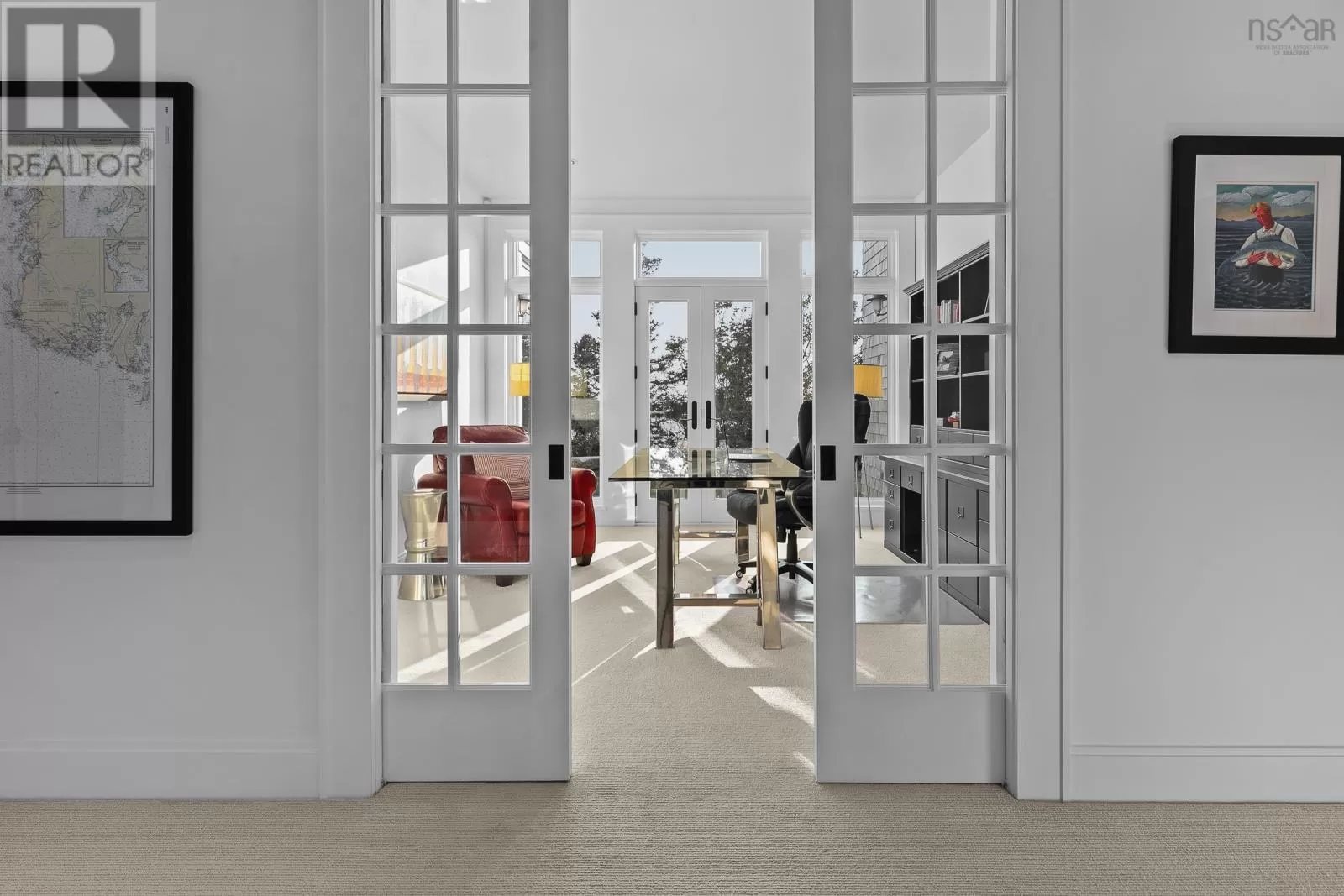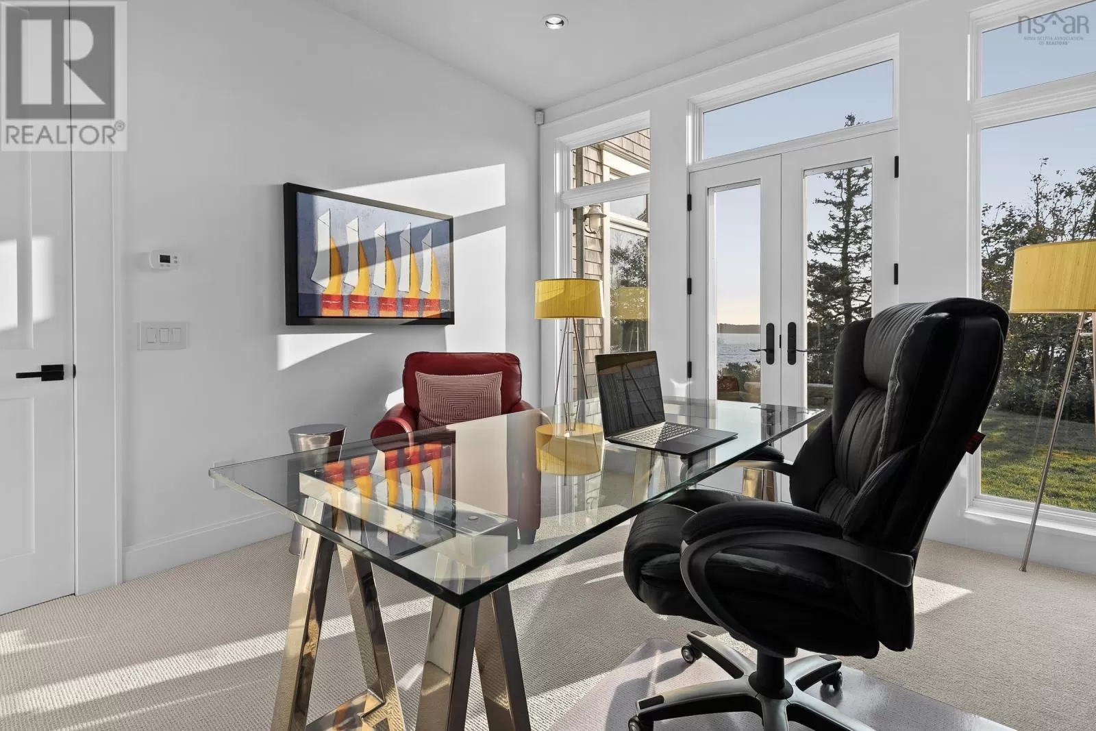 Highway 329 to Northwest Cove, to The Pointe on the Aspotogan Peninsula. Discover this jaw-dropping and meticulously designed South Shore oceanfront oasis! Renowned architect Michael Grunsky created this magnificent one-of-a-kind residence for those seeking an extraordinary lifestyle. Nestled on 12+ acres and 656' of shoreline, this property boasts striking 180 degree southwestern views of bold ocean vistas, rocky coastline, uninhabited islands, inlets and stunning sunsets over the Atlantic. The main floor was carefully curated to blend perfectly with the outdoors. The great room impresses with floor to ceiling windows that seamlessly flow to the light filled dining room and spacious chef's kitchen. Next to a charming sitting room with wood burning fireplace, the spectacular primary suite, with a luxurious ensuite and large walk-in closet, opens to a private waterfront deck, enabling spacious one level living. The great room and the dining room both open to an awe-inspiring ocean view deck and large stone patio featuring an exterior fireplace, ideal for entertaining. The garden level includes a media room (possible bunk room) potential wine or hobby room, full bath, three oceanfront guest bedrooms, (one currently used as a Study), one with an elegant ensuite, and a tremendous amount of storage space. Filled with custom features, no detail was overlooked including 4 wood burning fireplaces, high ceilings, extensive built-ins, exquisite stone and millwork and walls of windows in all the waterfront rooms. This home is located at The Pointe, a private enclave of fine custom-built homes featuring 25 acres of common land and coastal trails for hiking. Perfectly nestled on the South Shore between Chester and Hubbards and 5 minutes from Bayswater Beach, the area offers seasonal farmers' markets, Yacht Club, Golf Club, full-service marinas, Art Centre, Playhouse, quaint shops, cafes and more. Only 40 minutes from Halifax and an hour from Stanfield International Airport. This property is exempt from the Federal Ban on Foreign Buyers. (id:27476)