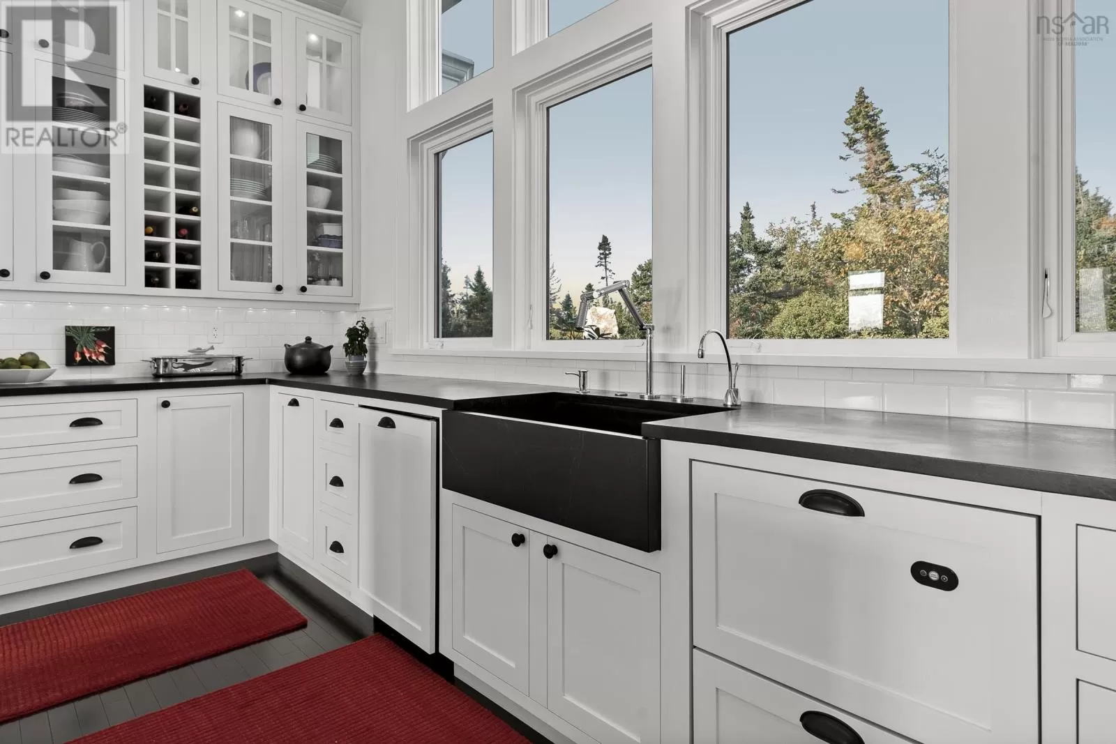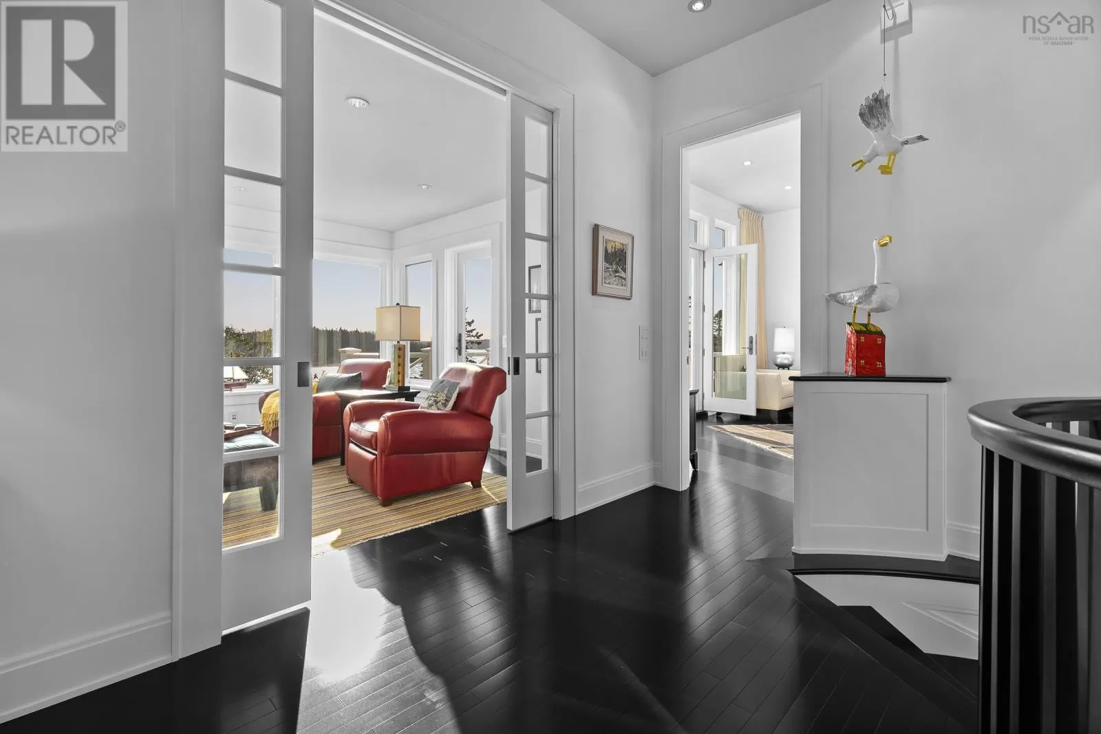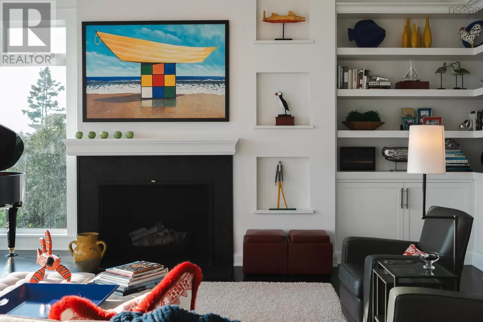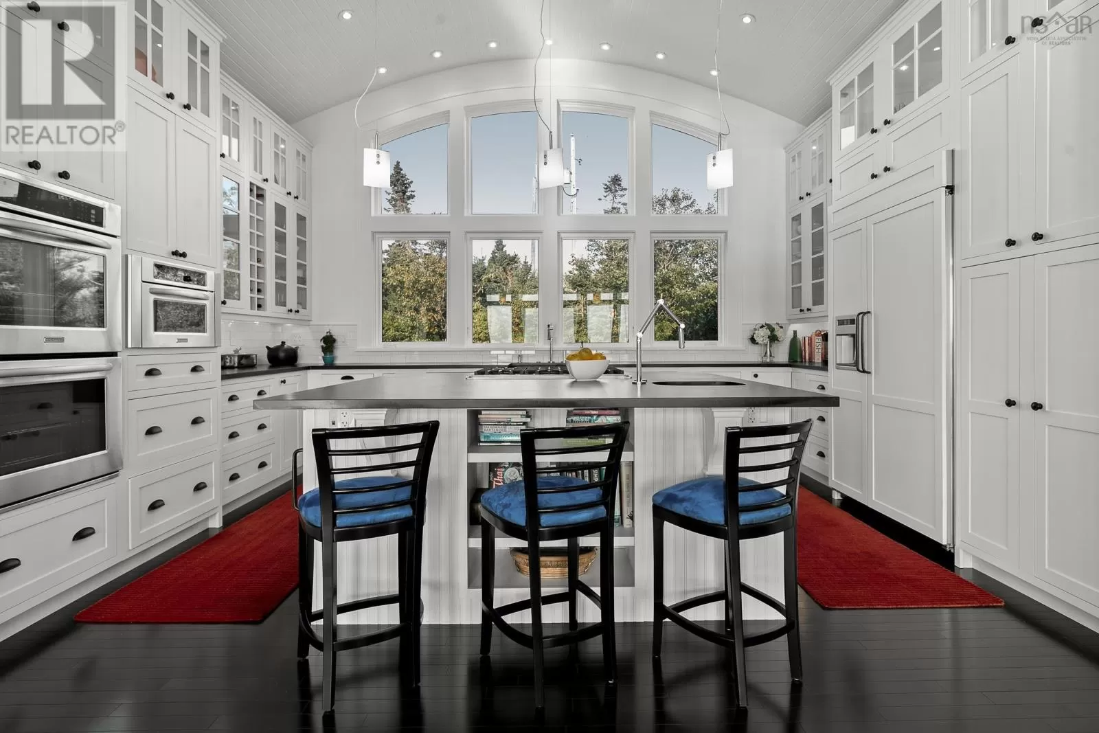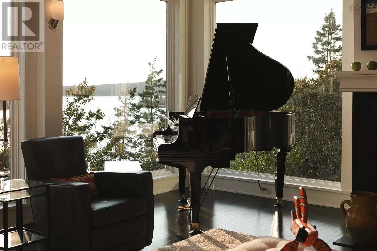 Highway 329 to Northwest Cove, to The Pointe on the Aspotogan Peninsula. Discover this jaw-dropping and meticulously designed South Shore oceanfront oasis! Renowned architect Michael Grunsky created this magnificent one-of-a-kind residence for those seeking an extraordinary lifestyle. Nestled on 12+ acres and 656' of shoreline, this property boasts striking 180 degree southwestern views of bold ocean vistas, rocky coastline, uninhabited islands, inlets and stunning sunsets over the Atlantic. The main floor was carefully curated to blend perfectly with the outdoors. The great room impresses with floor to ceiling windows that seamlessly flow to the light filled dining room and spacious chef's kitchen. Next to a charming sitting room with wood burning fireplace, the spectacular primary suite, with a luxurious ensuite and large walk-in closet, opens to a private waterfront deck, enabling spacious one level living. The great room and the dining room both open to an awe-inspiring ocean view deck and large stone patio featuring an exterior fireplace, ideal for entertaining. The garden level includes a media room (possible bunk room) potential wine or hobby room, full bath, three oceanfront guest bedrooms, (one currently used as a Study), one with an elegant ensuite, and a tremendous amount of storage space. Filled with custom features, no detail was overlooked including 4 wood burning fireplaces, high ceilings, extensive built-ins, exquisite stone and millwork and walls of windows in all the waterfront rooms. This home is located at The Pointe, a private enclave of fine custom-built homes featuring 25 acres of common land and coastal trails for hiking. Perfectly nestled on the South Shore between Chester and Hubbards and 5 minutes from Bayswater Beach, the area offers seasonal farmers' markets, Yacht Club, Golf Club, full-service marinas, Art Centre, Playhouse, quaint shops, cafes and more. Only 40 minutes from Halifax and an hour from Stanfield International Airport. This property is exempt from the Federal Ban on Foreign Buyers. (id:27476)
