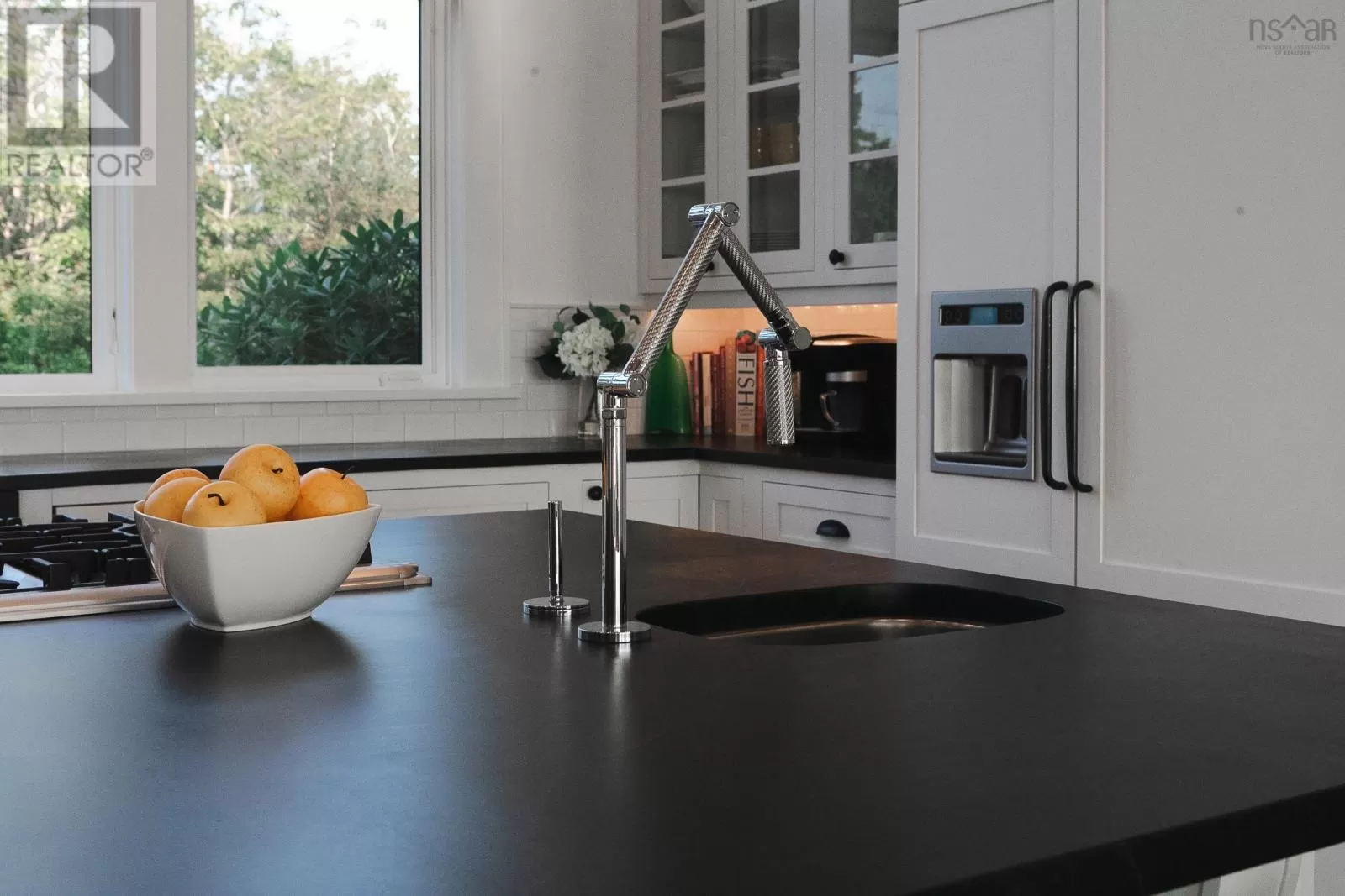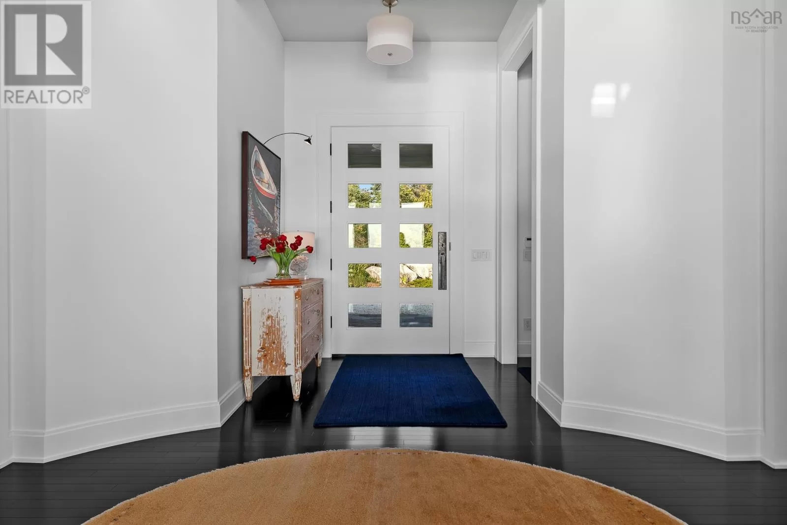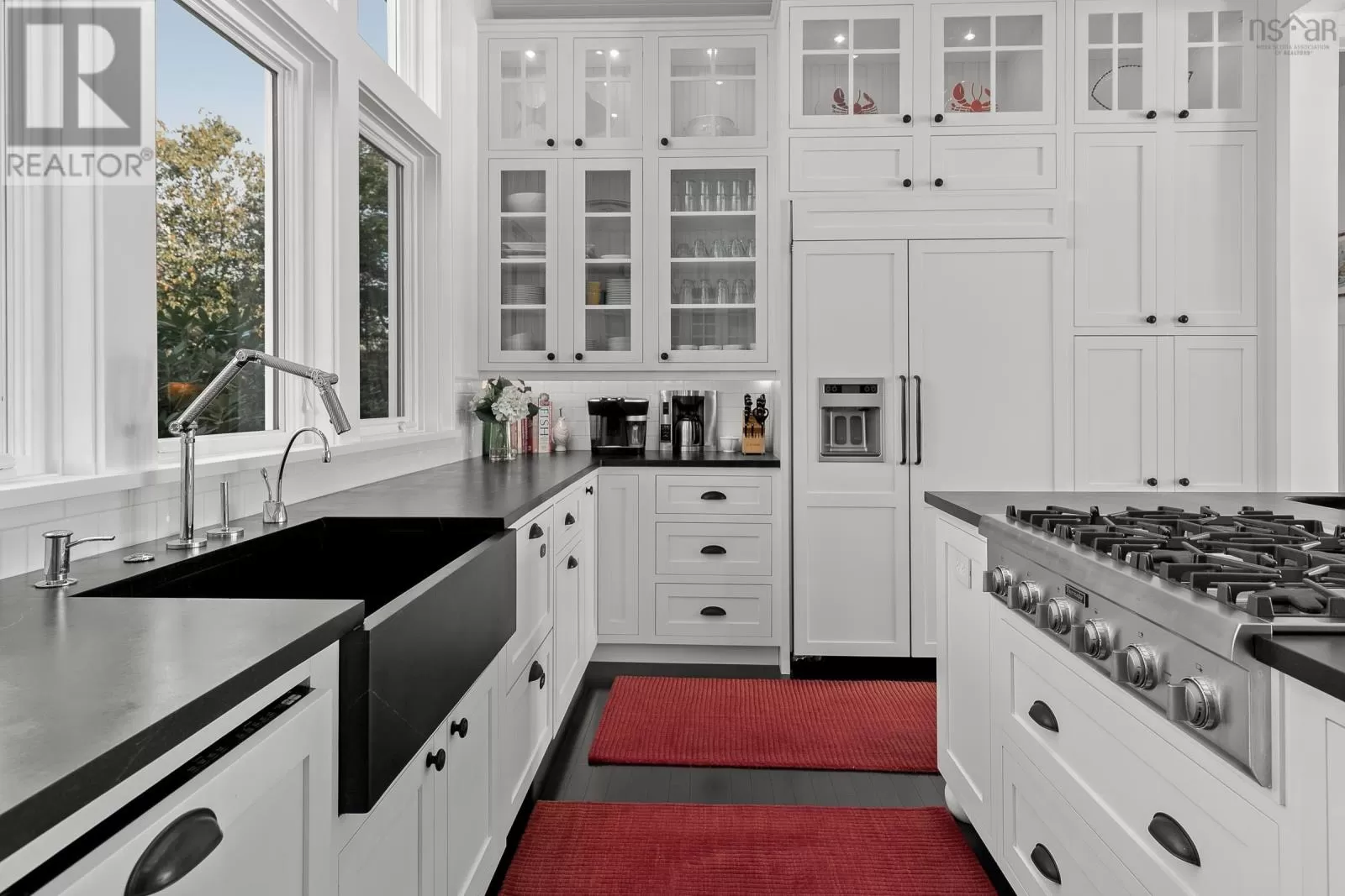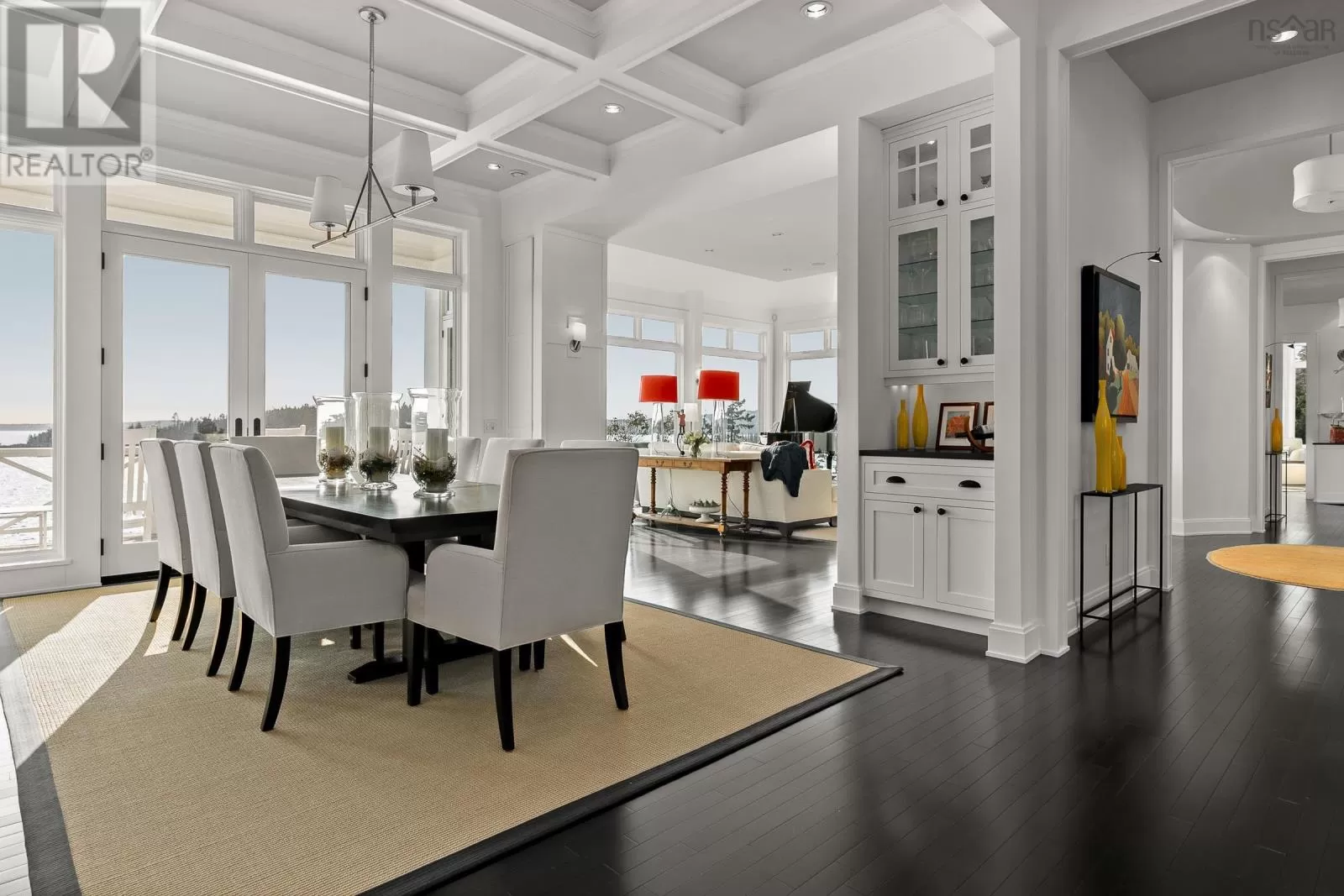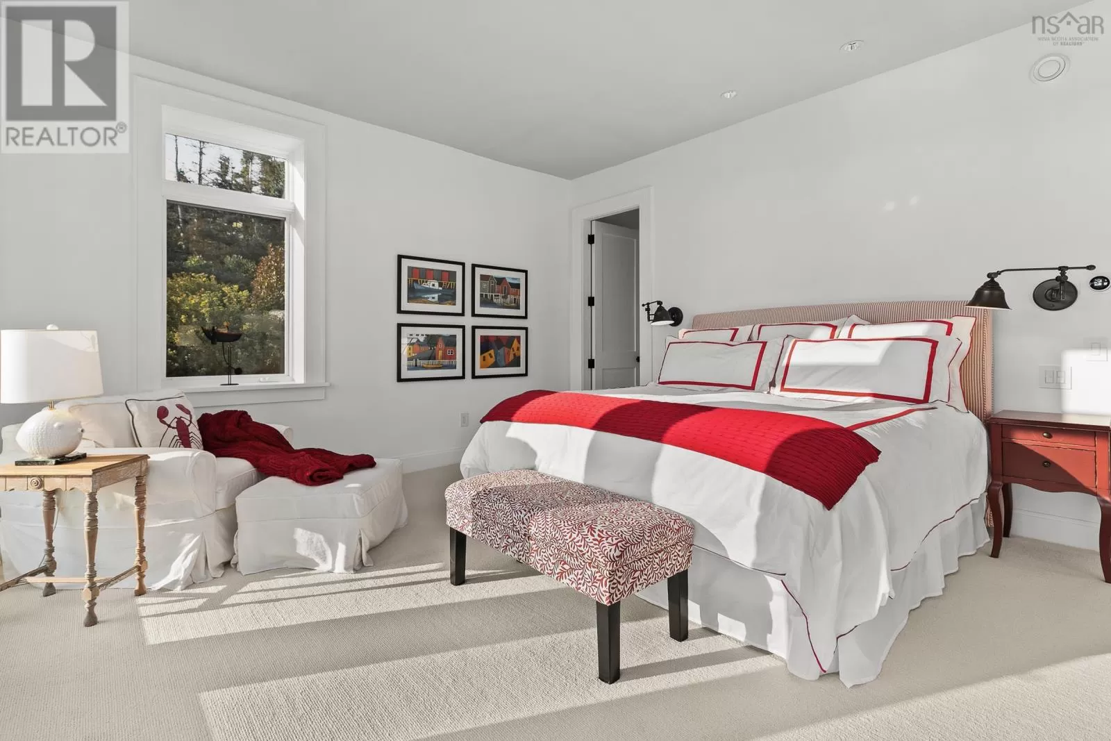 Highway 329 to Northwest Cove, to The Pointe on the Aspotogan Peninsula. Discover this jaw-dropping and meticulously designed South Shore oceanfront oasis! Renowned architect Michael Grunsky created this magnificent one-of-a-kind residence for those seeking an extraordinary lifestyle. Nestled on 12+ acres and 656' of shoreline, this property boasts striking 180 degree southwestern views of bold ocean vistas, rocky coastline, uninhabited islands, inlets and stunning sunsets over the Atlantic. The main floor was carefully curated to blend perfectly with the outdoors. The great room impresses with floor to ceiling windows that seamlessly flow to the light filled dining room and spacious chef's kitchen. Next to a charming sitting room with wood burning fireplace, the spectacular primary suite, with a luxurious ensuite and large walk-in closet, opens to a private waterfront deck, enabling spacious one level living. The great room and the dining room both open to an awe-inspiring ocean view deck and large stone patio featuring an exterior fireplace, ideal for entertaining. The garden level includes a media room (possible bunk room) potential wine or hobby room, full bath, three oceanfront guest bedrooms, (one currently used as a Study), one with an elegant ensuite, and a tremendous amount of storage space. Filled with custom features, no detail was overlooked including 4 wood burning fireplaces, high ceilings, extensive built-ins, exquisite stone and millwork and walls of windows in all the waterfront rooms. This home is located at The Pointe, a private enclave of fine custom-built homes featuring 25 acres of common land and coastal trails for hiking. Perfectly nestled on the South Shore between Chester and Hubbards and 5 minutes from Bayswater Beach, the area offers seasonal farmers' markets, Yacht Club, Golf Club, full-service marinas, Art Centre, Playhouse, quaint shops, cafes and more. Only 40 minutes from Halifax and an hour from Stanfield International Airport. This property is exempt from the Federal Ban on Foreign Buyers. (id:27476)