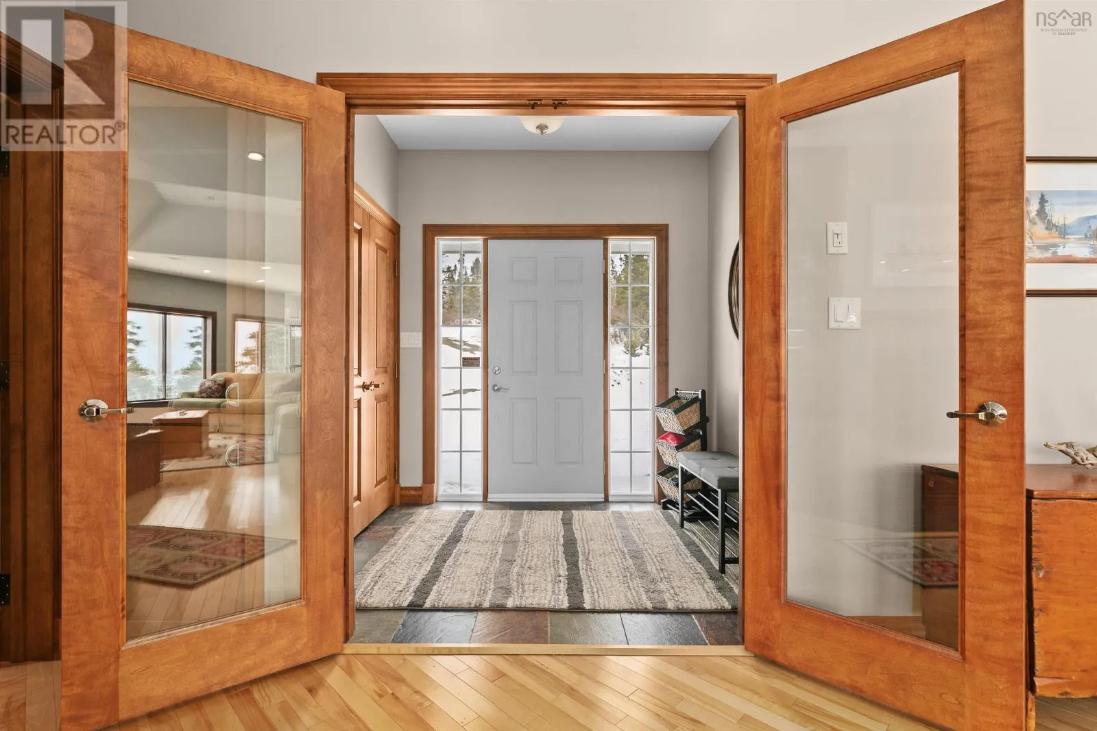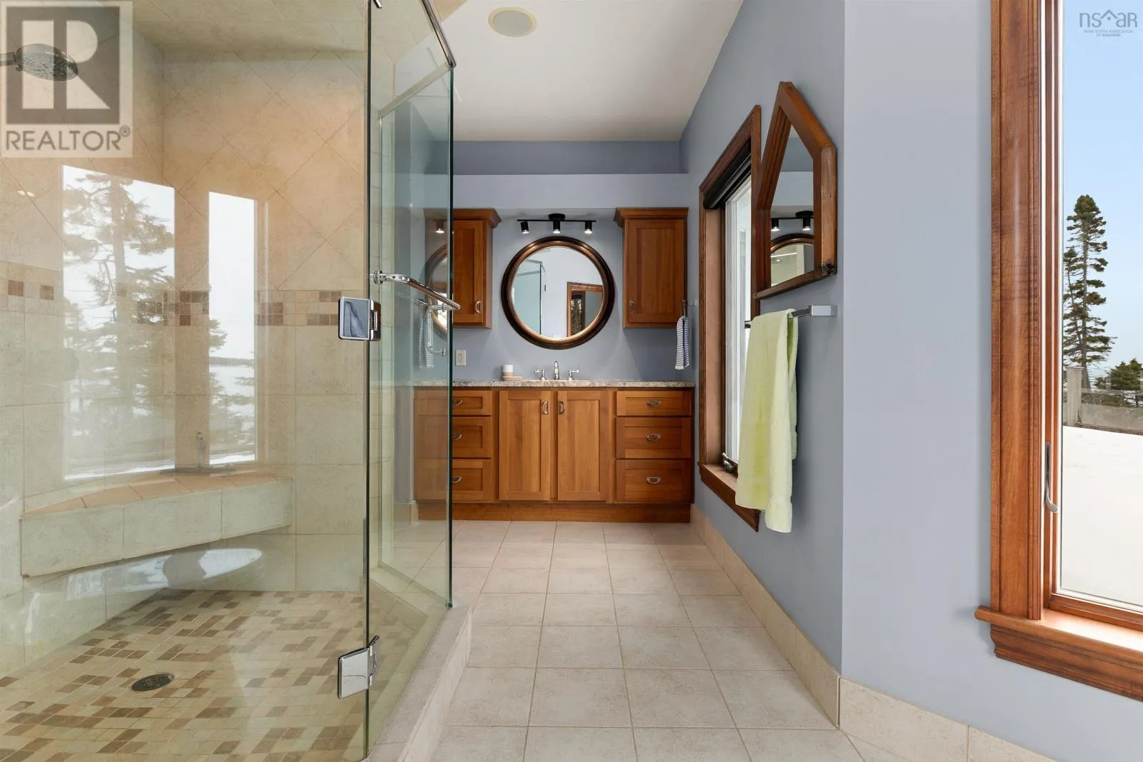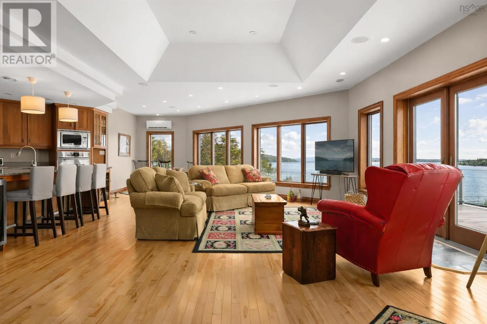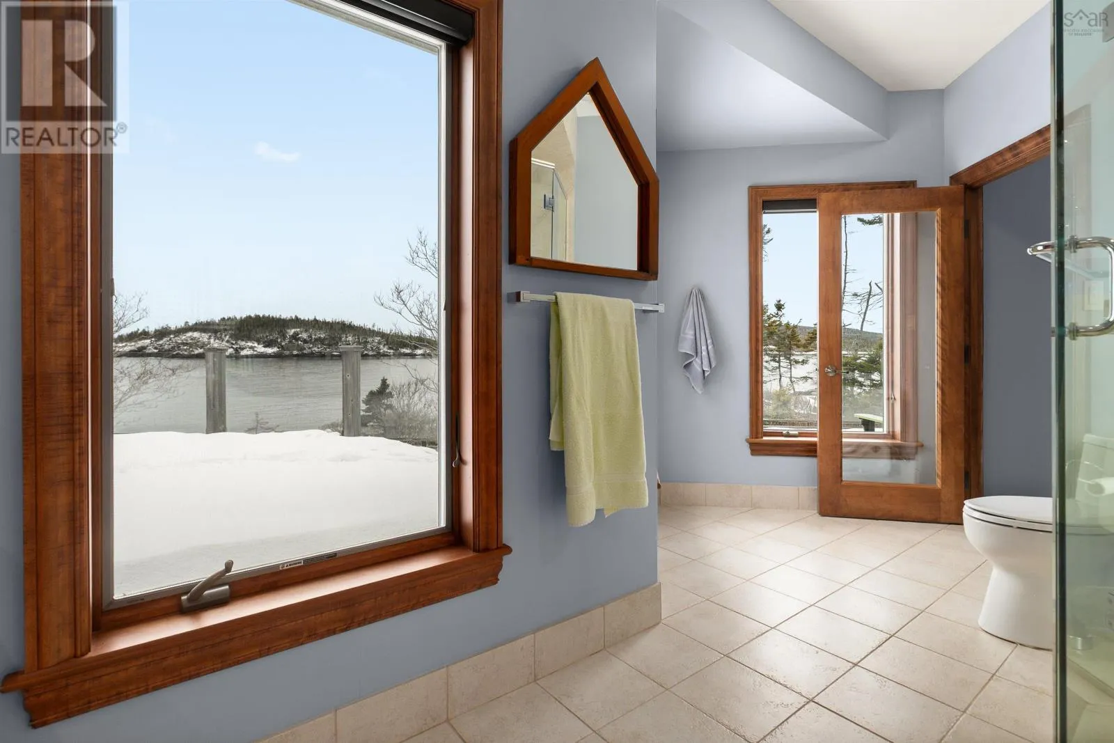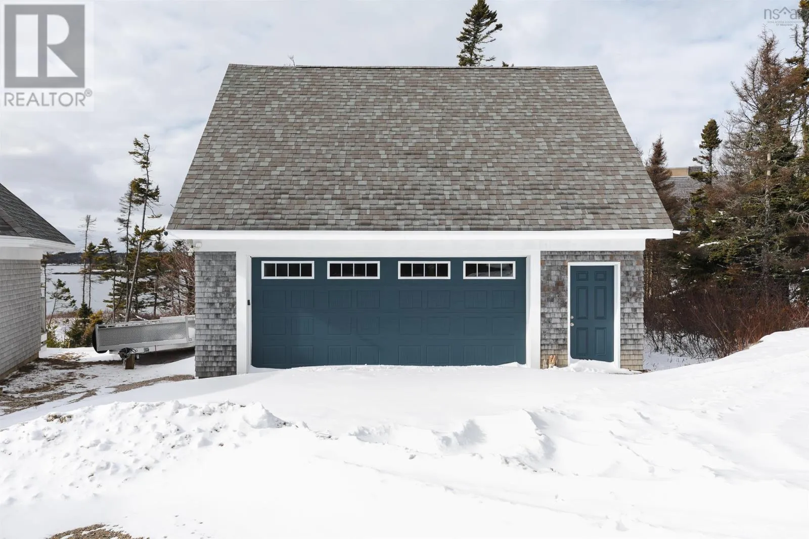 Highway 103 to Exit 6 to Highway 3. Left on Highway 3. Right on Highway 329. Left on Coleman Cove Road. Left on Ocean Gate Drive. THE POINTE AT ASPOTOGAN LIFESTYLE. An oceanfront oasis on 3.46 acres with 189' of direct oceanfront. The custom built home is suffused with natural light, firmly anchored and sited to take advantage of the magnificent westerly sunset and southwesterly ocean views of uninhabited islands and wide-open ocean vistas. The main living area with wraparound floor to ceiling ocean view windows has double garden doors to a wraparound seaside deck. Breathe in the ocean breezes which can cool the hottest days of summer, swim in the crystal waters, or take in the spectacular scenery that constantly paints a fresh canvas with the mood of the ocean. Seals basking in the sun on Seal Island, a chorus of songbirds and the sound of the waves. Natural landscaping leads to large basalt rocks protecting the shoreline where one has easy access to slide a kayak into the water or go for a swim. Complete one level living if one desires, the house includes an upper level great room for additional guests, gym, or studio. Custom features include solid maple interior doors and trim, hardwood floors on both levels, gourmet kitchen with 12' island with granite counter, induction stove, cherry hardwood cabinetry, in-floor hot water heating, vaulted tray ceiling, sound system and wood burning fireplace flanked by custom shelving. A main floor primary bedroom suite with spacious walk in closet, has water views everywhere, from the custom glass shower to the bed. A den/study, guest bathroom and laundry complete the main floor. A detached double garage with loft with ocean view could be finished into additional living or work space. The Pointe is a private seaside development 40 minutes from Halifax which includes 25 acres of common lands with trails through flora and fauna along the ocean plus a woodland trail to a community dock on SW Cove Lake. Whether looking for a seasonal or year round seaside home, this is one not to be missed. Only 15 minutes from Hubbard amenities, 25 minutes from Chester. (id:27476)