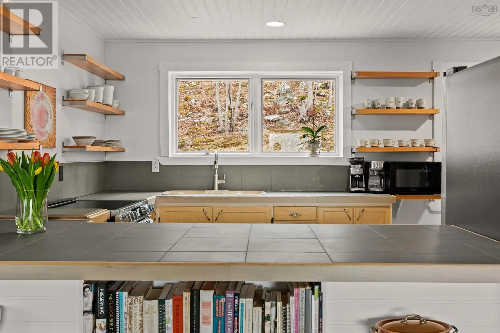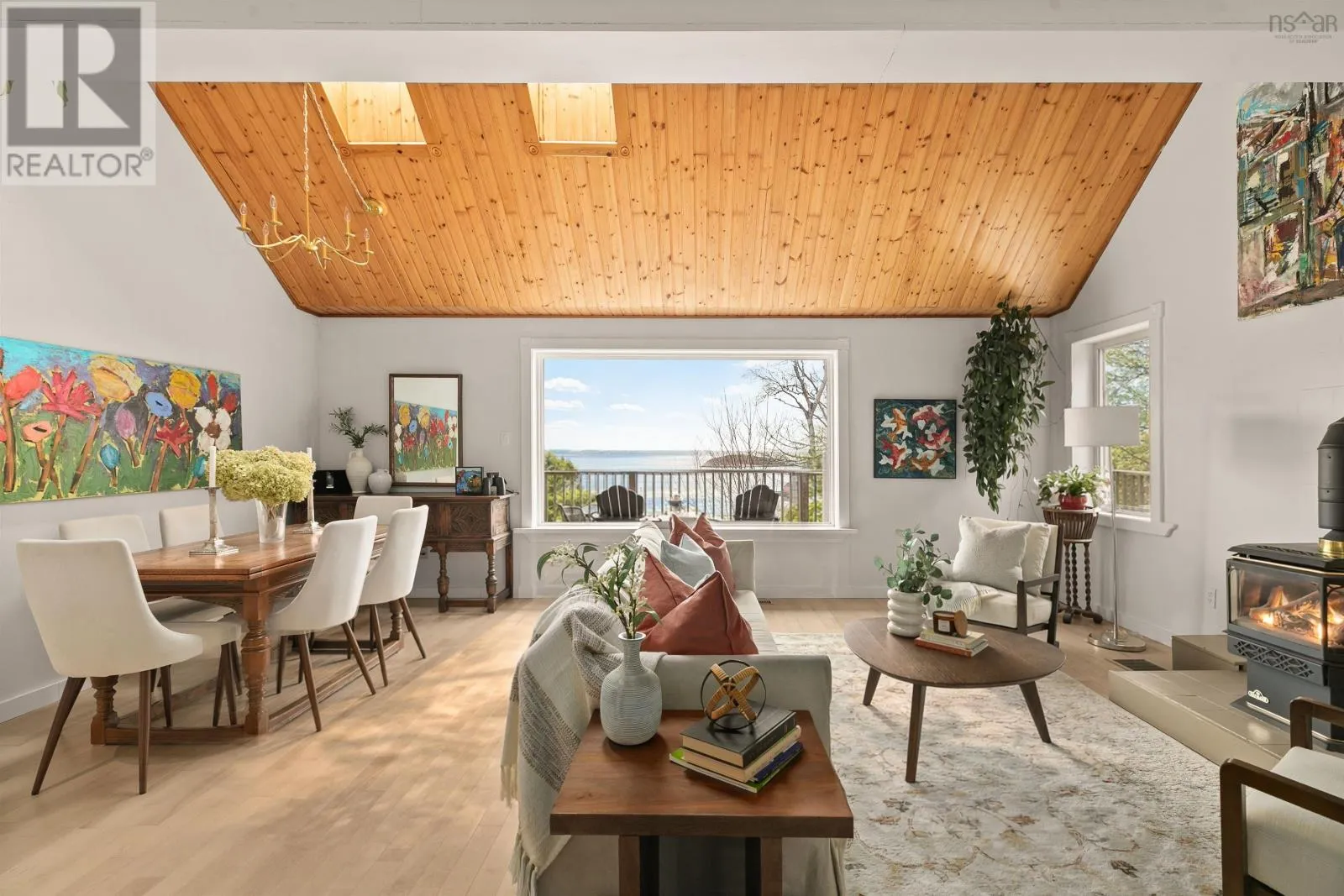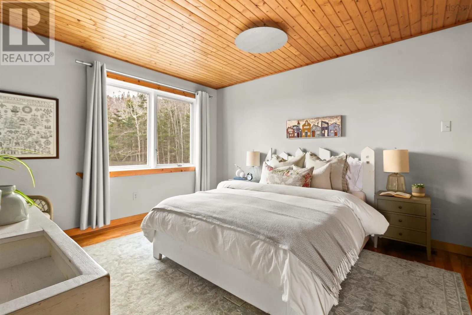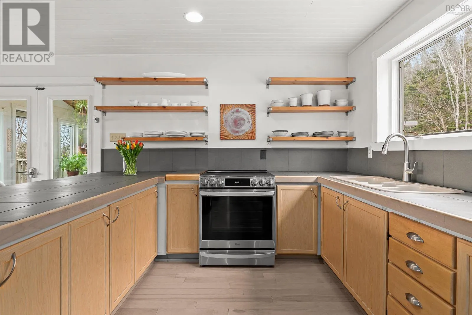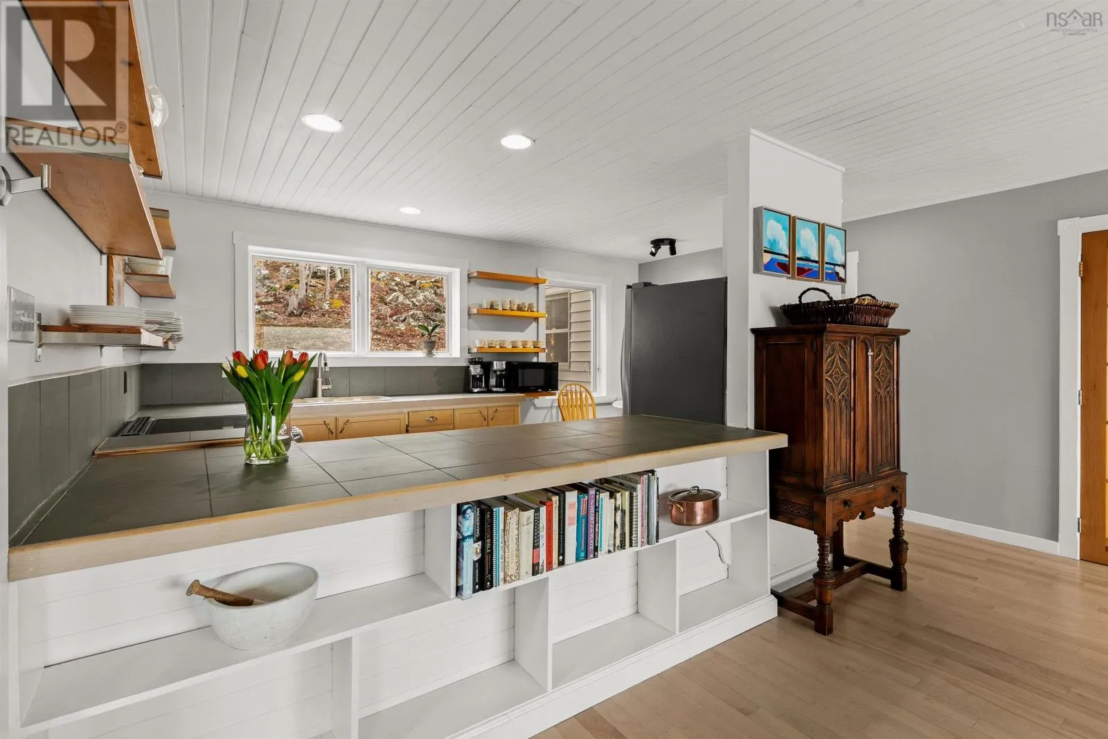 Highway 103 to Exit 6 to Highway 3. Right on Highway 329 to Northwest Cove. Property on right. Perched high above the coastline in the charming coastal community of Northwest Cove, this solid, contemporary home offers sweeping ocean views, exceptional privacy, with over 40 acres of serene, treed landscape & just 45 minutes from Halifax. Looking east over a picturesque working fishing village, the setting is truly Maritime, with ever-changing views, passing boats, & an abundance of wildlife. Thoughtfully designed across three finished levels, the home blends warmth & character with modern updates. The great room is the true focal point, featuring vaulted ceilings with skylights, propane stove, & an expansive picture window framing breathtaking views of the Cove. Natural light fills the open-concept living & dining areas, creating a bright, inviting space ideal for everyday living & entertaining. The updated kitchen offers generous workspace, open shelving, & a seamless connection to the main living area. This level includes a spacious primary bedroom with ensuite & a sunroom filled with natural light. A large wraparound deck offers the perfect setting to relax & take in the elevated coastal views. Upstairs, a striking open pedway overlooks the main living space, with vaulted pine ceilings, exposed beams, & skylights enhancing the homes airy feel. This level features two generous bedrooms, & a full bath. The walkout lower level adds functionality with a mudroom entry, rec room with wood-burning fireplace, laundry, sauna, & a 3-piece bath. A beautifully developed 2km trail winds through the property to the back 40, leading to a peaceful small lake, an ideal setting for quiet walks, nature exploration, or simply unplugging. Garden beds, natural landscaping, & the surrounding forest enhance the propertys rustic charm & timeless Nova Scotia coastal feel. Lovingly maintained & thoughtfully enjoyed, this is a home where pride of ownership is evident throughout. Rare opportunity to own a private coastal retreat offering space, comfort, & an exceptional lif (id:27476)