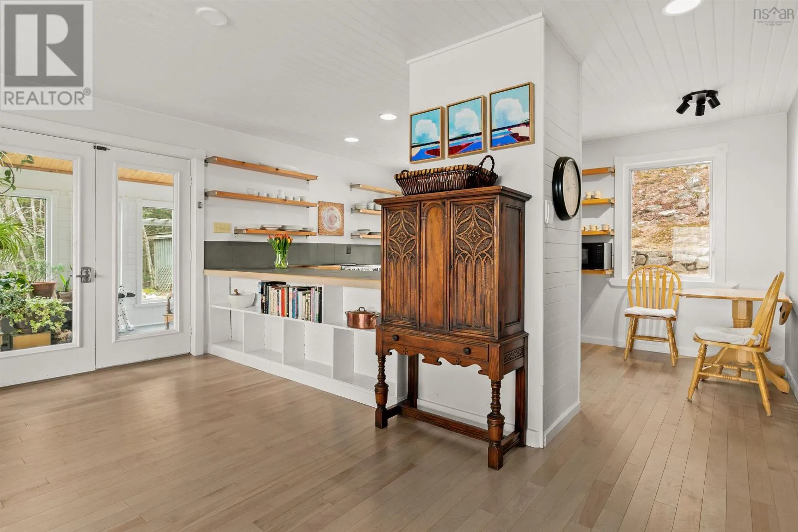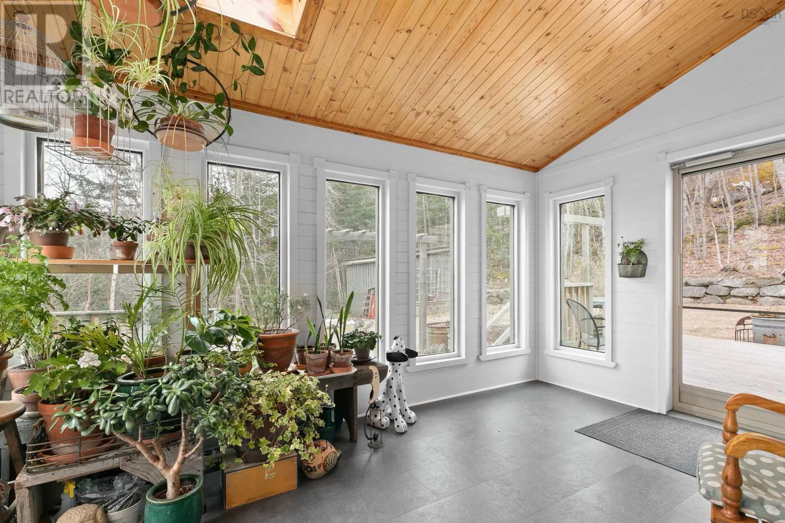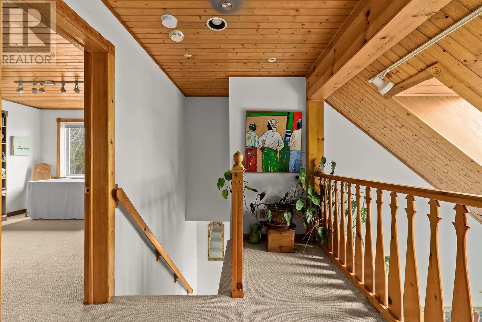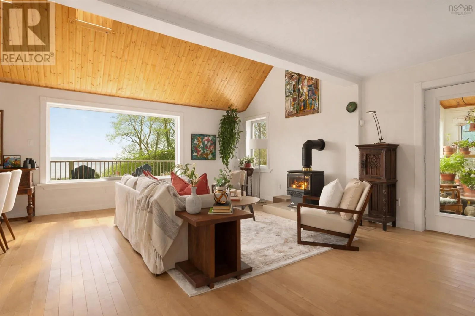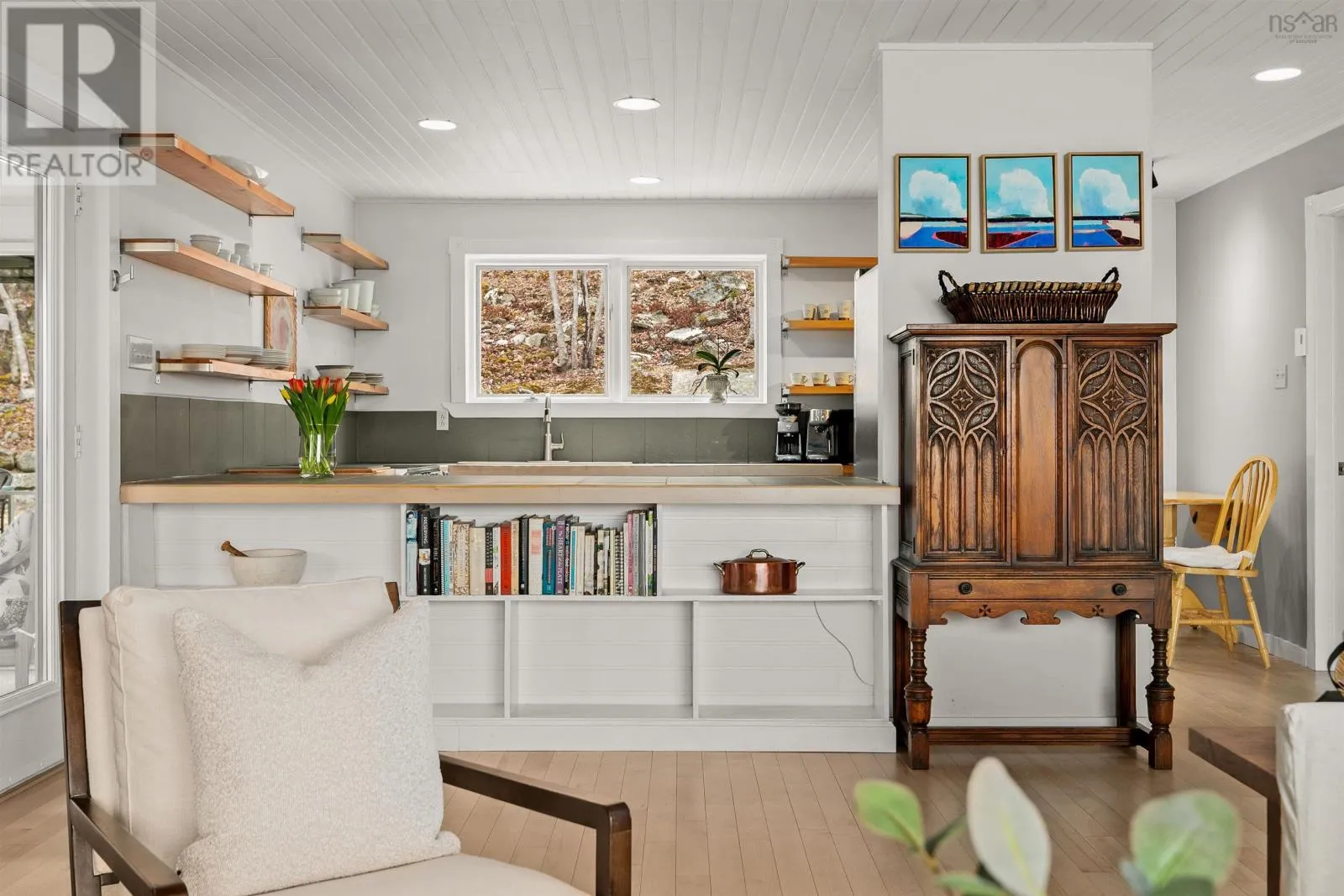 Highway 103 to Exit 6 to Highway 3. Right on Highway 329 to Northwest Cove. Property on right. Perched high above the coastline in the charming coastal community of Northwest Cove, this solid, contemporary home offers sweeping ocean views, exceptional privacy, with over 40 acres of serene, treed landscape & just 45 minutes from Halifax. Looking east over a picturesque working fishing village, the setting is truly Maritime, with ever-changing views, passing boats, & an abundance of wildlife. Thoughtfully designed across three finished levels, the home blends warmth & character with modern updates. The great room is the true focal point, featuring vaulted ceilings with skylights, propane stove, & an expansive picture window framing breathtaking views of the Cove. Natural light fills the open-concept living & dining areas, creating a bright, inviting space ideal for everyday living & entertaining. The updated kitchen offers generous workspace, open shelving, & a seamless connection to the main living area. This level includes a spacious primary bedroom with ensuite & a sunroom filled with natural light. A large wraparound deck offers the perfect setting to relax & take in the elevated coastal views. Upstairs, a striking open pedway overlooks the main living space, with vaulted pine ceilings, exposed beams, & skylights enhancing the homes airy feel. This level features two generous bedrooms, & a full bath. The walkout lower level adds functionality with a mudroom entry, rec room with wood-burning fireplace, laundry, sauna, & a 3-piece bath. A beautifully developed 2km trail winds through the property to the back 40, leading to a peaceful small lake, an ideal setting for quiet walks, nature exploration, or simply unplugging. Garden beds, natural landscaping, & the surrounding forest enhance the propertys rustic charm & timeless Nova Scotia coastal feel. Lovingly maintained & thoughtfully enjoyed, this is a home where pride of ownership is evident throughout. Rare opportunity to own a private coastal retreat offering space, comfort, & an exceptional lif (id:27476)