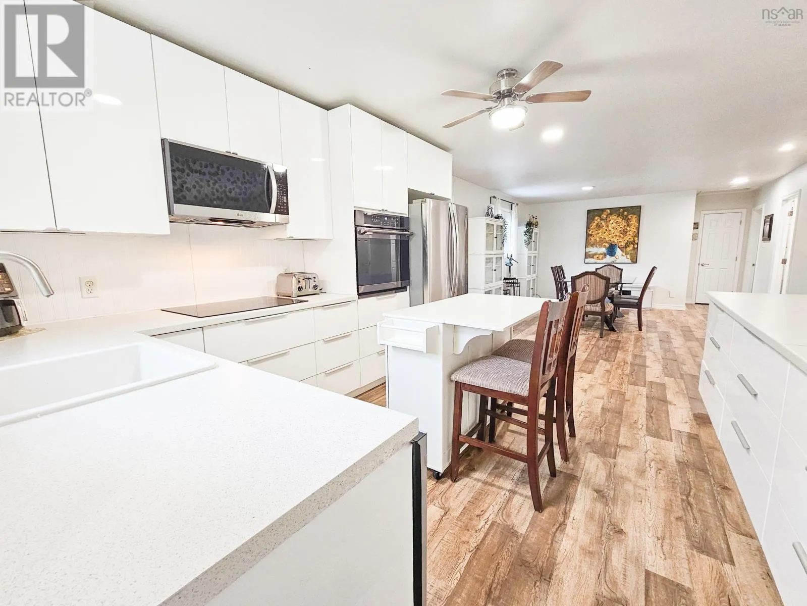 From NS-102 N take Exit 11 at Truro/Tatamagouche, then follow NS-311 N/Bible Hill to Nuttby. Tucked into a peaceful setting with open views of the hills, this bright and welcoming home offers privacy, space, and practical upgrades throughout. The updated kitchen features generous storage, a newer induction cooktop, wall oven, and brand-new dishwasher, and flows seamlessly into the dining area with direct access to the back patioperfect for summer barbecues with no neighbours behind. A convenient mudroom with closets provides a great spot to hang jackets and leave boots. Downstairs, the bedrooms are bright with large windows, and the primary bedroom area includes a walk-in closet and adjoining denideal for a home office or creative space. New custom blinds have been installed throughout. Comfort and reliability are covered with two heat pumps, durable metal roof, and generator panel. The spacious wired garage features a new remote-control door, EV charger, and additional upper-level space perfect for a workshop or hobbies. Outside, enjoy a partially fenced yard with plenty of room for gardening, a peaceful backyard pond, and added safety for pets. A ramp at the back of the home provides easier access. A great opportunity to enjoy privacy, nature, and functional living in one inviting property. (id:27476)