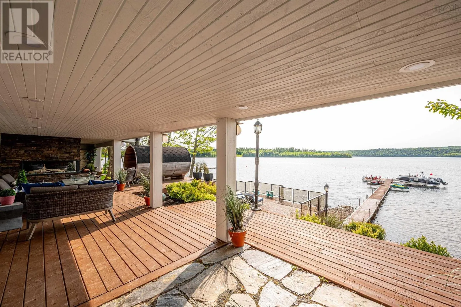 Take Exit 7 off Hwy 102 at Enfield. Turn left at the end of the off ram.. approx 2 kms take a right on Frenchman Road.. cross thetracks and keep right on Parkview. Wow... this home has it all, Waterfrontage on Grand Lake This stunning home offers luxury living at your very own private resortyour perfect escape awaits. Beautifully landscaped front and back and wrapped in timeless Cape Cod wood siding, the property is designed for relaxation, entertainment, and living life at its best. Step into the custom-built chefs kitchen, complete with induction and gas cooktops, industrial sized fridge, double ovens, warming drawers plus a double BBQideal for hosting and cooking with a view. The kitchen flows seamlessly onto a spacious upper deck with stunning views of the lake as well as the expansive lower deck and deep water dock. Beyond the elegant dining area lies the family and living space, filled with natural light pouring in from the wall to wall lakefront windows. Just off this central living area, the custom-designed office offers built-ins and a full wall of windowsyet another space with incredible lake views, creating a peaceful and inspiring place to work. Outdoor living is next level with two expansive decks, a new dock with deep anchorage. Unwind in the cedar-lined, electric-powered sauna or soak in the hot tub just off the main floor bedroom, or sip wine from your custom wine storage roomall while taking in the spectacular views and sunsets. This four-bedroom home features two bedrooms upstairs with private ensuites, including the spacious primary suite, which features a walk-in closet and a luxurious bath. There is also a beautiful oversized bedroom on the main level as well as yet another bedroom on the lower level. The home is wired with a high end back-up generator, ensuring you will always have power year-round as well as multiple fireplaces both indoors and out. And there is more..so much more! To name a few, a detatched garage with designer living space above, a special family or entertaining room built on the deck with a cozy woodstove and wrap around windows. i'm out of space, you have to come and (id:27476)