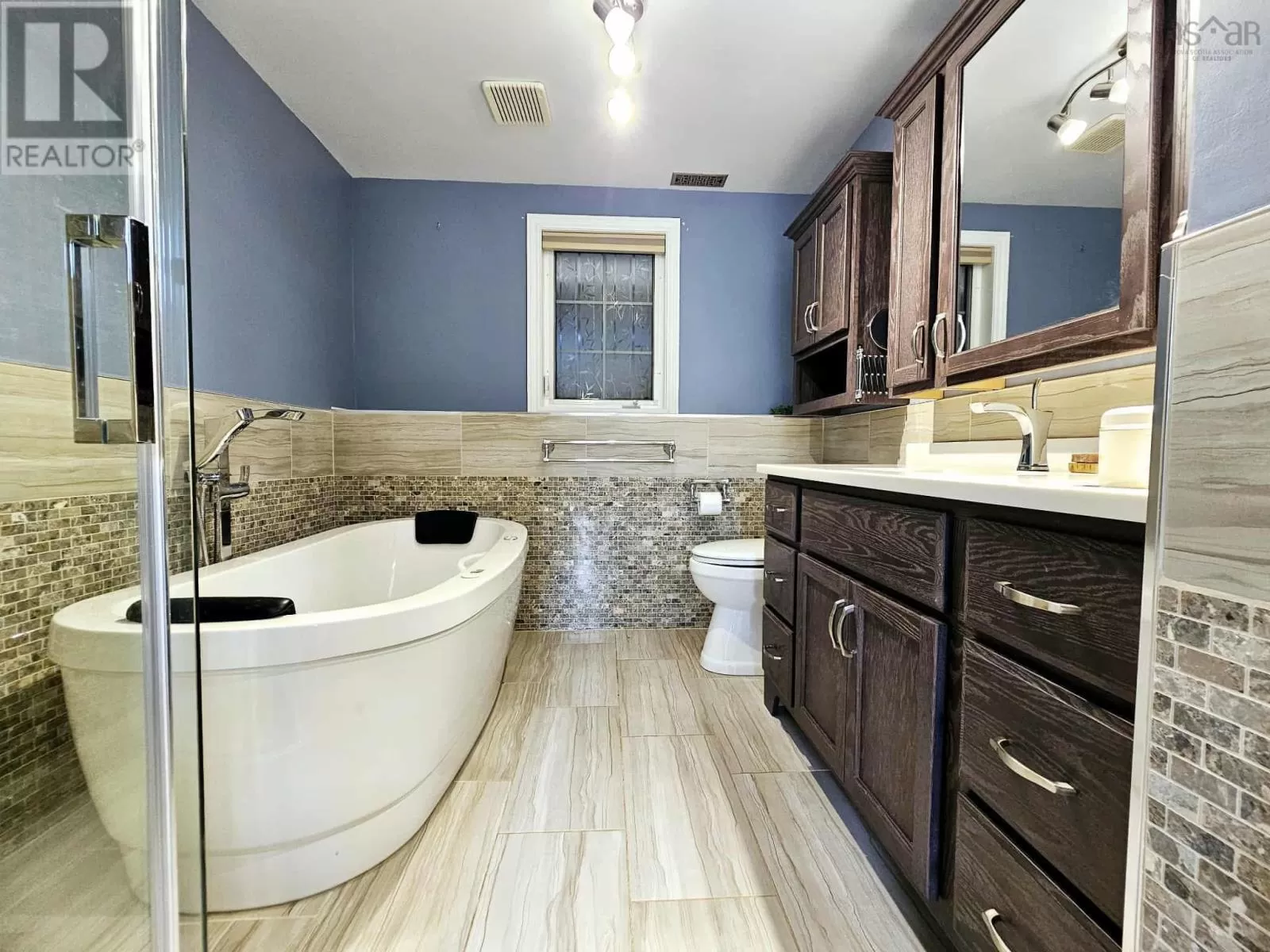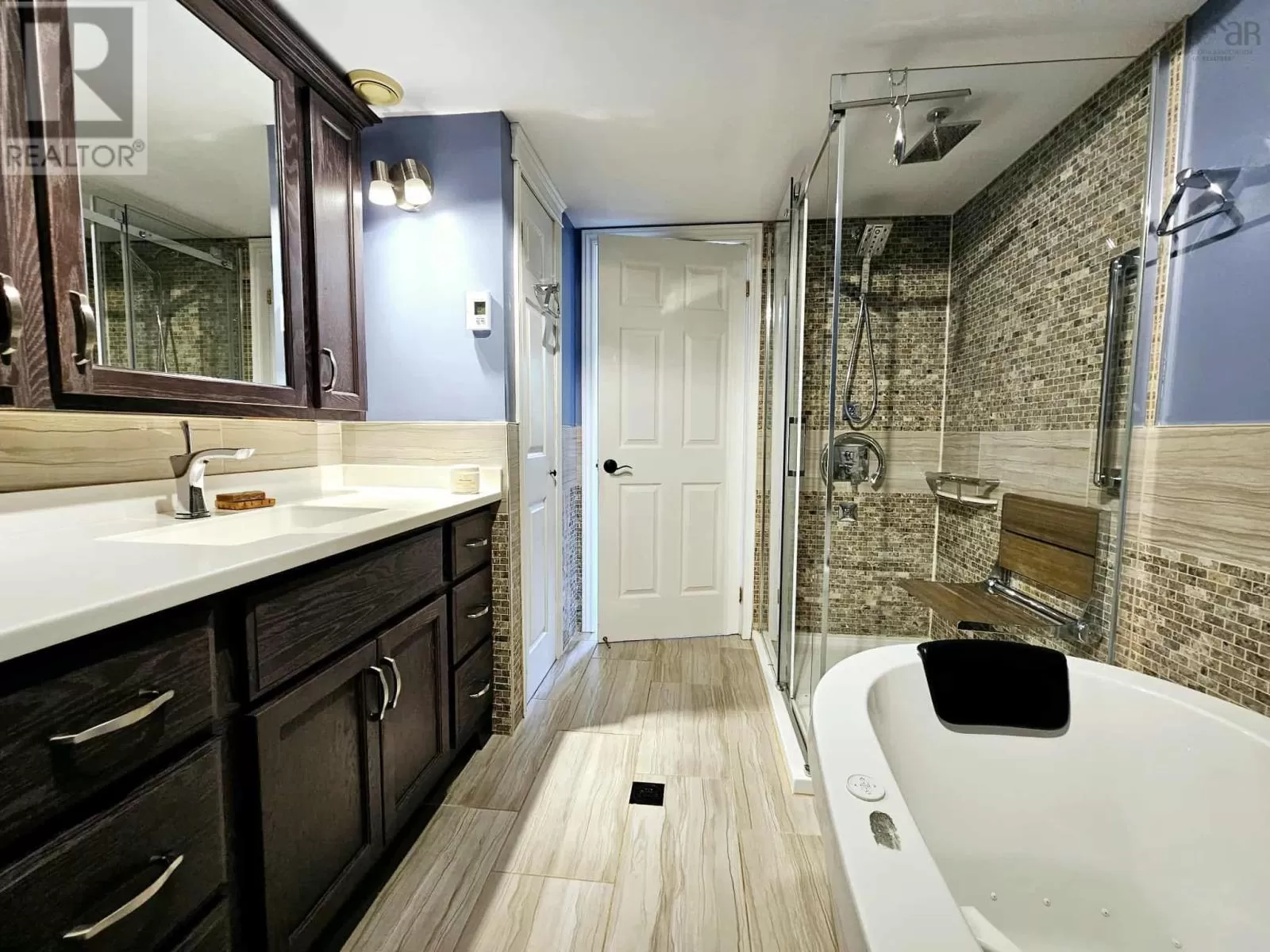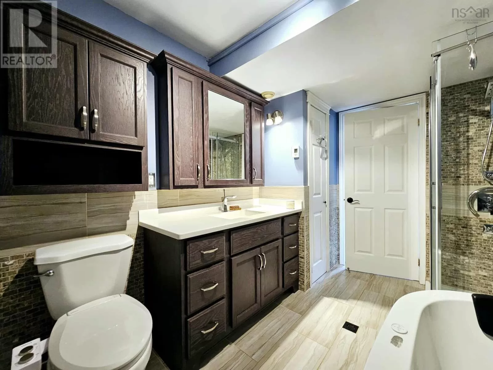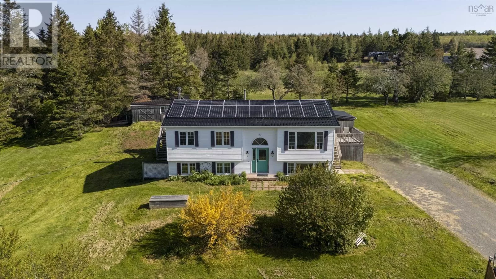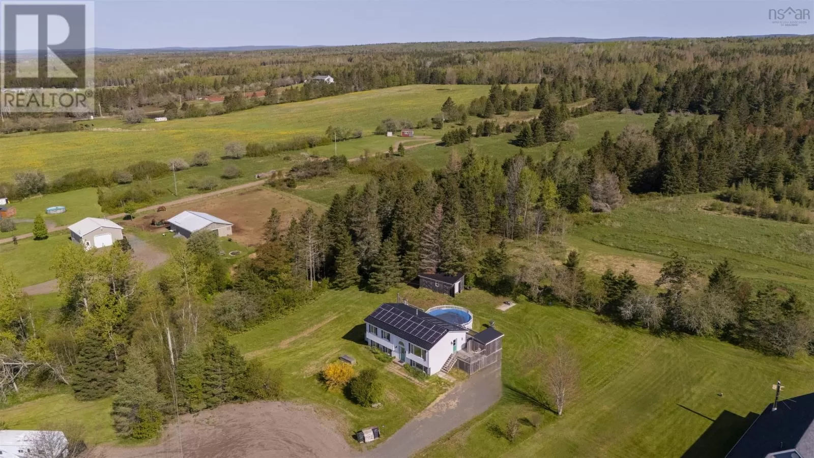 Onslow Mountain Road to Lornada Drive to Apple Drive. This lovely home offers an unbeatable location at the end of a quiet cul-de-sac, just 10 minutes from Truro, Debert, and Highway access. With four spacious bedrooms and two modern bathrooms, this property is perfect for families or those who appreciate extra space. The large recreational room features a walk-out, providing easy access to the stunning outdoor area. Enjoy summer days by the pool with a sizable entertaining deck, perfect for gatherings with family and friends. Set on a generous 3/4-acre lot, there's plenty of room for the kids to play and explore. The 12x24 shed is a great addition for car enthusiasts or hobbyists, providing ample space for tinkering. Recent updates include a new septic tank and field installed in 2018, a pressure tank and pump replaced in 2022, solar panels added in 2019 for energy efficiency, and a metal roof installed in 2016 for durability. The lower bathroom has been beautifully renovated, featuring a luxurious soaker tub, heated toilet and floor, as well as a modern glass walk-in shower.This property combines comfort, functionality, and a prime location, making it a must-see! (id:27476)