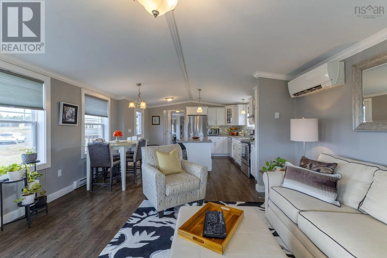 Crowes Mill Road to Sawmill Court Welcome to 39 Sawmill Court. Just 10 minutes from town, this exceptional 10-year-old mini home sits on over half an acre and shows like new. The bright, open-concept main living area features a gorgeous white kitchen with stainless steel appliances, a large centre island, and beautiful countertops. Theres plenty of room for dining, and the sun-filled living room easily accommodates larger furniture. From here, a garden door leads to the covered deck and concrete patio perfect for morning coffee or evening unwinds watching beautiful sunsets. The layout offers great function and flow: the spacious primary bedroom includes a walk-in closet, and the second bedroom (currently used as a den) is an excellent flex space for guests, office, or hobby room. The spacious full bath is bright and modern. This home is completely carpet-free, offering a low-maintenance, allergy-friendly interior. Theres tons of storage, and the property has been kept in immaculate condition inside and out. Heating is efficient and comfortable with electric heat plus a ductless heat pump for year-round climate control. Furnishings are negotiable. Genex Generator hookup at power pole available. Book your showing today youre going to love it here. (id:27476)