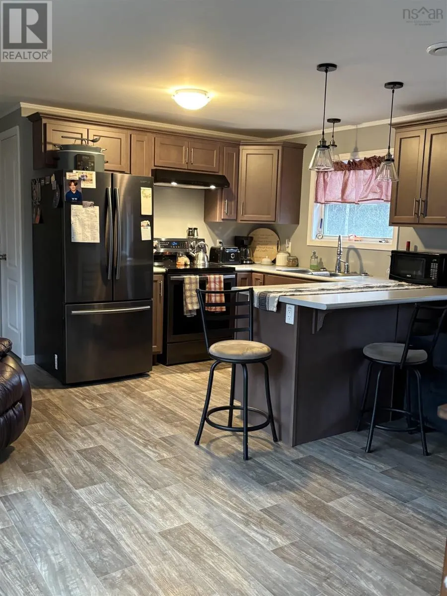 Turn right on to West North River Road, turn left onto Laybolt Road, then left on Onslow Mountain Road. Set on a beautiful 1.8-acre lot, this property offers a serene setting with a babbling brook running along the edge of the land. The immaculate mini home features two bedrooms, a nice size kitchen, that includes a range, refrigerator and dishwasher, a cozy and comfortable living room, a full bathroom, all thoughtfully laid out and move-in ready. A standout feature is the large wired garage with excellent business or hobby potential. It includes a double-car garage, dedicated office space, ample storage, and a workshop, making it ideal for entrepreneurs, tradespeople, or anyone in need of versatile workspace. Additional structures include a large baby barn and a separate shed, providing even more storage and flexibility. This unique property combines peaceful country living with practical functionality and is truly a must-see. (id:27476)