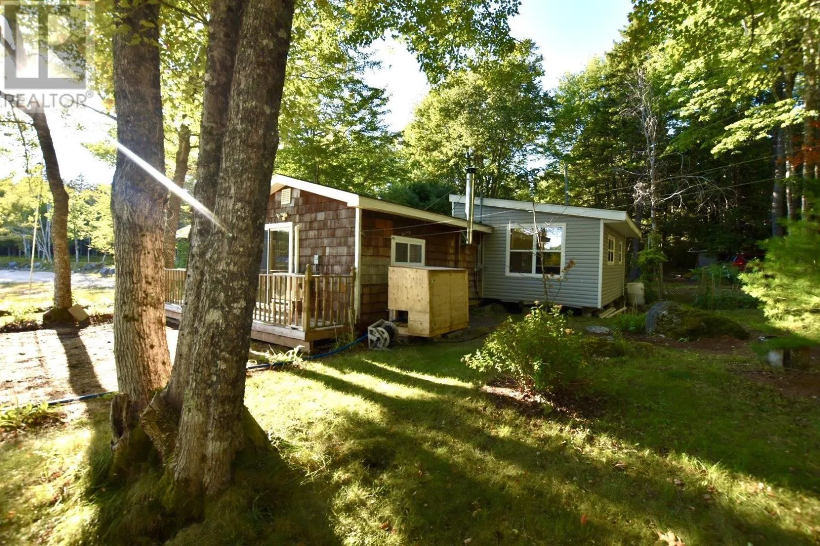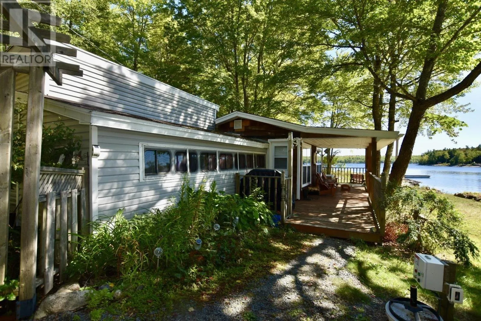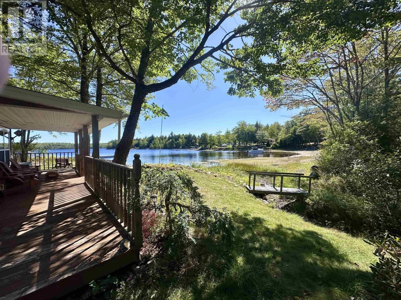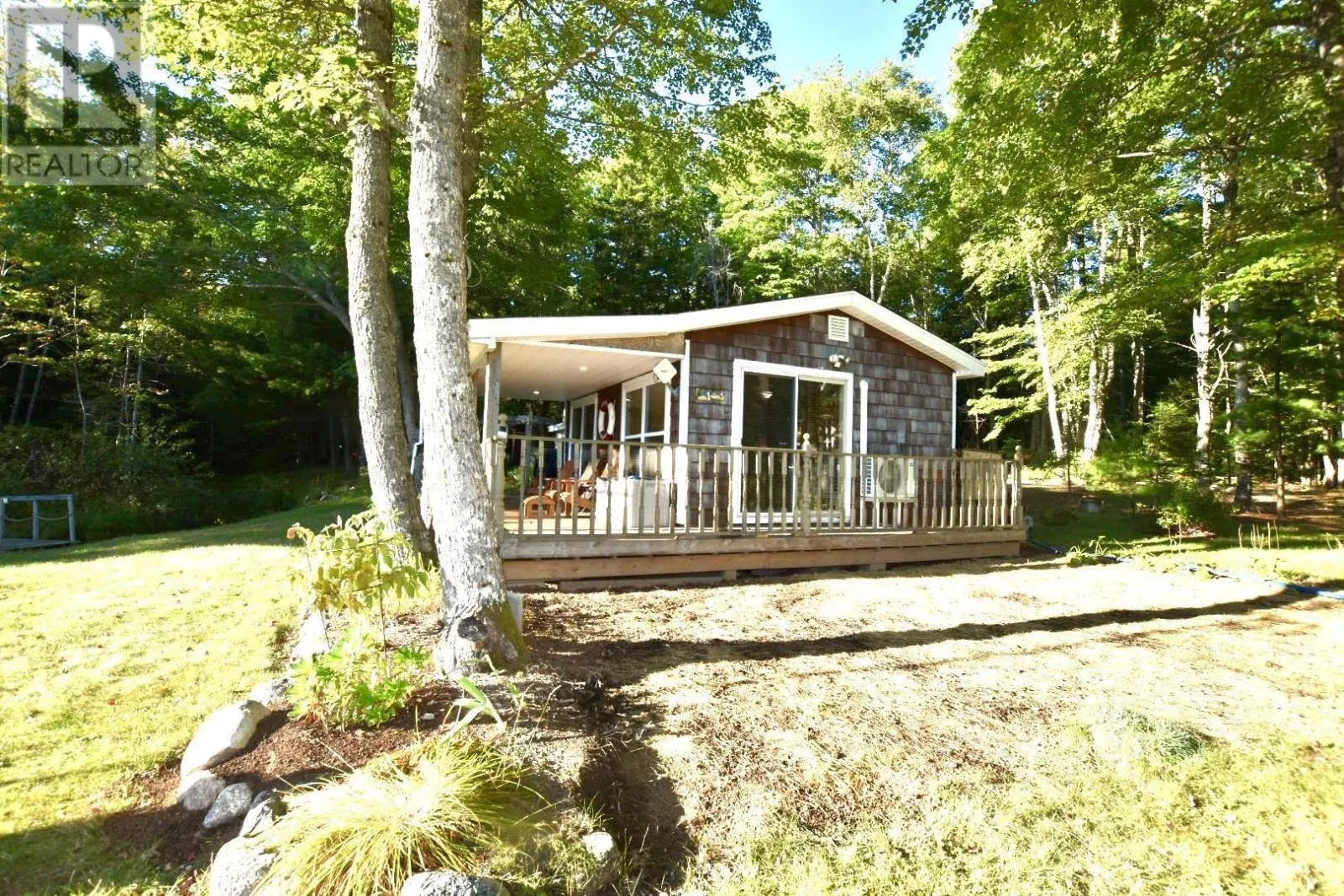 Highway 103 -exit 11,onto Cornwall Rd -slight right onto Newburne Rd-approx 15 kms take right onto Grimms Rd. 1.9 kms to ppty Welcome to your lakeside retreat! This charming 2-bedroom cottage is tucked along the shores of popular Sherbrooke Lake with approx 84 ft of lakefront (plus more frontage on brook) and offering the ideal balance of comfort, relaxation, and outdoor living. Inside enjoy a mix of old & new character, open layout with combined kitchen /dining and living space with patio doors calling you to step outside and enjoy the serene water views while sheltered from the hot sun or rain under the covered deck. The landscaped grounds create a peaceful setting, and include a shed and wood shelter for all your storage needs. Best of all, its move-in ready, complete with full bathroom, newer septic (2015) , duckless heat pump, fully furnished including queen-size bed in primary bedroom, and built-in double bed, and convenient built-in bunks in bedroom 2, making it easy to start enjoying lakeside living now. (id:27476)