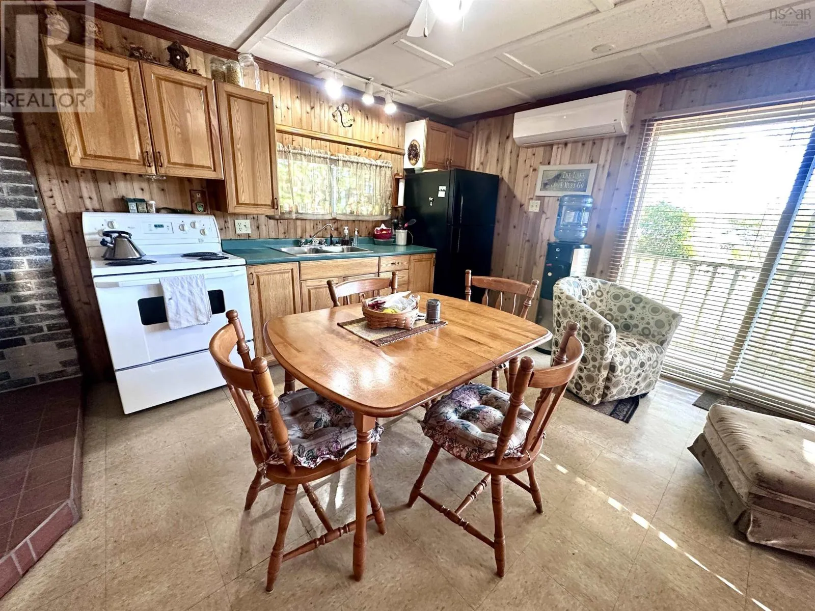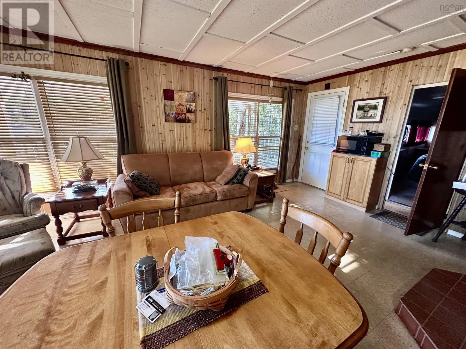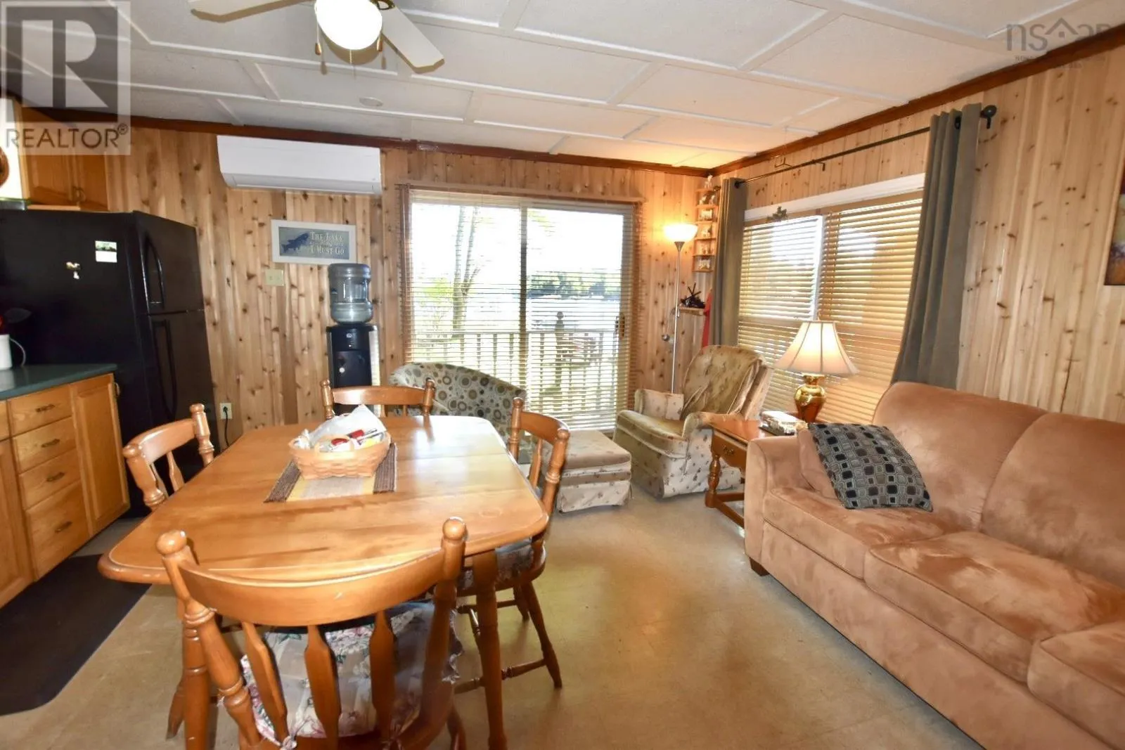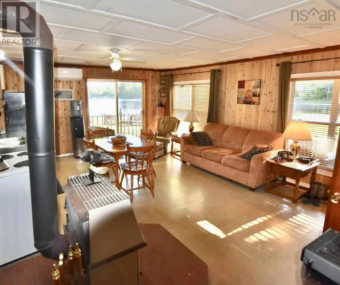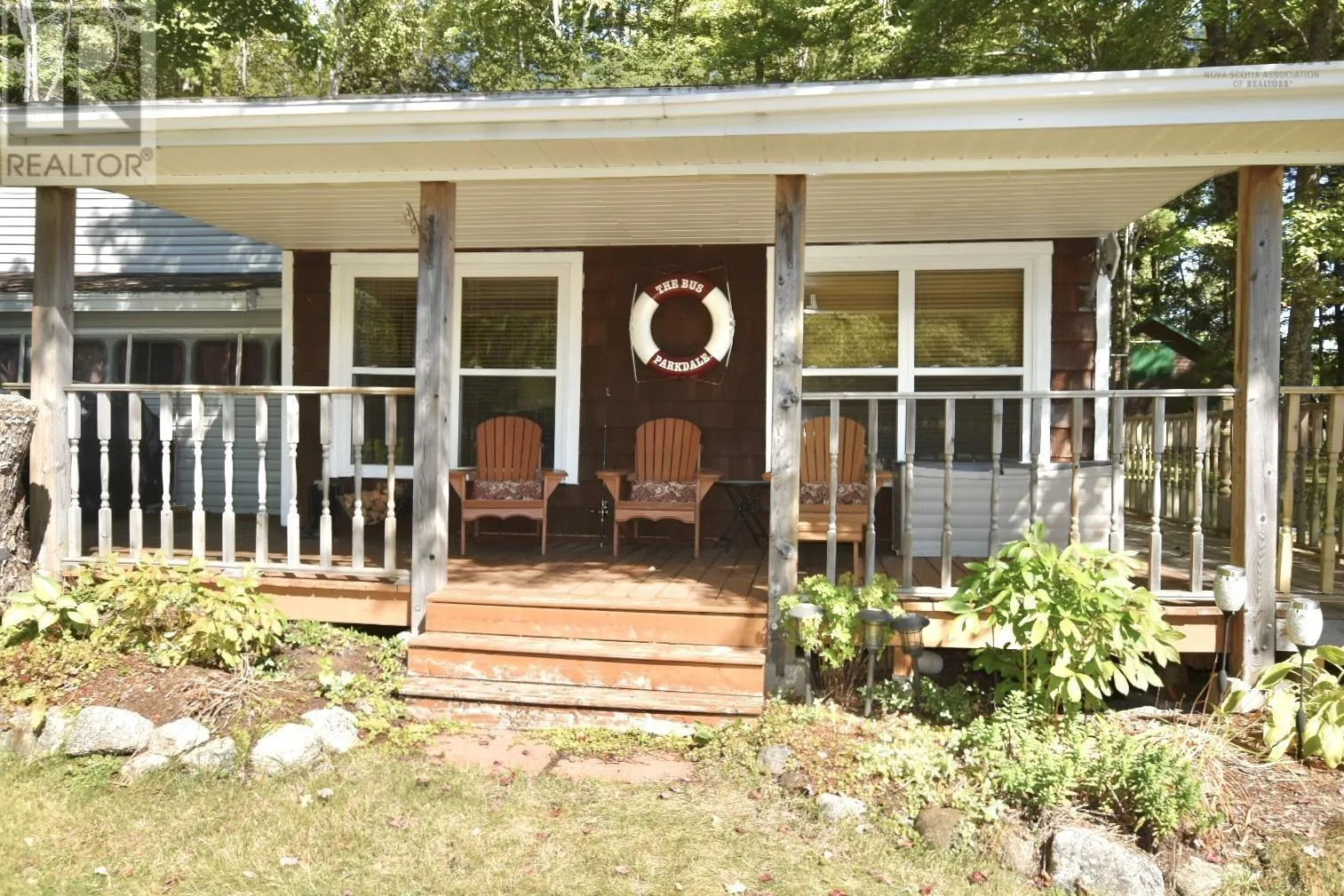 Highway 103 -exit 11,onto Cornwall Rd -slight right onto Newburne Rd-approx 15 kms take right onto Grimms Rd. 1.9 kms to ppty Welcome to your lakeside retreat! This charming 2-bedroom cottage is tucked along the shores of popular Sherbrooke Lake with approx 84 ft of lakefront (plus more frontage on brook) and offering the ideal balance of comfort, relaxation, and outdoor living. Inside enjoy a mix of old & new character, open layout with combined kitchen /dining and living space with patio doors calling you to step outside and enjoy the serene water views while sheltered from the hot sun or rain under the covered deck. The landscaped grounds create a peaceful setting, and include a shed and wood shelter for all your storage needs. Best of all, its move-in ready, complete with full bathroom, newer septic (2015) , duckless heat pump, fully furnished including queen-size bed in primary bedroom, and built-in double bed, and convenient built-in bunks in bedroom 2, making it easy to start enjoying lakeside living now. (id:27476)