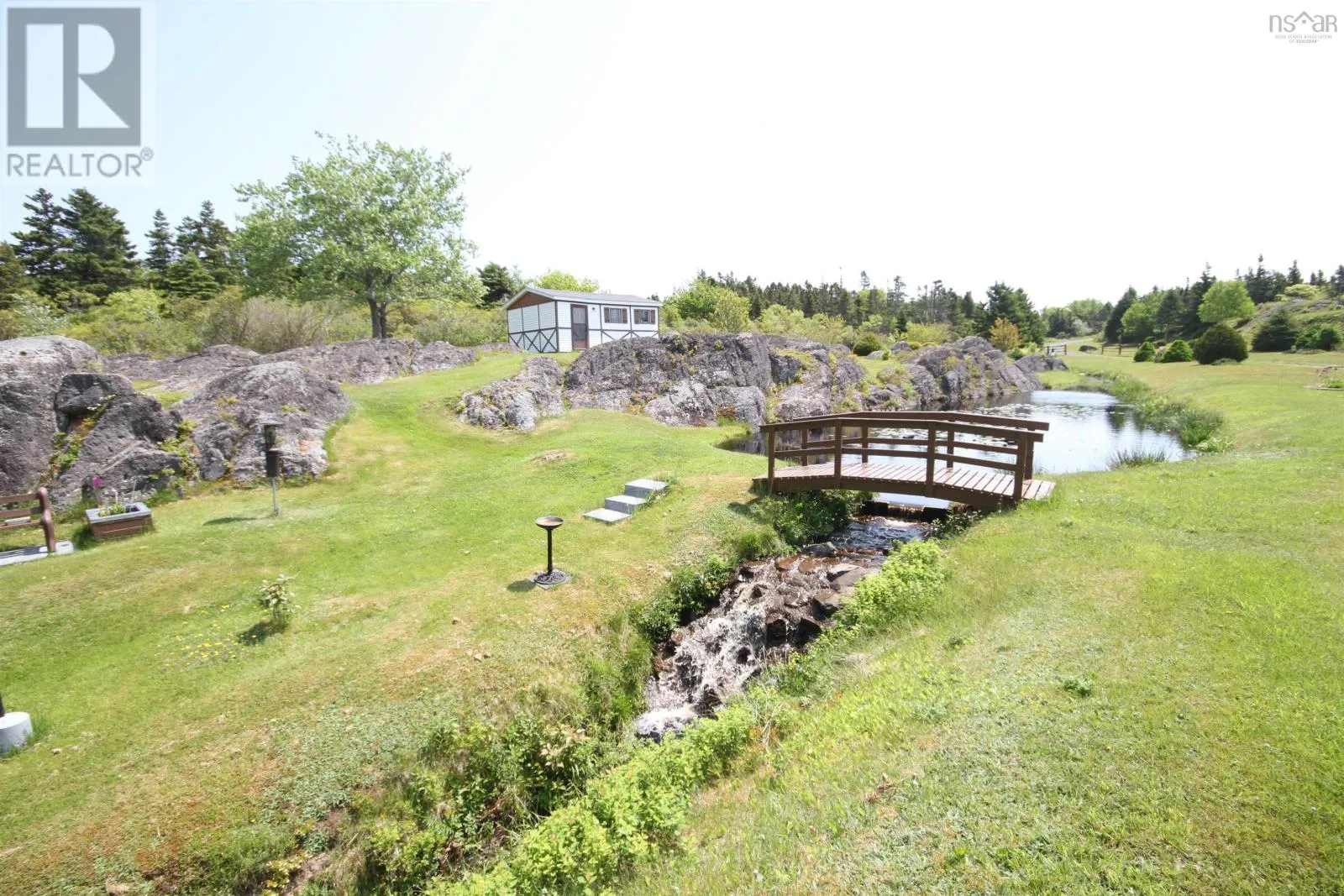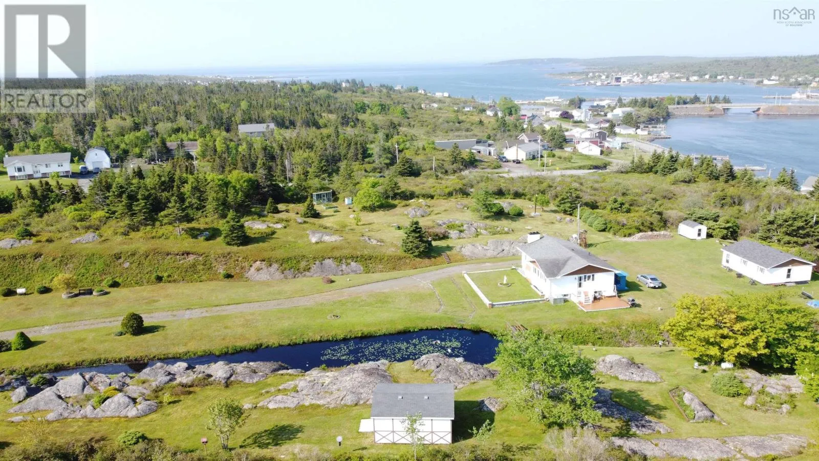 Highway 206 to Petit de Grat. Take a left at the Corner Bridge Bakery, then a right. property is on your left hand side. Step into this charming single-owner L-shaped bungalow tucked away on 3 Parcels of land consisting of 11.35 acres. Set back from the main road with complete privacy, offering your own special retreat. Sweeping views of Petit de Grat Harbour. Boasting 3 Bedrooms and 2 bathrooms, the home offers flexible warmth with a cozy woodstove and electric heat. Highlights include a spacious, wired 24x30 double garage and 2 additional wired outbuildings, a 8x10 wood shed, and a 16x20 utility shed. Outdoors, a man-made pond fed directly from the lake. Indoor entertaining flows effortlessly into a dedicated games room complete with a pool table, rec room with wood stove, den/office full bath, bar, and laundry room. The Pondville Beach is just a 15 minute drive. Many attractions such as Lenoire Forge, Cape Audet Trail, Martinique Park, La Picasse Cultural Centre, and Premium Seafood. (id:27476)