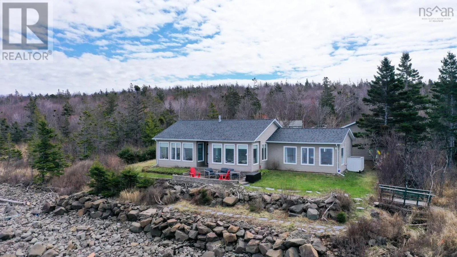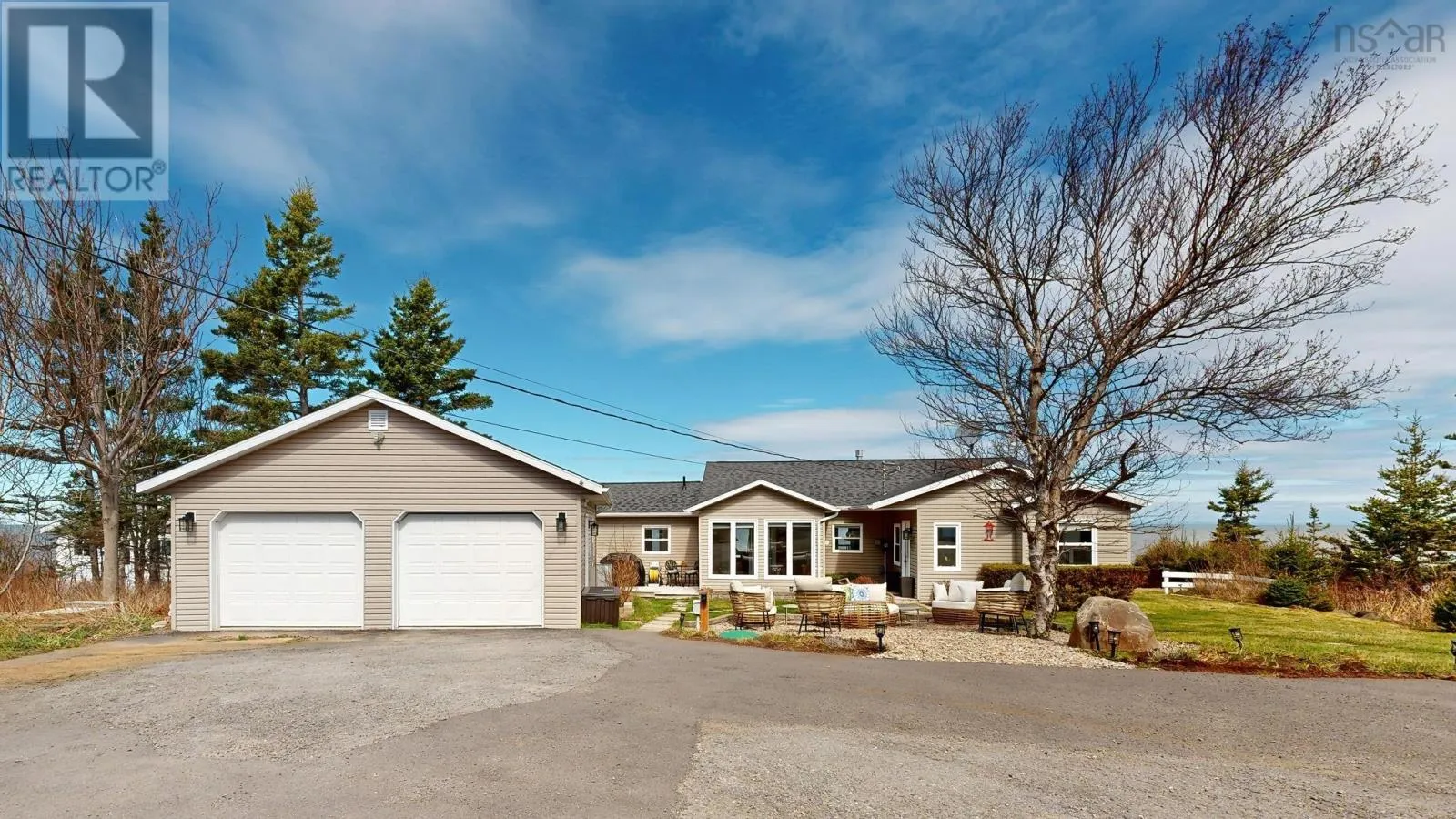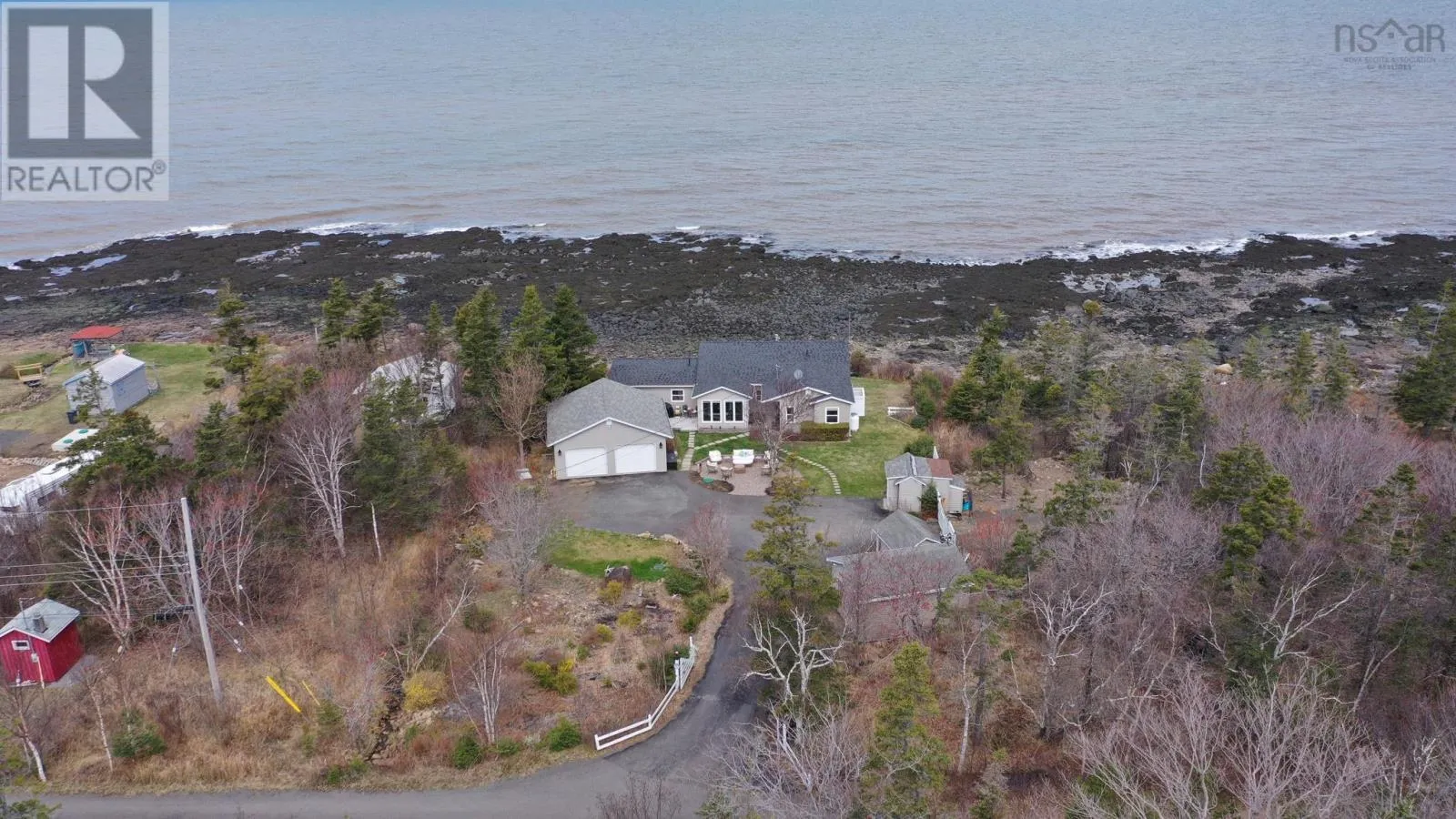 From Bridgetown travel North on Hampton Mtn Rd. Turn left onto Shore Rd, turn right onto Sunset Ave, watch for civic/sign on the left hand side. Sea, surf, & sunsets! All a part of everyday living when you reside at 59 Sunset Ave in peaceful Phinneys Cove, Nova Scotia! Private frontage on the Bay of Fundy provides an ever changing landscape full of beauty and wildlife for you to enjoy. Inside offers a warm and cozy vibe with lovely softwood flooring throughout and plenty of windows capitalizing on the picturesque views. One level living at its finest and plenty of space for visitors or families with three bedrooms and two spa like baths. The open concept living space is perfect for entertaining with a great indoor/outdoor feel and a stunning propane fireplace! Fully equipped kitchen with included appliances and four efficient heat pumps keeps you affordably comfortable in any season. The quaint yard space is sure to be one of your favorite features. Perennial gardens, a seaside patio, paved driveway, and multiple outbuildings adds to the appeal & functionality! A detached double garage with walk up loft provides lots of storage and hobby space, and the cute bunkie/workshop is fully wired. Lots of recent improvements makes this home move in ready, and it is available for an immediate procession. No shortage of nearby attractions and activities to keep you busy such as local wineries, Kings Theatre, multiple parks and historic sites, and the gorgeous scenery, trails, and oceanfront that Nova Scotia is known for! (id:27476)