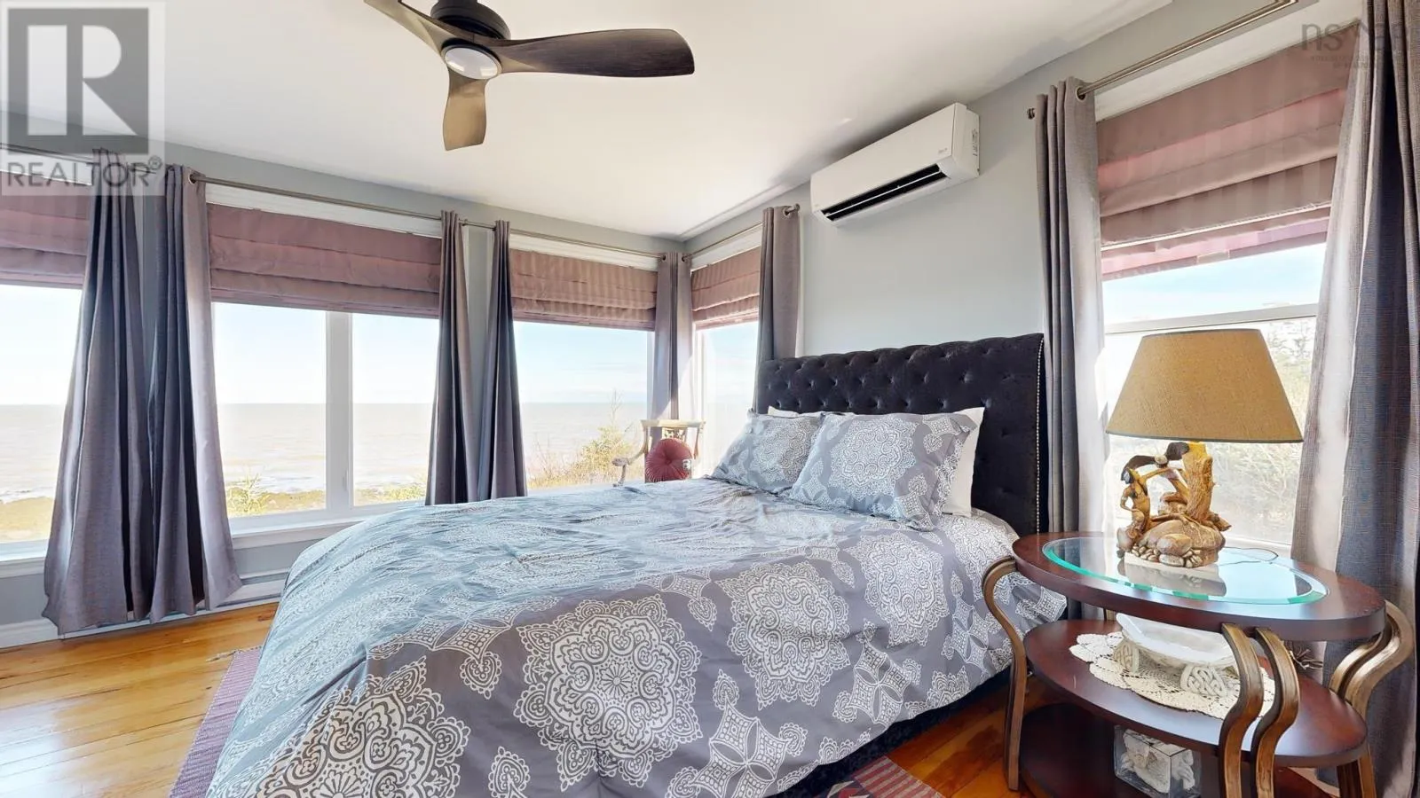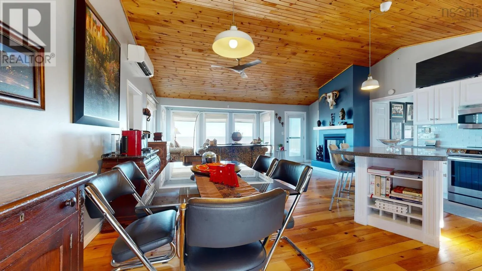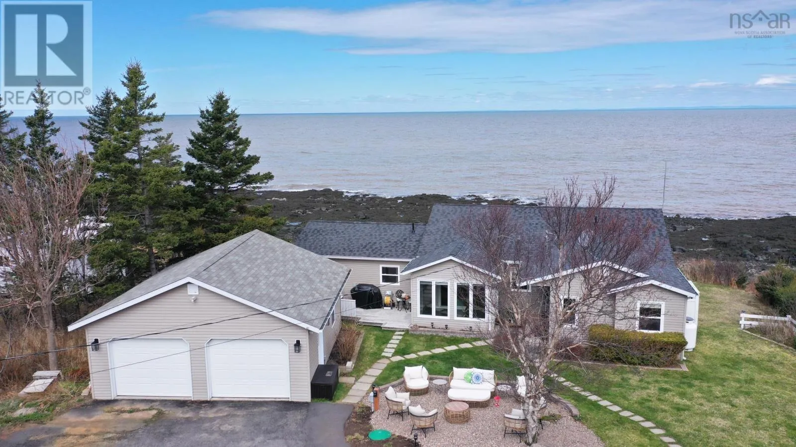 From Bridgetown travel North on Hampton Mtn Rd. Turn left onto Shore Rd, turn right onto Sunset Ave, watch for civic/sign on the left hand side. Sea, surf, & sunsets! All a part of everyday living when you reside at 59 Sunset Ave in peaceful Phinneys Cove, Nova Scotia! Private frontage on the Bay of Fundy provides an ever changing landscape full of beauty and wildlife for you to enjoy. Inside offers a warm and cozy vibe with lovely softwood flooring throughout and plenty of windows capitalizing on the picturesque views. One level living at its finest and plenty of space for visitors or families with three bedrooms and two spa like baths. The open concept living space is perfect for entertaining with a great indoor/outdoor feel and a stunning propane fireplace! Fully equipped kitchen with included appliances and four efficient heat pumps keeps you affordably comfortable in any season. The quaint yard space is sure to be one of your favorite features. Perennial gardens, a seaside patio, paved driveway, and multiple outbuildings adds to the appeal & functionality! A detached double garage with walk up loft provides lots of storage and hobby space, and the cute bunkie/workshop is fully wired. Lots of recent improvements makes this home move in ready, and it is available for an immediate procession. No shortage of nearby attractions and activities to keep you busy such as local wineries, Kings Theatre, multiple parks and historic sites, and the gorgeous scenery, trails, and oceanfront that Nova Scotia is known for! (id:27476)