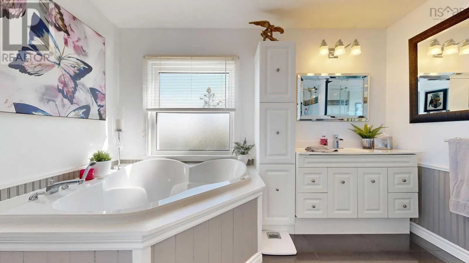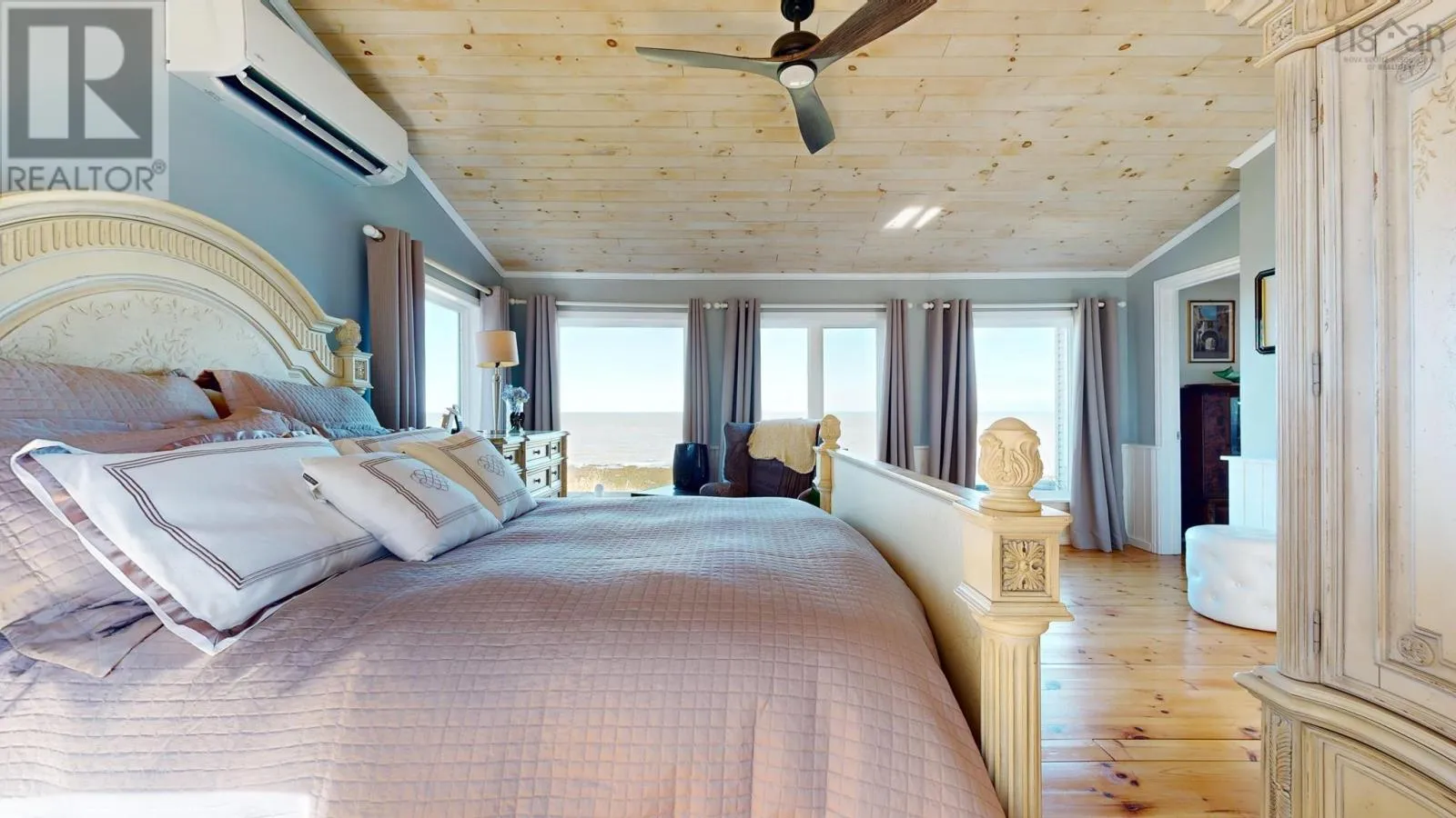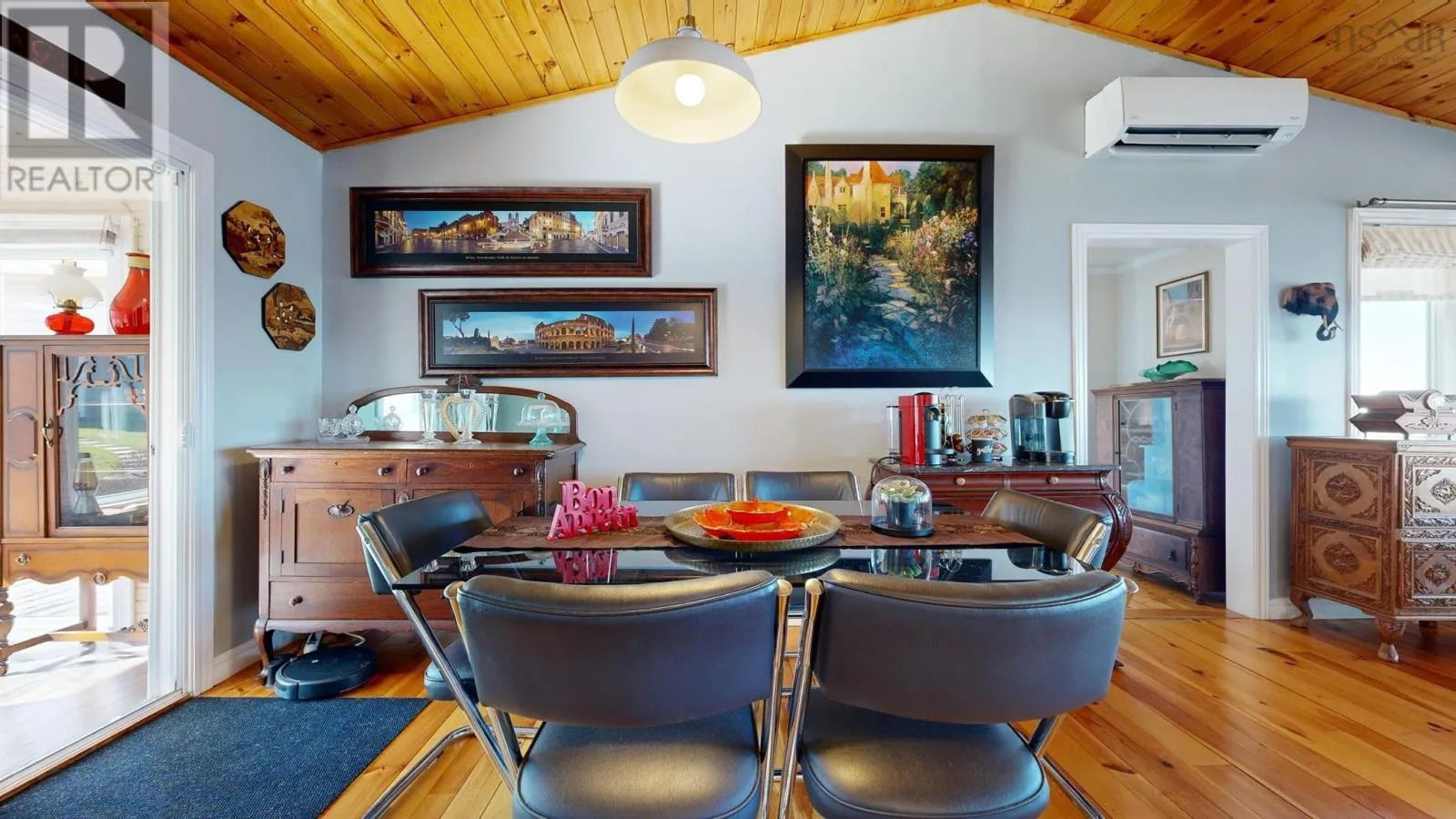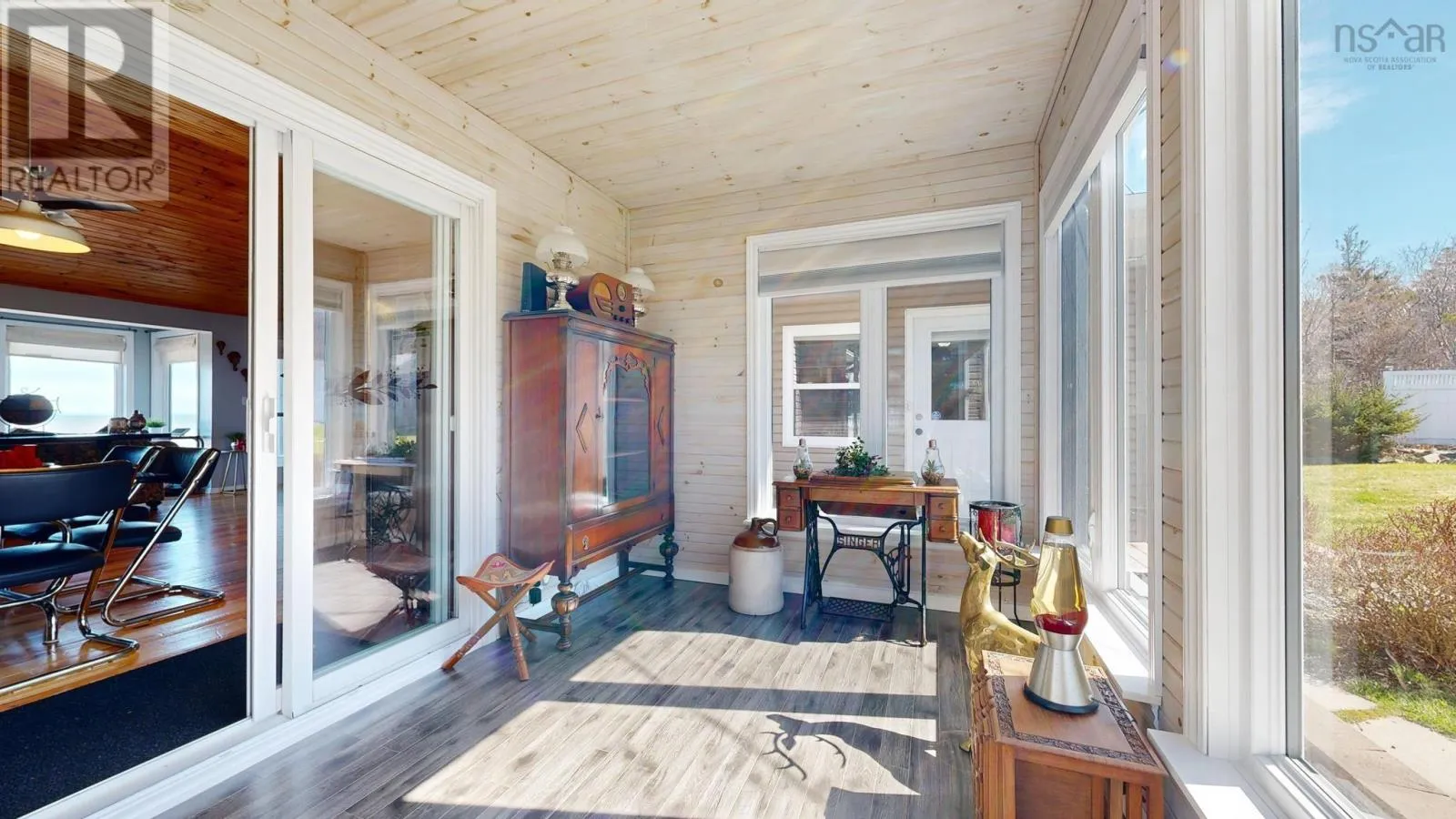 From Bridgetown travel North on Hampton Mtn Rd. Turn left onto Shore Rd, turn right onto Sunset Ave, watch for civic/sign on the left hand side. Sea, surf, & sunsets! All a part of everyday living when you reside at 59 Sunset Ave in peaceful Phinneys Cove, Nova Scotia! Private frontage on the Bay of Fundy provides an ever changing landscape full of beauty and wildlife for you to enjoy. Inside offers a warm and cozy vibe with lovely softwood flooring throughout and plenty of windows capitalizing on the picturesque views. One level living at its finest and plenty of space for visitors or families with three bedrooms and two spa like baths. The open concept living space is perfect for entertaining with a great indoor/outdoor feel and a stunning propane fireplace! Fully equipped kitchen with included appliances and four efficient heat pumps keeps you affordably comfortable in any season. The quaint yard space is sure to be one of your favorite features. Perennial gardens, a seaside patio, paved driveway, and multiple outbuildings adds to the appeal & functionality! A detached double garage with walk up loft provides lots of storage and hobby space, and the cute bunkie/workshop is fully wired. Lots of recent improvements makes this home move in ready, and it is available for an immediate procession. No shortage of nearby attractions and activities to keep you busy such as local wineries, Kings Theatre, multiple parks and historic sites, and the gorgeous scenery, trails, and oceanfront that Nova Scotia is known for! (id:27476)