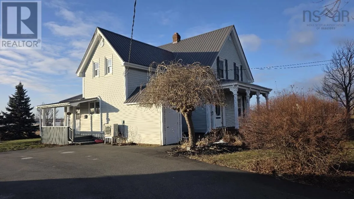 From Roundabout take exit 3D (NS-376). Property on left hand side Visit REALTOR® website for additional information. Welcome to a truly special century home where character, comfort, and nature come together. Set on 4.7 picturesque acres with sweeping lake views from the back of the home, this lovingly maintained property offers peace, privacy, and a lifestyle to fall in love with. From the charming covered front porch to the tranquil pond and gazebo, the property feels like a private retreatyet benefits from thoughtful upgrades and solid systems throughout. Inside, the home has been freshly painted this year and features warm, inviting spaces, custom cabinetry, and a functional 3-bedroom, 1.5-bath layout. The home is equipped with town septic, a well, and a poured concrete foundation with spray foam and blown insulation for comfort and efficiency. Heating includes a split woodstove/oil system complemented by a heat pump that is cleaned annually and serviced within the last two years. Recent updates include a brand new oil tank and hot water tank (December 2025), with the electrical panel currently being updated and 100-amp service. Outside, enjoy a large paved driveway leading to a wired double-door garage with a metal roof to match the homeperfect for storage or projects. The grounds feature beautiful landscaping, including a weeping mulberry tree, with past apple and pear trees, blueberry bushes, and gardens ideal for those who love to grow their own food. Water views can be enjoyed from every back room, and the Crown-owned land between the property and the lake preserves privacy and the beautiful outlook, with potential for water frontagemaking this a rare and exciting opportunity. This is more than a homeits a peaceful retreat and a truly special place to call your own (id:27476)