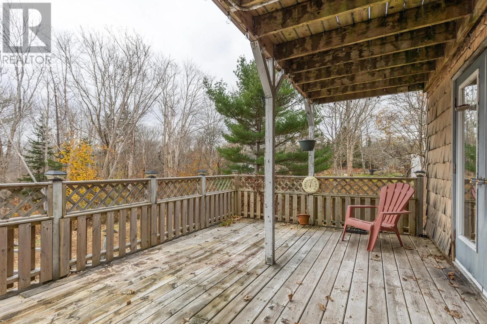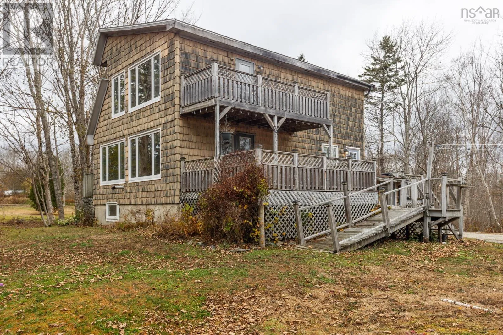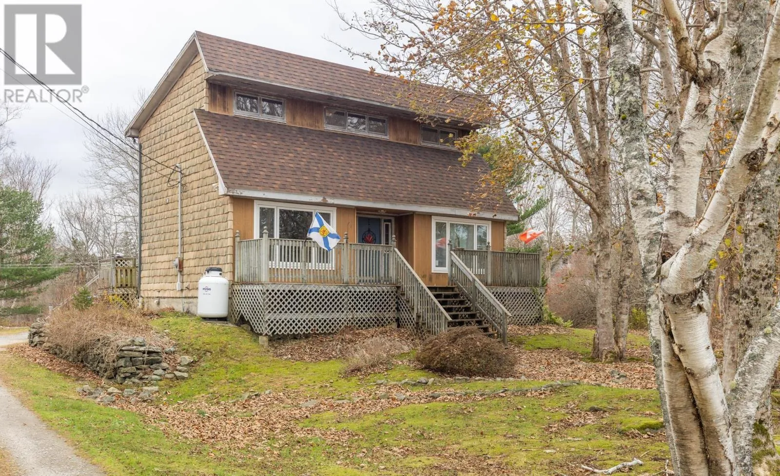 Heading east on Starrs rd, continue straight onto highway 3. Property signed on right, civic#:9333 Welcome to 9333 Highway 3 in Pleasant Lake, set on 1.8 acres of forested land. This 1.5 storey home offers a quiet setting just 10 minutes from Yarmouth and its full range of amenities. The property also includes an 8' x 10' storage shed for added convenience. The main level features an open concept kitchen and dining room, creating a comfortable flow through the space. The living room is bright and spacious, with patio doors leading to a 12' x 16'6 back deck overlooking the treed surroundings. Upstairs, youll find a 4-piece bath with a large skylight, a primary bedroom with its own 5'8" x 16' balcony, and a second bedroom. The basement includes a den, an office, and a walkout for practical access to the yard. A simple, well-kept property in a peaceful location, offering a blend of privacy and convenience. (id:27476)