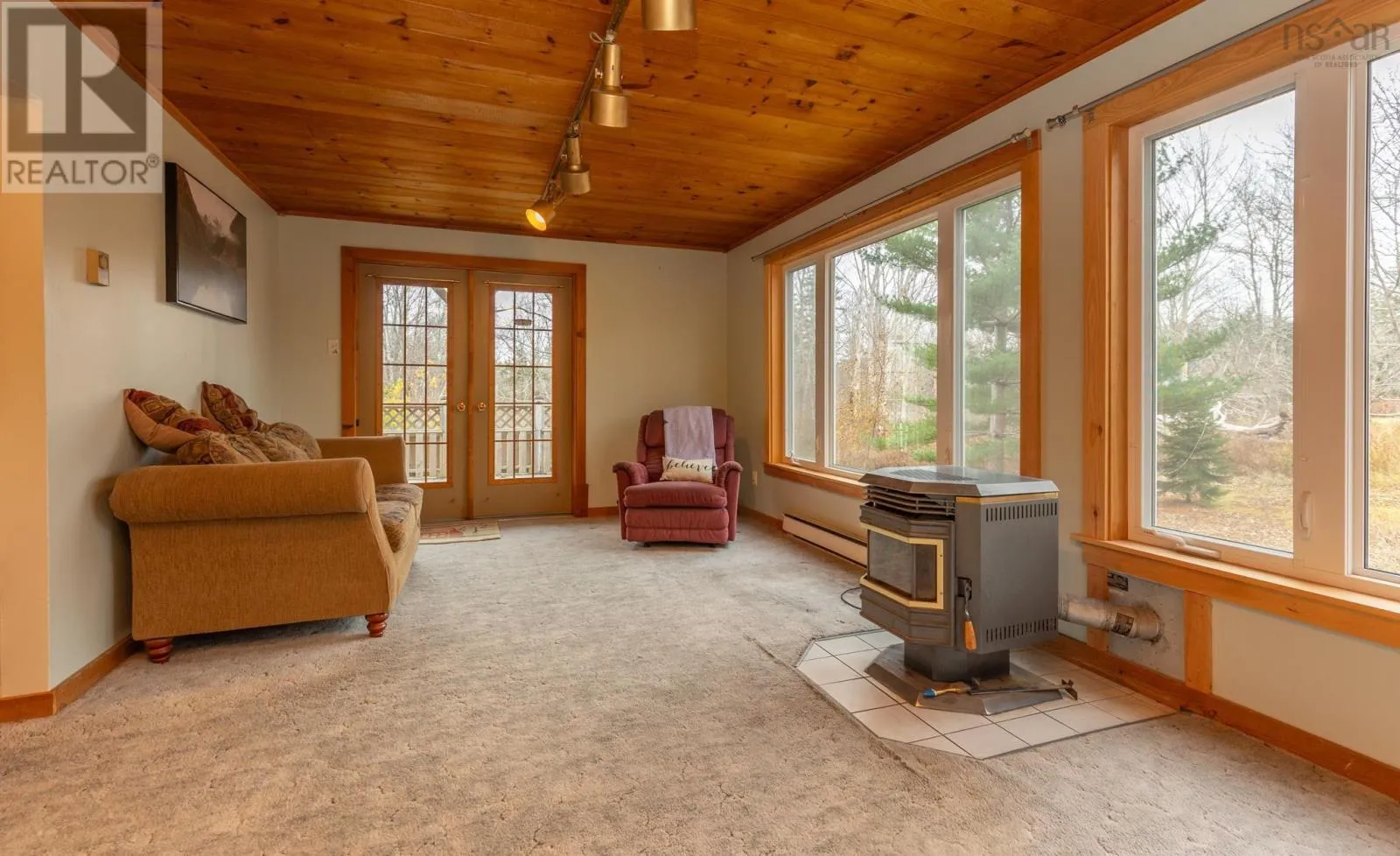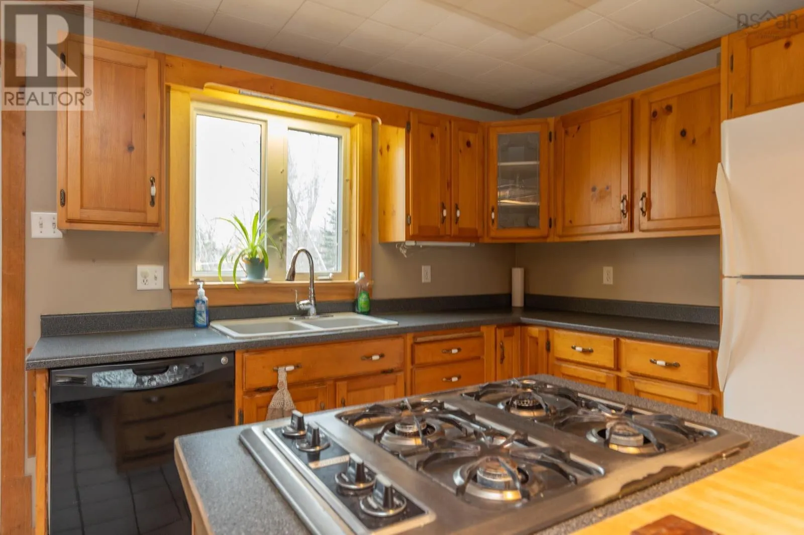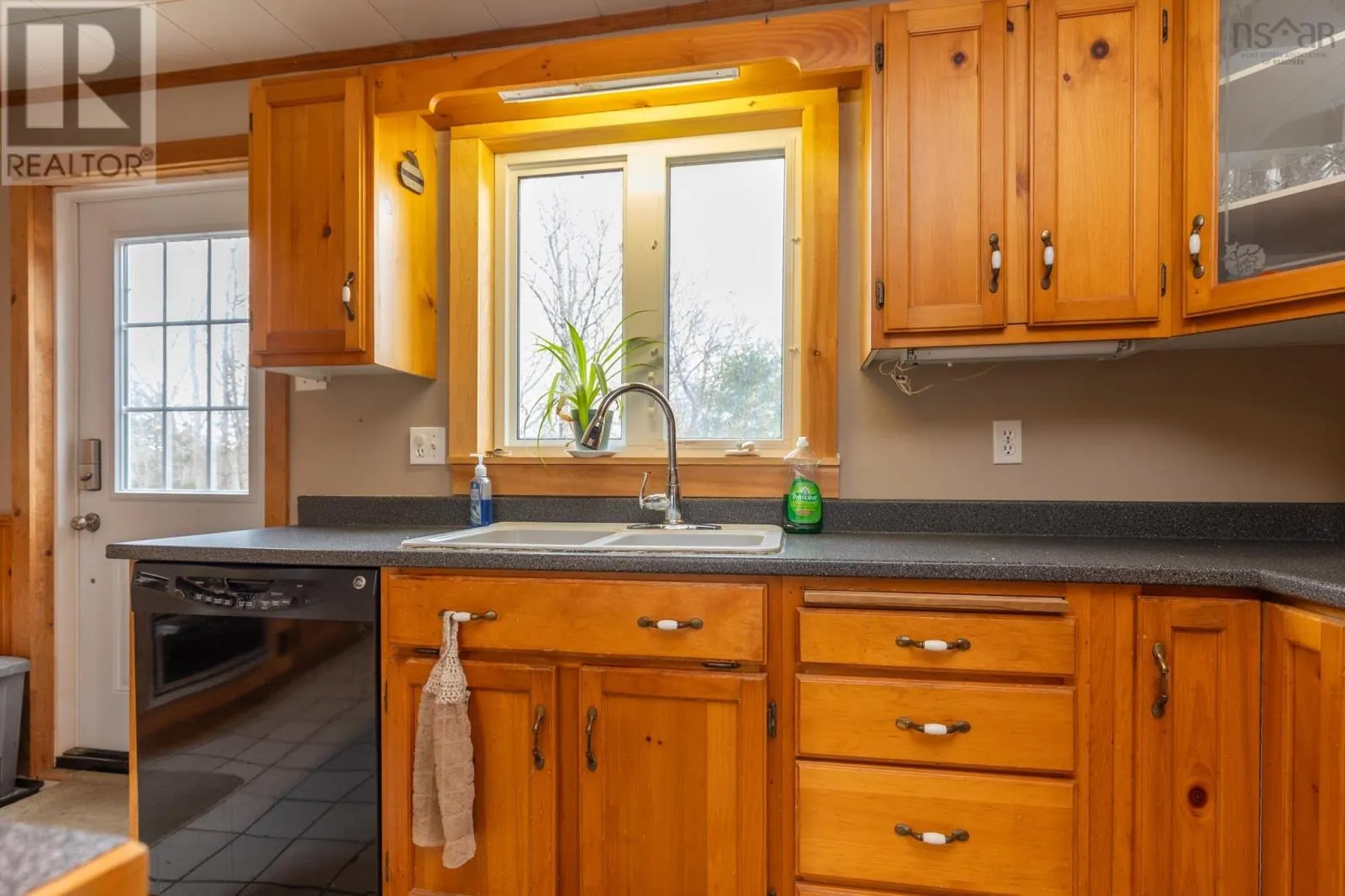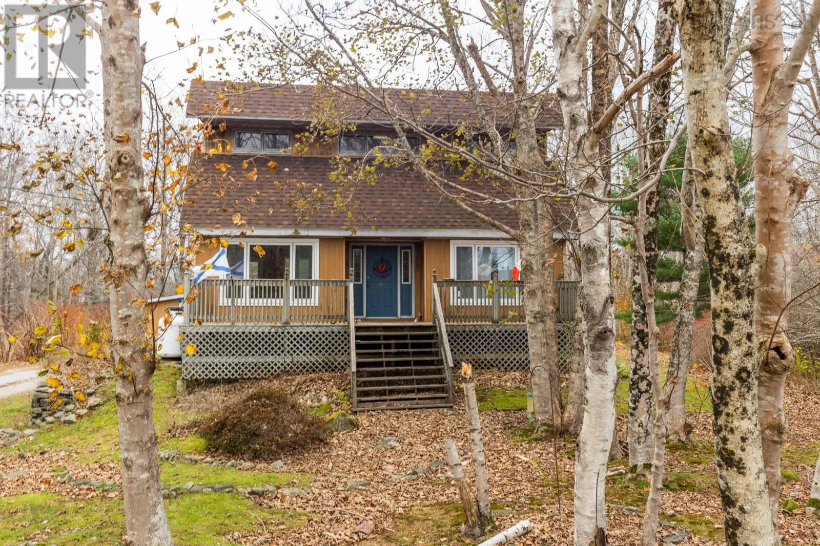 Heading east on Starrs rd, continue straight onto highway 3. Property signed on right, civic#:9333 Welcome to 9333 Highway 3 in Pleasant Lake, set on 1.8 acres of forested land. This 1.5 storey home offers a quiet setting just 10 minutes from Yarmouth and its full range of amenities. The property also includes an 8' x 10' storage shed for added convenience. The main level features an open concept kitchen and dining room, creating a comfortable flow through the space. The living room is bright and spacious, with patio doors leading to a 12' x 16'6 back deck overlooking the treed surroundings. Upstairs, youll find a 4-piece bath with a large skylight, a primary bedroom with its own 5'8" x 16' balcony, and a second bedroom. The basement includes a den, an office, and a walkout for practical access to the yard. A simple, well-kept property in a peaceful location, offering a blend of privacy and convenience. (id:27476)