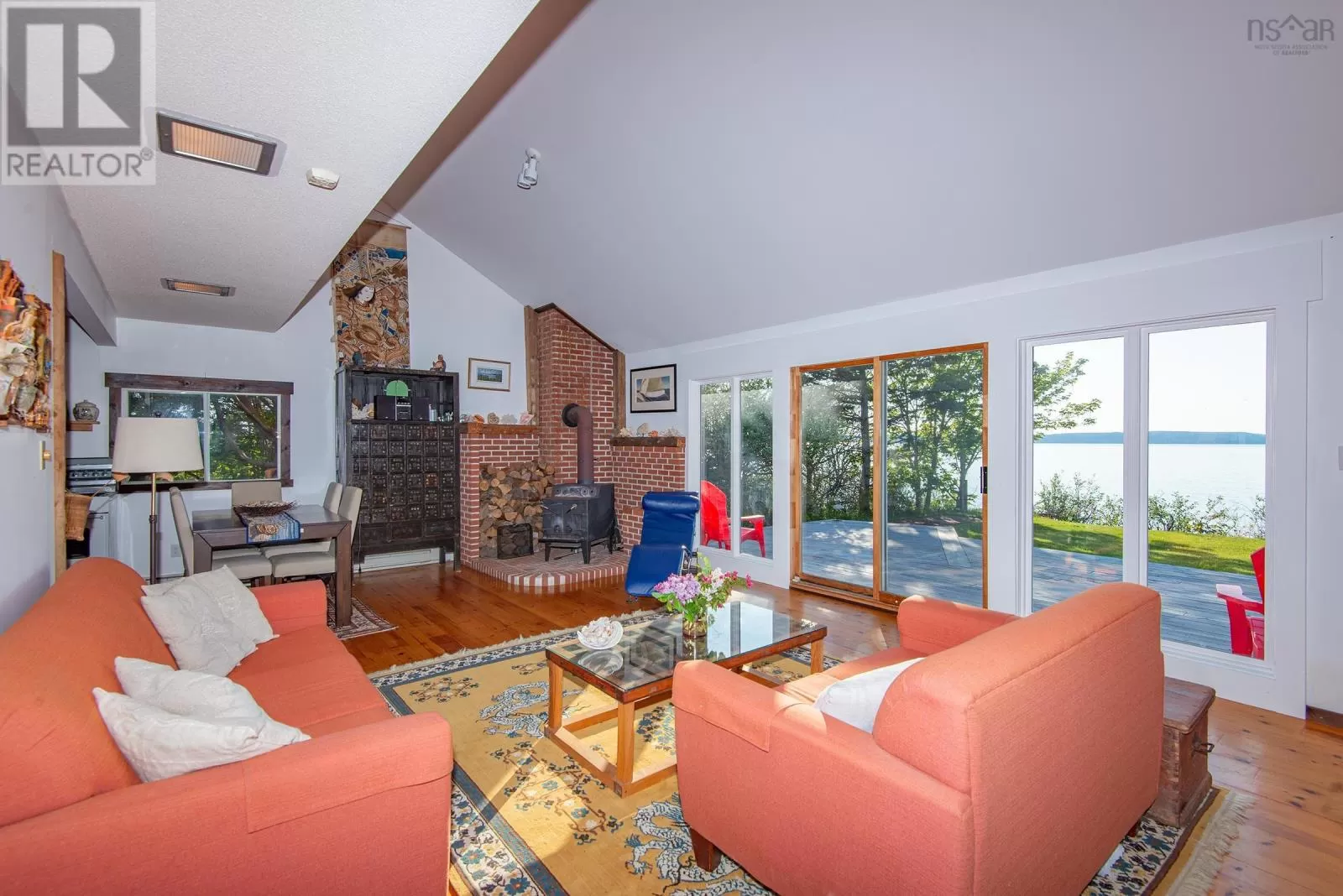 From Yarmouth take Highway 101 until Plympton, 7215 Highway 101, there will be a sign by the entrance of the driveway. Escape to your own private retreat on St. Mary's Bay! This uniquely designed 3-bedroom, 2-bathroom home seamlessly blends indoor and outdoor living, offering a tranquil rhythm with the sea and nature. The expansive (28x17ft) front deck boasts panoramic views of the ocean and majestic Digby Neck, perfect for relaxing, entertaining, and soaking in the stunning scenery. A back deck, nestled amongst the trees and directly accessible from the kitchen, provides an intimate setting for al fresco dining and peaceful evenings. Inside, the open-concept design features a custom-made brick fireplace, visible from nearly every room on the lower level. Floor-to-ceiling windows frame inspiring views of St. Mary's Bay, inviting the beauty of the outdoors in. Watch eagles, great blue herons, and the changing seasons from the comfort of your living room. An open staircase leads to the second level, offering a bird's-eye view of the living space below. The home features durable aluminum siding, charming cedar shakes, and vaulted ceilings, adding to its unique character. The property is a gardener's dream, boasting over 25 mature cherry trees, a mature and producing plum tree, and two 15-year-old pear trees. You'll also find 3 hawthorn trees, a mature crabapple tree, and many mature heritage apple trees, along with two walnut trees planted in 1978. The grounds are adorned with perennial, naturalized low-upkeep ground covers of myrtle, primroses, woodruff, ferns, and wild strawberries. A highlight is the private path to access the shoreline. Ideally located 20 minutes from the town of Digby known for the best scallops and its festivals, waterfront markets and shopping. This is more than a home; it's a lifestyle. (id:27476)