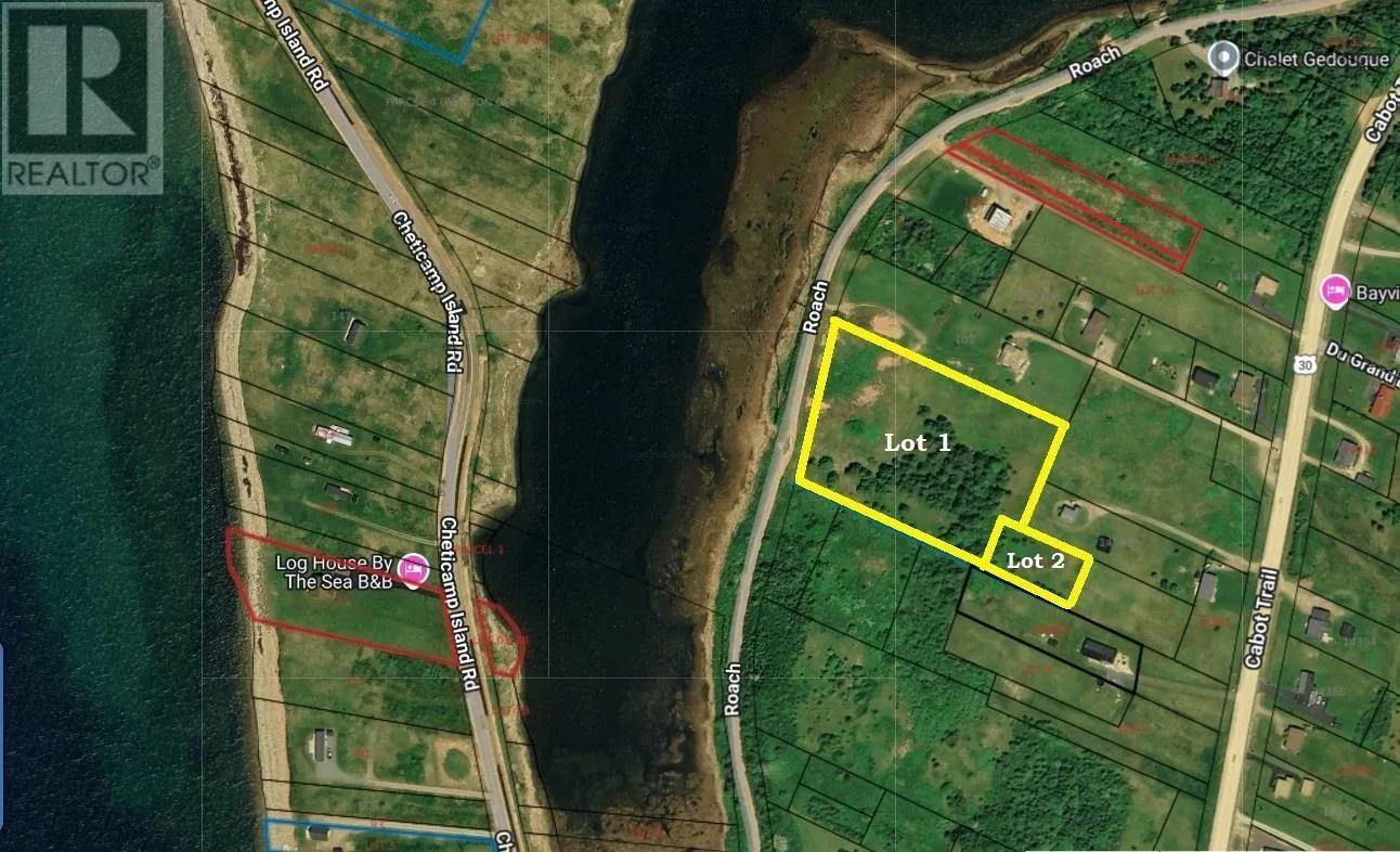 Turn onto Cheticamp Island Road, drive 250m to turn right onto Roach Road and drive approximately 400m to the lot on the right. Look for Brokerage Sign. Imagine waking up each morning to sweeping ocean vistas and majestic mountain backdrops from this expansive property perfectly positioned just off the world-famous Cabot Trail. There are 2 abutting lots, the smaller one being just over half an acre and the second, larger parcel being 3.48 acres for a total of 4 acres. You could sell one property or create a second dwelling for friends and family or use as an investment property by offering it as a vacation rental. This stunning property offers the best of coastal and highland living, with a pristine sandy beach only minutes away, scenic walking and hiking trails in the Cape Breton Highlands National Park, and the nearby Le Portage Golf Club for those who love to spend their days on the green. The lively village of Chéticamp is close by, offering a variety of restaurants, vibrant local culture, and all essential amenities. For golf enthusiasts, this central location is truly a dream, with top-rated courses in Inverness, Ingonish, and Baddeck all within easy reach. Whether you envision building a beautiful year-round home, a serene summer retreat, or simply parking your RV to soak in the peaceful surroundings, this lot is ready for your ideas. The property was surveyed in 2018, and a registered NS Power easement is already in place to bring power from the neighboring property, making future development smooth and straightforward. (id:27476)