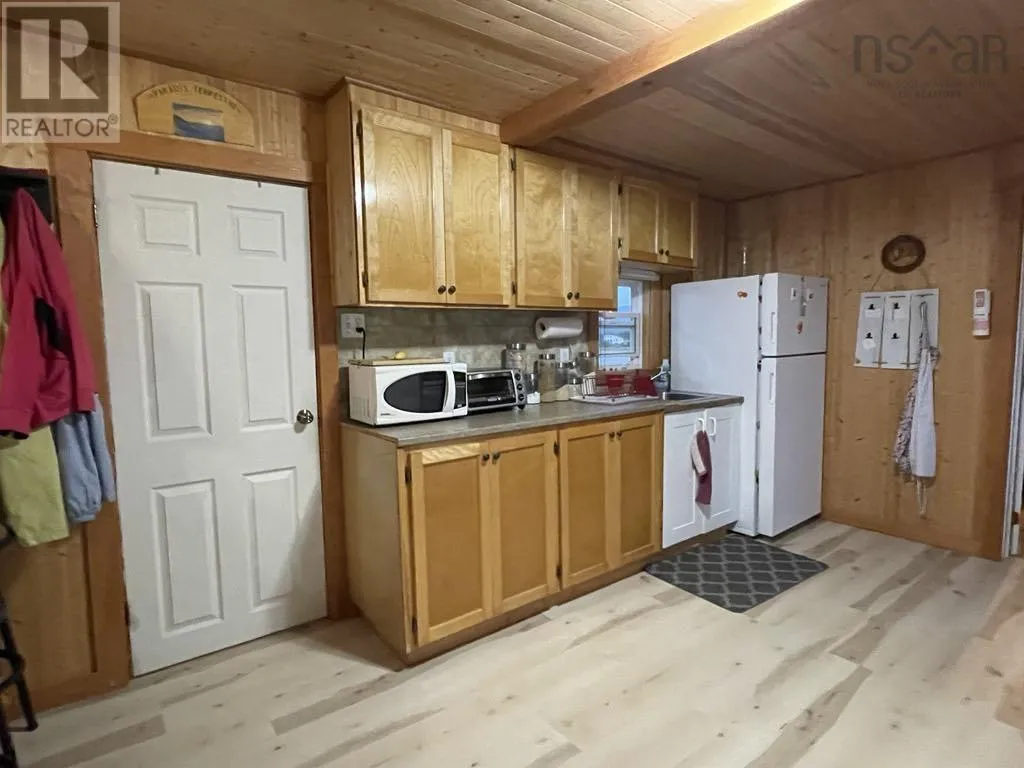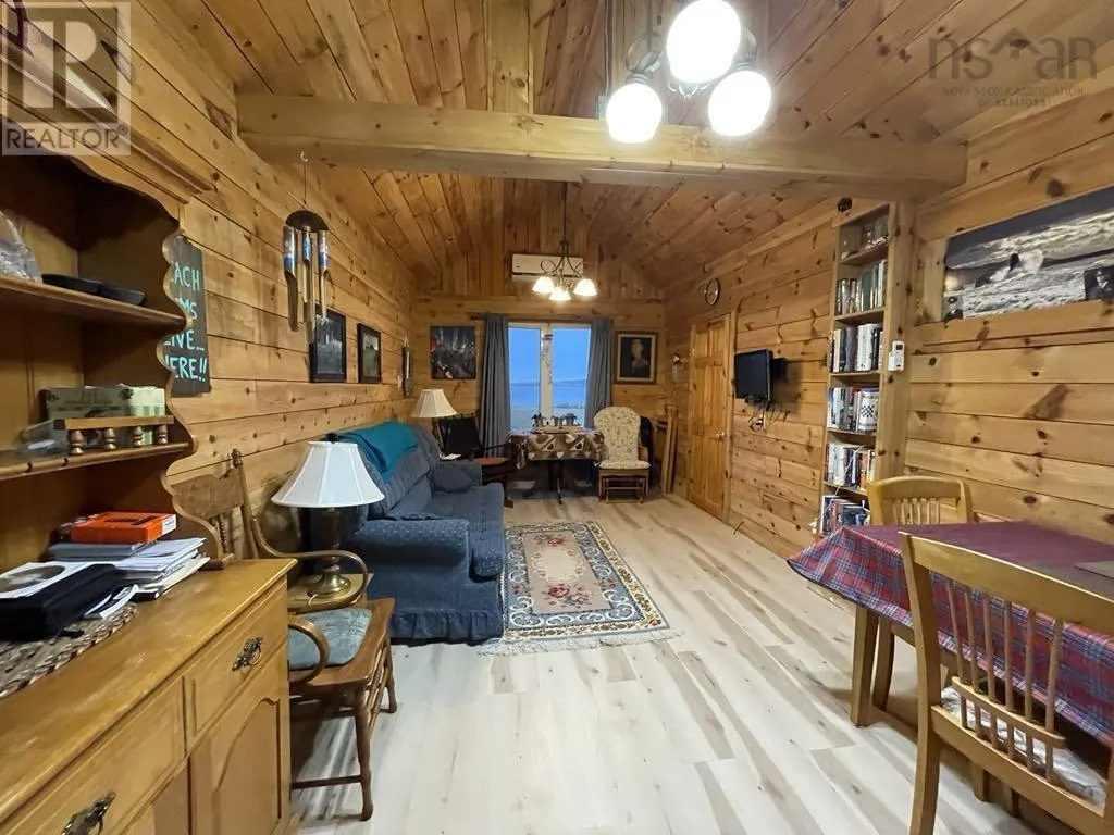 Driving north on Cabot Trail towards Cheticamp, turn onto Cheticamp Island Road, drive approximately 675m to the property on the left. Look for brokerage sign. On the edge of Cheticamp Island, this 3-season oceanfront cottage offers approximately 1.25 acres of pure coastal beauty and your very own beach. Watch the sun melt into the horizon, stroll the shoreline to the nearby sandy beach, and end the day gathered around a crackling fire by the ocean, the stars overhead and the waves as your soundtrack. Inside, the cottage glows with warmth - wood walls and ceilings wrap the kitchen, dining, and living areas in rustic charm. The living rooms cathedral ceiling adds a sense of space, while a single large window perfectly frames the sea. Step onto the back deck and take in the view that will draw you outside time and again. The primary bedroom is generously sized, with room for a king bed, while the smaller cozy guest room keeps visits short but sweet. A heat pump and baseboard heaters add comfort, and the home comes fully furnished - just bring your bags and groceries. Only three minutes from town, yet worlds away in peace and privacy, this retreat is perfect as a summer escape or the site for a future year-round home by the sea. (id:27476)