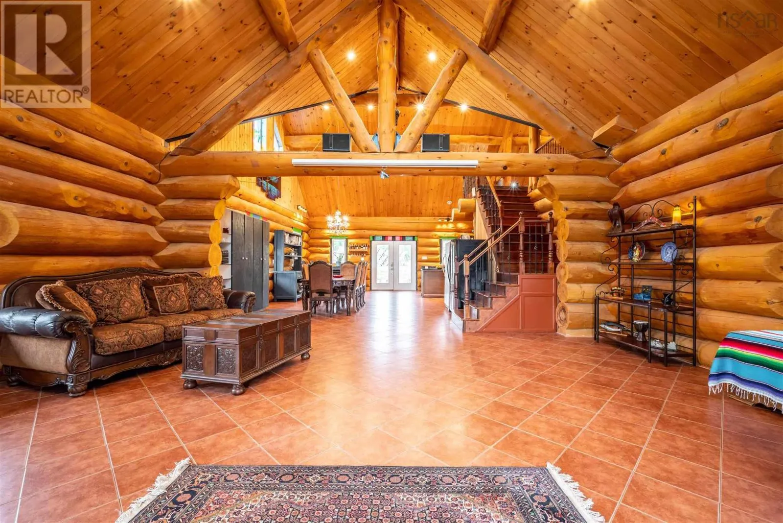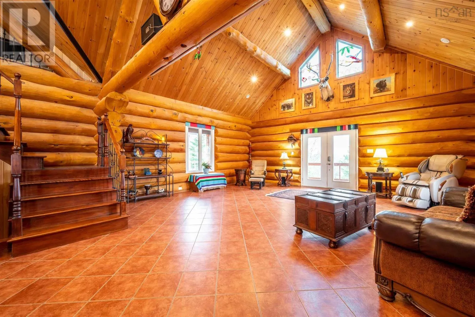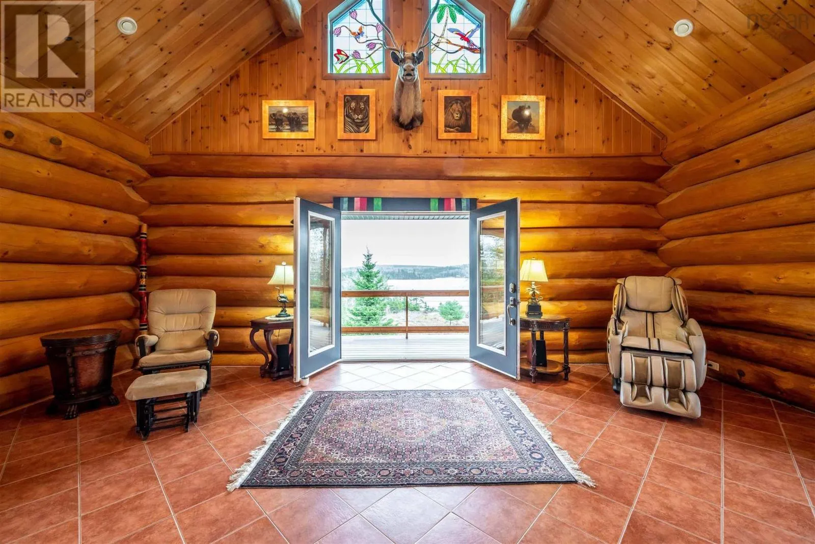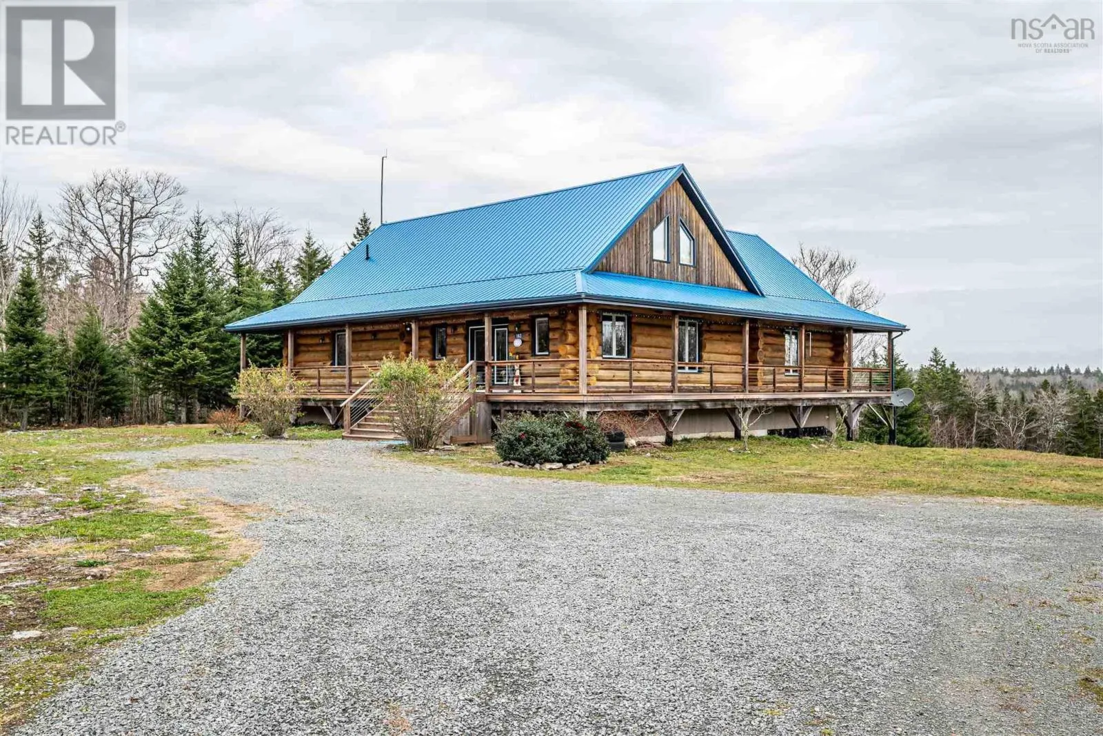 hwy 7 east - left on dufferin mines rd - 7 km Once in a lifetime opportunity in beautiful Nova Scotia. This majestic 2470 sq ft custom pine log home with an 1800 sq ft partially finished walk-out basement is set on 25 acres of mixed trees and offers 1375 feet of pristine lakefront. The main level features ceramic floors throughout, a stunning open concept kitchen, dining and living area with 22 ft cathedral ceilings, and beautiful lake views. The spacious, sound-proofed primary suite includes a luxurious ensuite, walk-in closet, and a private balcony with direct access to the hot tub. The main level also includes a laundry room with a half bath. The loft provides a bright open space perfect for an office, studio, gym or can be converted into two additional bedrooms if needed.Built with large 40 cm logs, the home exceeds R2000 energy standards and includes energy-efficient appliances, vinyl windows and 6 ft double garden doors. The property features a wide, low-maintenance wrap-around composite deck and accessibility touches including wider doorways. A 14.5 KW solar system with Net Metering, hot water collectors, and an air-to-water heat pump provide in-floor radiant heat and summer cooling, while the commercial-grade diesel generator, battery bank, and oil-fired water boiler ensure reliable backup power.A fully insulated 2400 sq ft workshop with in-floor heat, its own water supply and septic, and commercial use approval offers endless possibilities for business or hobby use. A new 10 x 33 greenhouse with modern amenities is also included. Enjoy ATV and snowmobile trails throughout the property, and a peaceful lakefront area ideal for swimming, boating, fishing, or relaxing. The lake offers approximately 7 meters of depth with a gradual shoreline. Located just 20 minutes from hospital and essential amenities, 35 minutes to Taylor Head Provincial Parks sandy beaches, and under 2 hours to Dartmouth, Halifax and the Halifax Stanfield International Airport. Full list of inclusions, upgrades and luxury finishes! (id:27476)