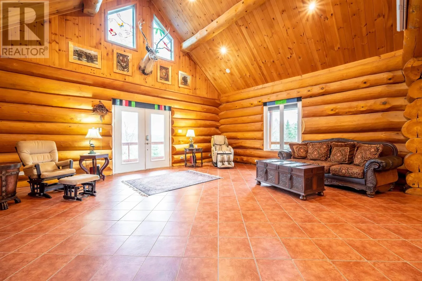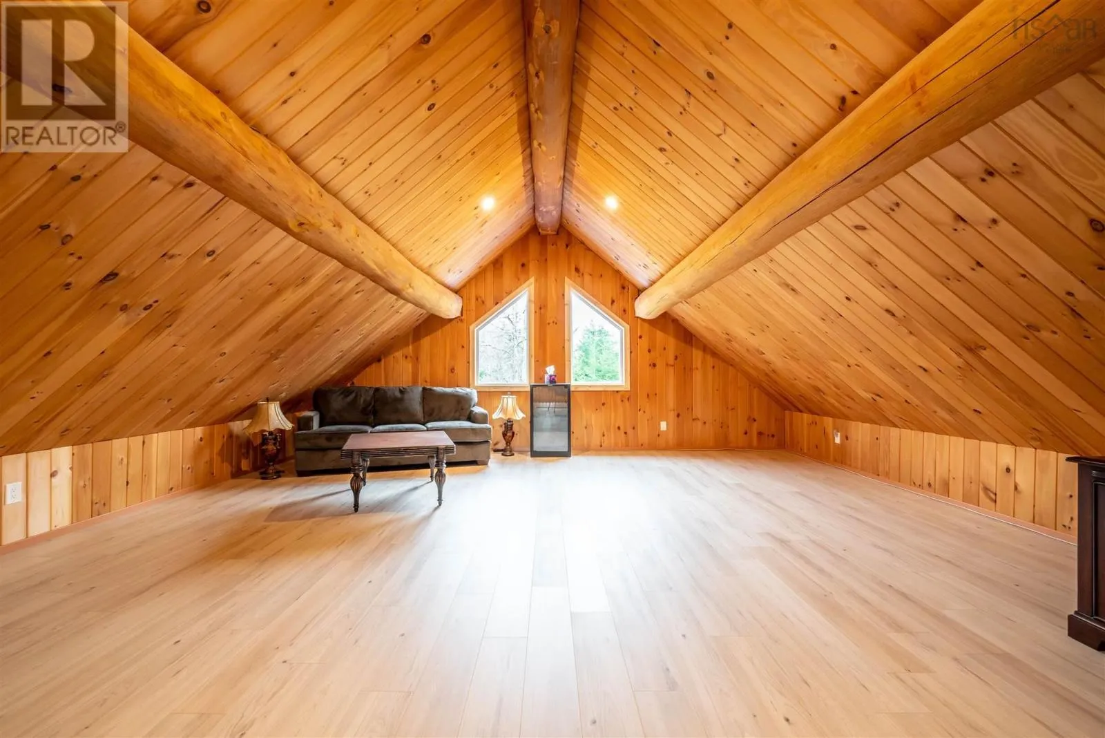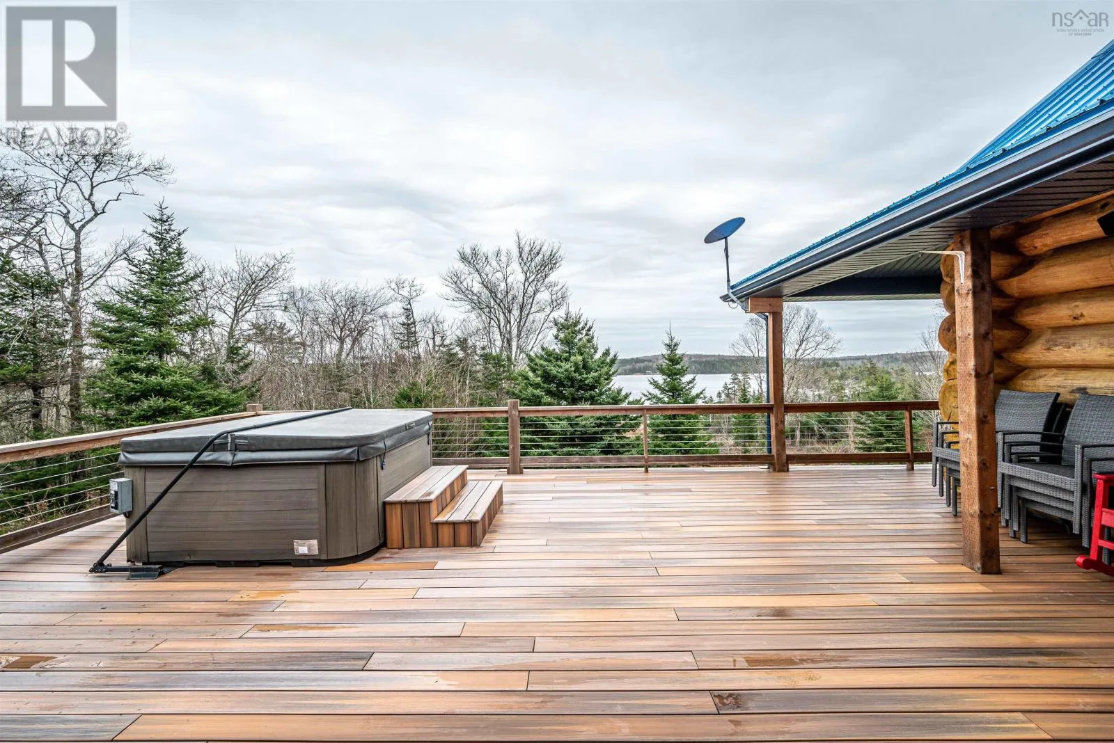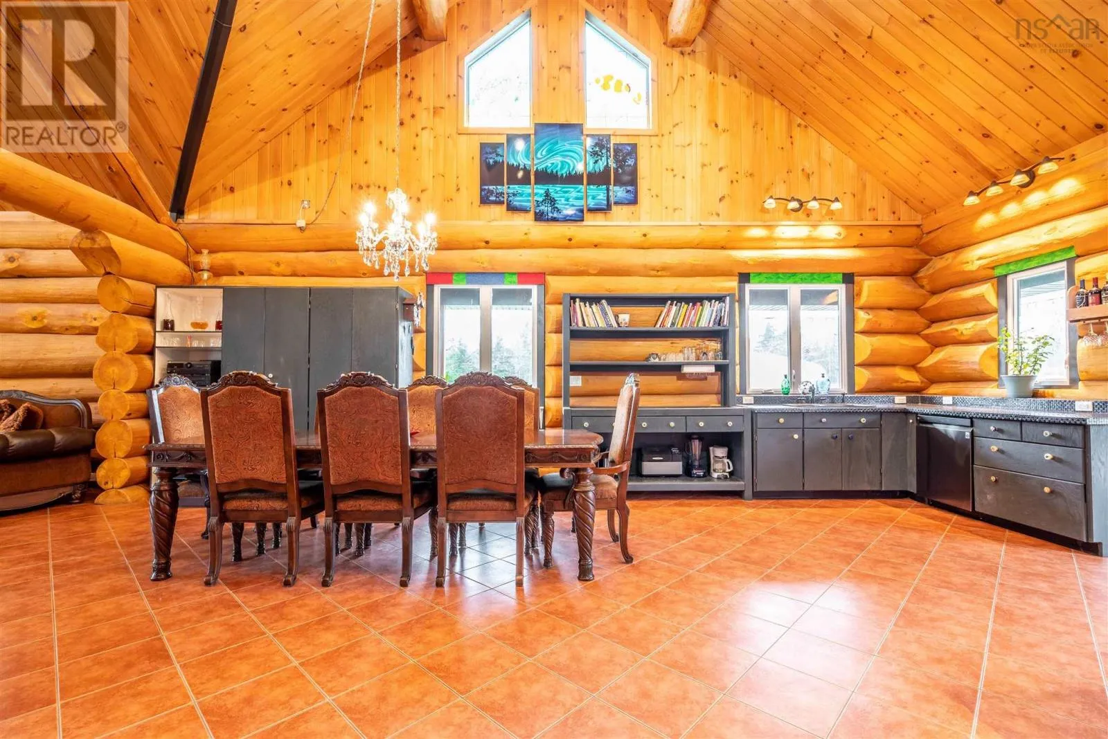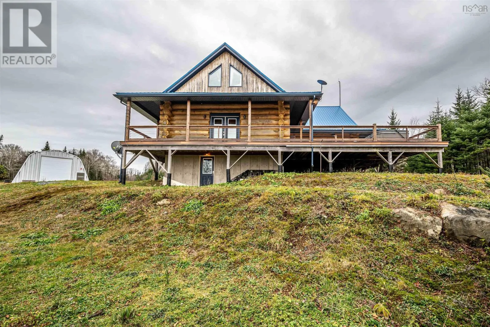 hwy 7 east - left on dufferin mines rd - 7 km Once in a lifetime opportunity in beautiful Nova Scotia. This majestic 2470 sq ft custom pine log home with an 1800 sq ft partially finished walk-out basement is set on 25 acres of mixed trees and offers 1375 feet of pristine lakefront. The main level features ceramic floors throughout, a stunning open concept kitchen, dining and living area with 22 ft cathedral ceilings, and beautiful lake views. The spacious, sound-proofed primary suite includes a luxurious ensuite, walk-in closet, and a private balcony with direct access to the hot tub. The main level also includes a laundry room with a half bath. The loft provides a bright open space perfect for an office, studio, gym or can be converted into two additional bedrooms if needed.Built with large 40 cm logs, the home exceeds R2000 energy standards and includes energy-efficient appliances, vinyl windows and 6 ft double garden doors. The property features a wide, low-maintenance wrap-around composite deck and accessibility touches including wider doorways. A 14.5 KW solar system with Net Metering, hot water collectors, and an air-to-water heat pump provide in-floor radiant heat and summer cooling, while the commercial-grade diesel generator, battery bank, and oil-fired water boiler ensure reliable backup power.A fully insulated 2400 sq ft workshop with in-floor heat, its own water supply and septic, and commercial use approval offers endless possibilities for business or hobby use. A new 10 x 33 greenhouse with modern amenities is also included. Enjoy ATV and snowmobile trails throughout the property, and a peaceful lakefront area ideal for swimming, boating, fishing, or relaxing. The lake offers approximately 7 meters of depth with a gradual shoreline. Located just 20 minutes from hospital and essential amenities, 35 minutes to Taylor Head Provincial Parks sandy beaches, and under 2 hours to Dartmouth, Halifax and the Halifax Stanfield International Airport. Full list of inclusions, upgrades and luxury finishes! (id:27476)