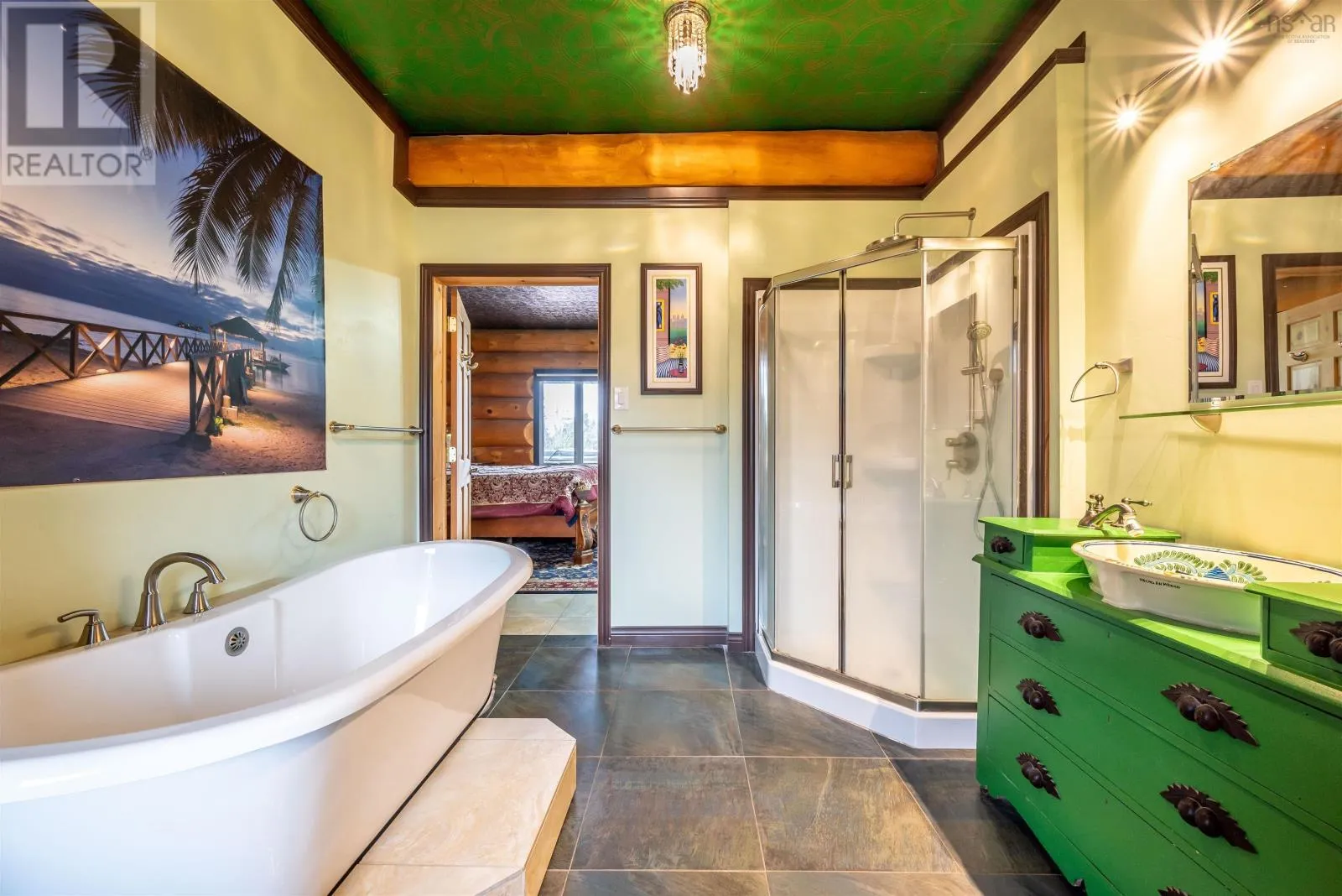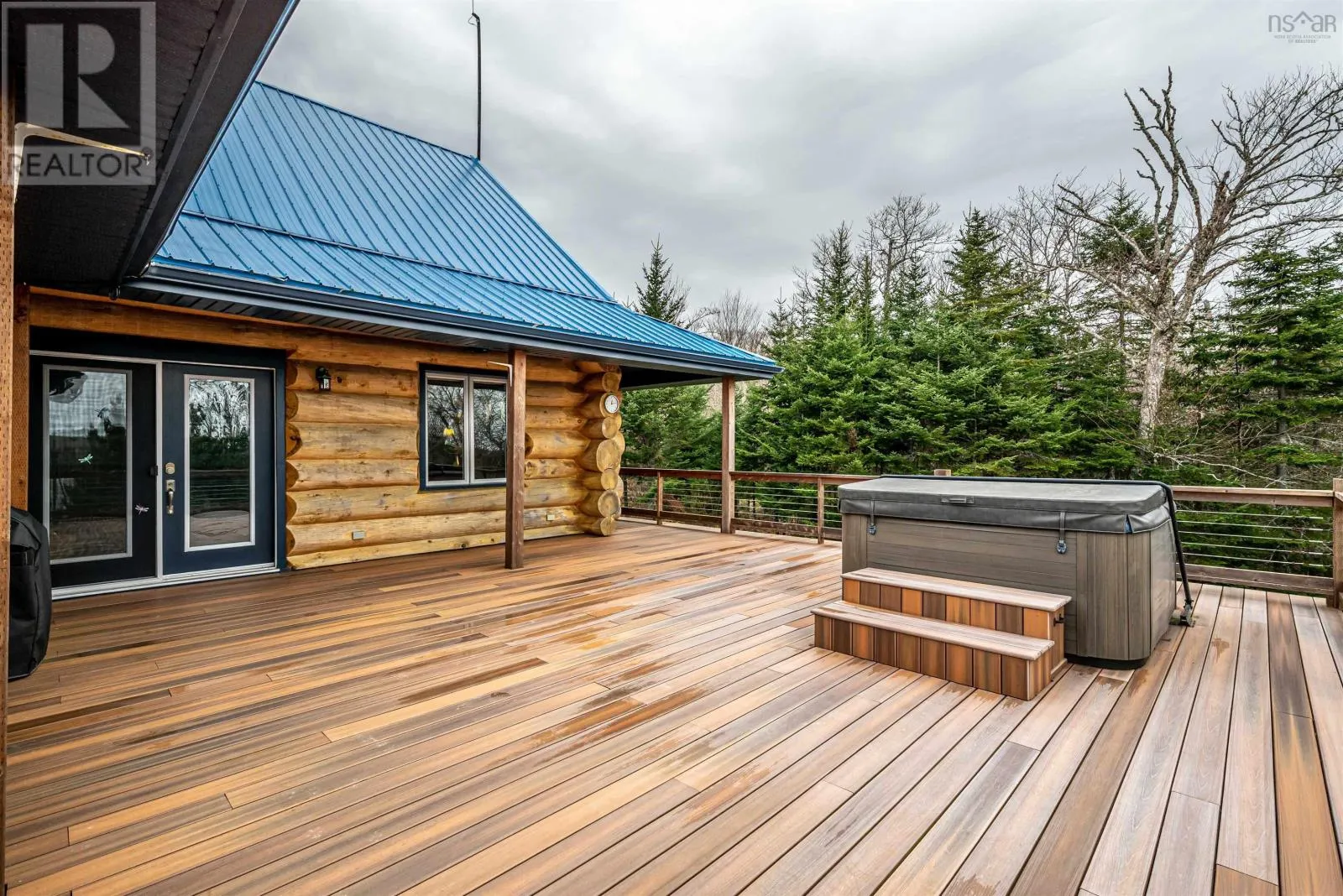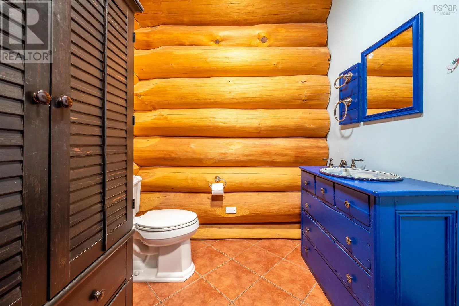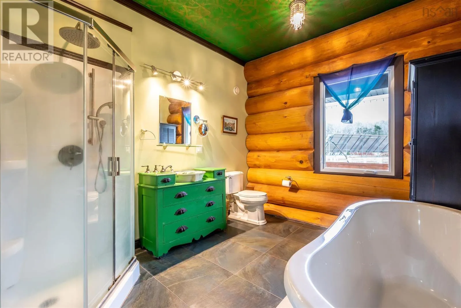 hwy 7 east - left on dufferin mines rd - 7 km Once in a lifetime opportunity in beautiful Nova Scotia. This majestic 2470 sq ft custom pine log home with an 1800 sq ft partially finished walk-out basement is set on 25 acres of mixed trees and offers 1375 feet of pristine lakefront. The main level features ceramic floors throughout, a stunning open concept kitchen, dining and living area with 22 ft cathedral ceilings, and beautiful lake views. The spacious, sound-proofed primary suite includes a luxurious ensuite, walk-in closet, and a private balcony with direct access to the hot tub. The main level also includes a laundry room with a half bath. The loft provides a bright open space perfect for an office, studio, gym or can be converted into two additional bedrooms if needed.Built with large 40 cm logs, the home exceeds R2000 energy standards and includes energy-efficient appliances, vinyl windows and 6 ft double garden doors. The property features a wide, low-maintenance wrap-around composite deck and accessibility touches including wider doorways. A 14.5 KW solar system with Net Metering, hot water collectors, and an air-to-water heat pump provide in-floor radiant heat and summer cooling, while the commercial-grade diesel generator, battery bank, and oil-fired water boiler ensure reliable backup power.A fully insulated 2400 sq ft workshop with in-floor heat, its own water supply and septic, and commercial use approval offers endless possibilities for business or hobby use. A new 10 x 33 greenhouse with modern amenities is also included. Enjoy ATV and snowmobile trails throughout the property, and a peaceful lakefront area ideal for swimming, boating, fishing, or relaxing. The lake offers approximately 7 meters of depth with a gradual shoreline. Located just 20 minutes from hospital and essential amenities, 35 minutes to Taylor Head Provincial Parks sandy beaches, and under 2 hours to Dartmouth, Halifax and the Halifax Stanfield International Airport. Full list of inclusions, upgrades and luxury finishes! (id:27476)