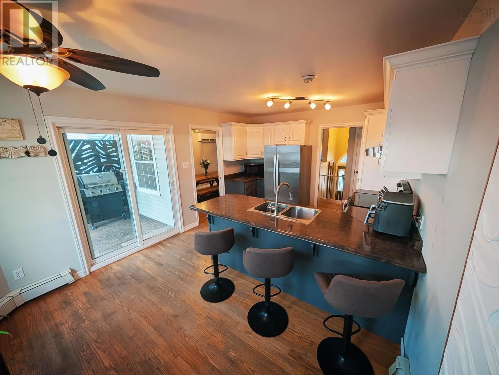 Turn onto Waye Court from Sydney Road. This well-maintained 3-bedroom, 2.5-bath split entry home offers comfort, functionality, and quality updates throughout. The main level features a bright and spacious living room with a propane fireplace, an eat-in kitchen with ceramic flooring and stainless steel appliances, and new patio doors leading to the back deck. Hardwood floors run throughout the main living areas, and the home has been tastefully painted. Both the main bathroom and ensuite have been fully renovated. The lower level includes a large rec room, a laundry room with a 2-piece bath, and ample storage space. Additional features include a built-in double heated and wired garage, double paved driveway, heat pump in the dining area, and a private backyard. A meticulously cared-for home that is move-in ready and ideal for families or professionals. (id:27476)