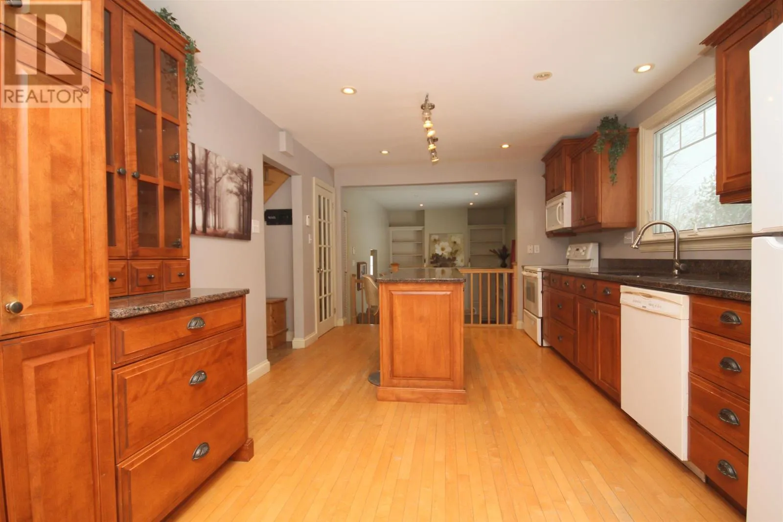 Reeves St. to MacSween to MacQuarrie, sign at property Click Iguide Tour. Welcome to this spacious detached 5-bedroom, 2.5-bath home offering over 3,000 sq ft of living spaceperfect for those who love to entertain. The heart of the home is a spacious kitchen featuring a center island, granite countertops, and an abundance of cabinetry and counter space. A separate dining area provides the ideal setting for family meals and special occasions. The large living room is warm and inviting with hardwood floors, a cozy pellet fireplace, and a large picture window that fills the space with natural light. Enjoy additional living space in the sunken family room, complete with a propane fireplace, built-in cabinets, and sliding doors leading to a private deckperfect for indoor-outdoor living. Upstairs, the oversized primary bedroom is a true retreat, offering a 4-piece ensuite with air-jet soaker tub, separate shower, walk-in closet, and space for a private sitting area. Four additional generously sized bedrooms are serviced by a full 4-piece main bath. For added convenience, the upper level also features a second-floor laundry room with a separate sink. Fin Bsmt with a large Recreation Room, utility room and loads of storage space. Updated plumbing 2024, vinyl windows, deck front and back, in-floor heating, fenced yard, hardwood floors. This home is located within walking distance of many amenities including recreation centre, schools & NSCC campus. Lots of space for a growing family! (id:27476)